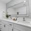 Step into luxury with this beautifully renovated home featuring five spacious bedrooms, four and a half bathrooms, and a dedicated private office. Three of the bedrooms boast en-suite bathrooms, offering comfort and privacy for family and guests alike. The primary suite is a true retreat, complete with a generous walk-in closet and a spa-inspired double overhead shower. A second oversized bedroom suite, tucked privately behind the kitchen, includes dual closets, double vanities, and a lavish walk-in shower. The fourth and fifth bedrooms share a stylish Jack-and-Jill bathroom. At the heart of the home is a chef’s kitchen with sleek quartz countertops, built-in shelving, and modern appliances. It opens seamlessly into a grand living room with soaring vaulted ceilings—perfect for entertaining. Expansive windows and oversized patio doors bathe the space in natural light.