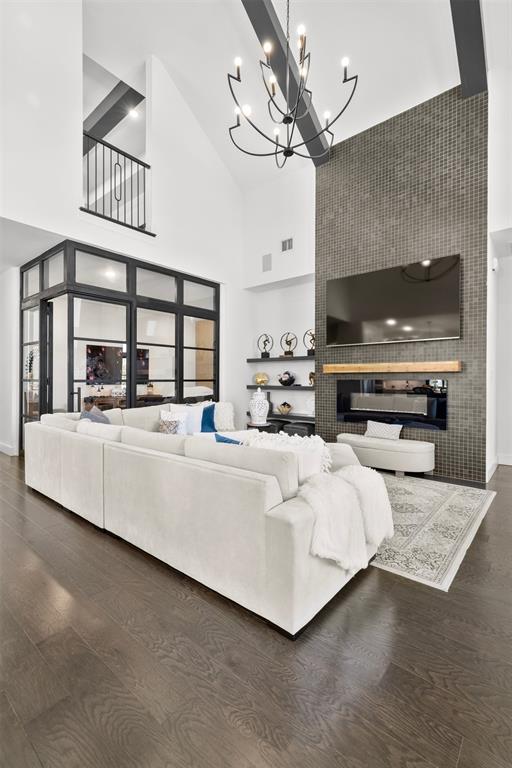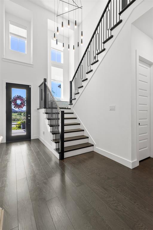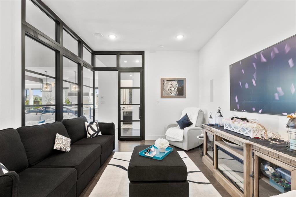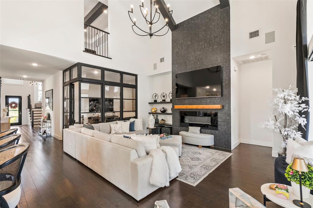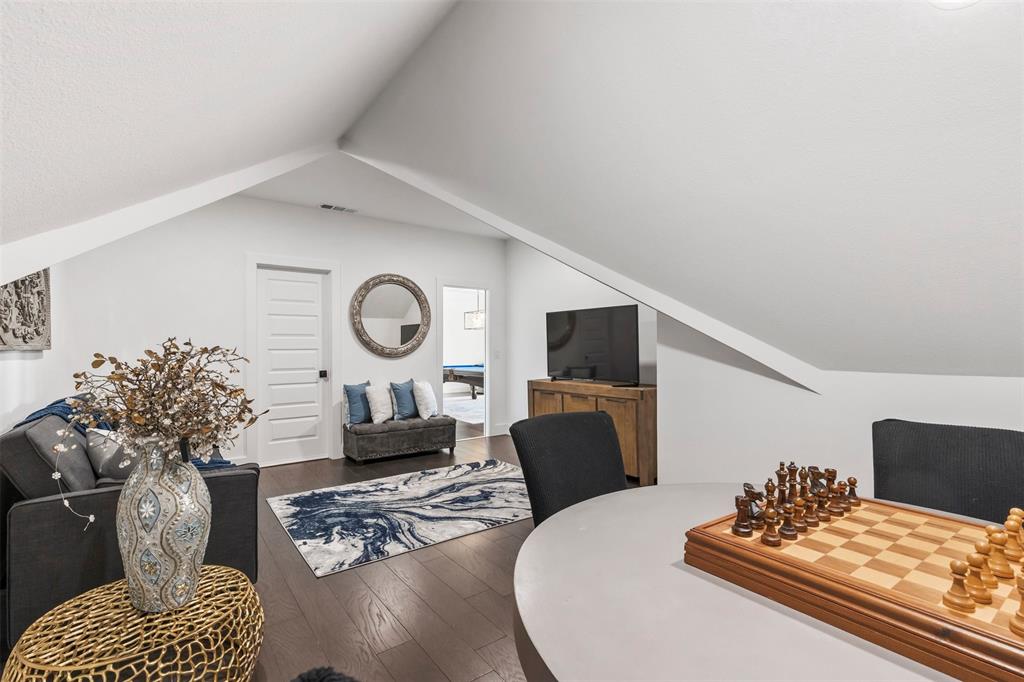 Step inside and be captivated by soaring ceilings, sun-filled living spaces, and an open floor plan that blends elegance with everyday comfort. Designer details are everywhere—hardwood floors in all bedrooms and closets, a versatile new flex room upstairs, custom wood beams in the dining and game rooms, and decorative wood-slat accents on the center island and media room walls.