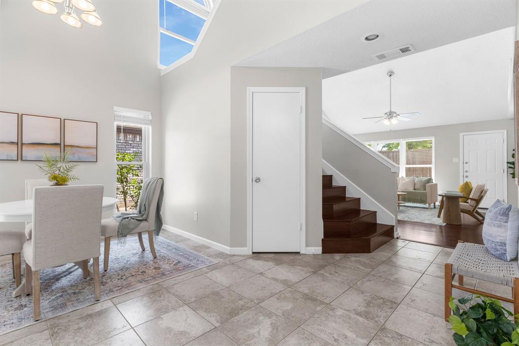 Charming North Plano Home in a prime location! Welcome to this inviting home tucked away on a quiet street surrounded by mature trees. With its covered front porch, nicely landscaped yard, and private backyard with patio that backs up to a green space and cul-de-sac, it’s the perfect place to relax or gather with friends and family. Step inside to soaring ceilings, tons of natural light, and a warm, open layout. The formal dining room offers flexibility as a home office, while the spacious kitchen includes granite countertops, stainless steel appliances, a side-by-side refrigerator, a walk-in pantry, and a cozy breakfast nook. The living room is the heart of the home, featuring a welcoming gas fireplace. A convenient powder bath is nearby for guests. The private primary suite is downstairs, while two bedrooms, a full bath, and a loft space perfect for a playroom upstairs provide plenty of space for family or visitors. The home features—engineered hardwood floors and tile throughout, fresh interior paint, updated lighting, and all new windows and blinds make the home move-in ready. Washer, dryer, and refrigerator are all included! Located near schools, parks, and sports fields, with easy access to Coit, Legacy, Sam Rayburn Tollway, and the Dallas North Tollway, this home blends comfort, convenience, and community.