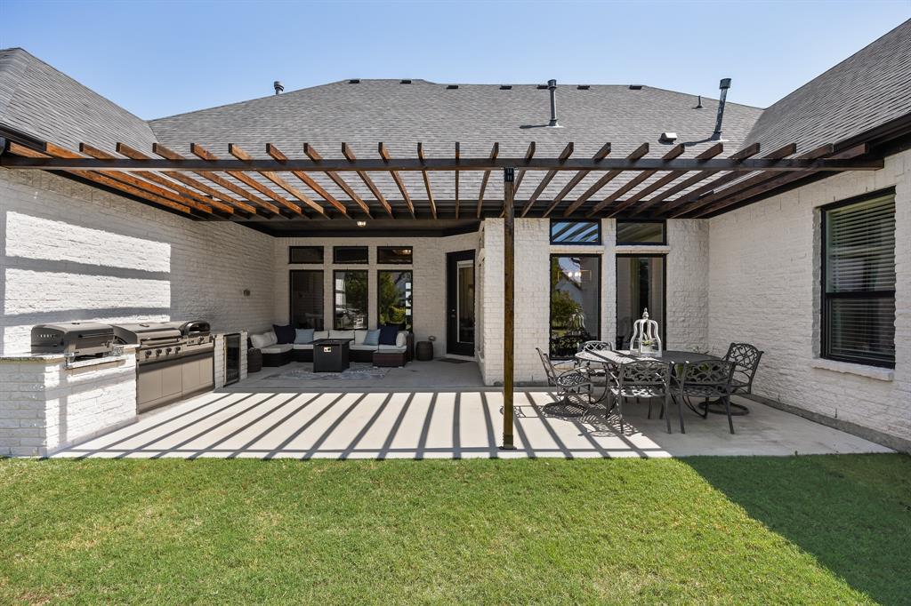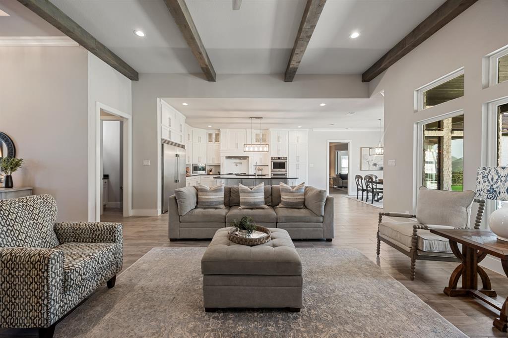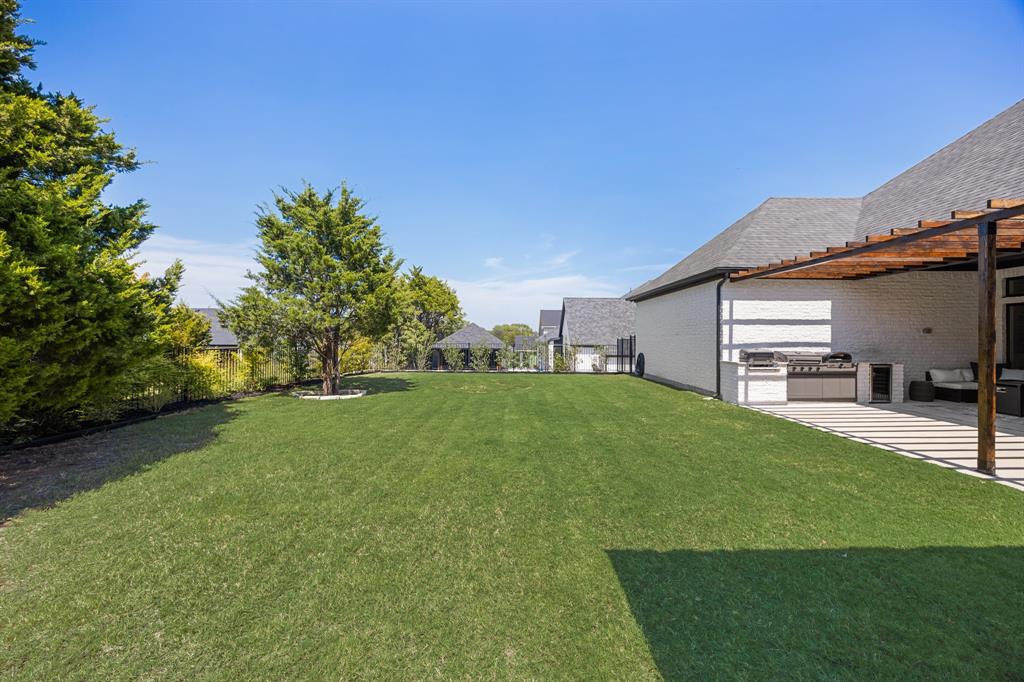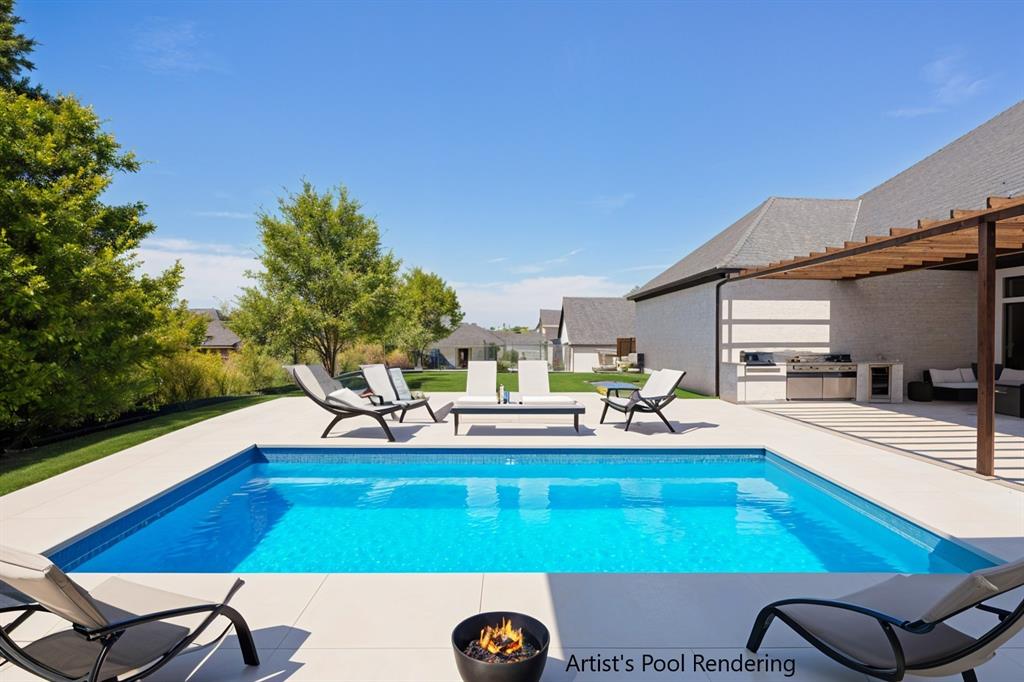 STUNNING CUSTOM ONE-STORY IN THE HEART OF HEATH! Designed with comfort and function in mind, this elegant home offers a bright open-concept layout paired with a smart split-bedroom design. A private generously sized study provides the perfect space for your ideal home office, while the spacious family room features rich wood beams, custom built-ins, and a striking marble fireplace that serves as the centerpiece of the home. The gourmet kitchen flows seamlessly into the living area and showcases quartz countertops, custom cabinetry with pull-outs, an oversized serving bar, commercial-grade built-in refrigerator and freezer, gas cooktop, and a oversized walk-in pantry built to impress.The primary suite is tucked away for privacy, highlighted by a vaulted ceiling with exposed beams and a spa-inspired bath offering a soaking tub, dual shower heads, an oversized walk-in shower, and abundant storage with both a personal linen closet and a large walk-in closet. Adding to the suite’s appeal is a dedicated work room—perfect for a fitness retreat, second office, or hobby space. Three additional bedrooms are thoughtfully arranged, complemented by a spacious game room or children’s retreat. Designer touches include crown molding, decorative lighting, and quartz countertops throughout the secondary baths. Outdoors, the expansive backyard is designed for year-round enjoyment, featuring a fully equipped outdoor kitchen and abundant space to add a pool, making it the perfect setting for entertaining family and friends. Please note that the swimming pool photo is an artist rendering