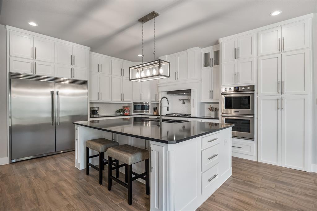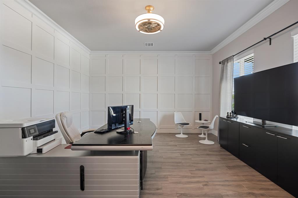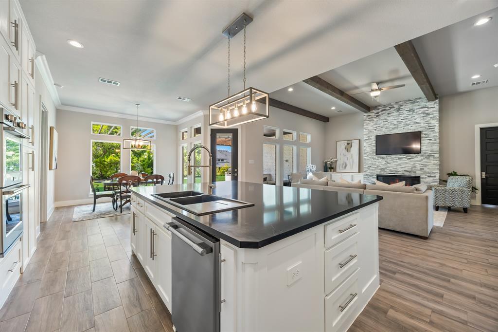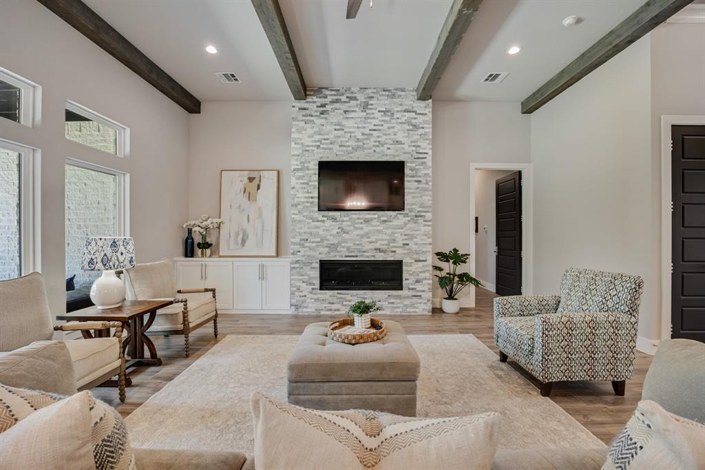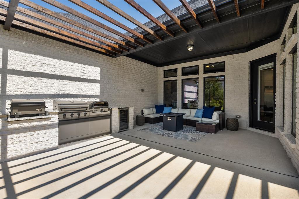 STUNNING CUSTOM ONE-STORY IN THE HEART OF HEATH! Designed with comfort and function in mind, this elegant home offers a bright open-concept layout paired with a smart split-bedroom design. A private generously sized study provides the perfect space for your ideal home office, while the spacious family room features rich wood beams, custom built-ins, and a striking marble fireplace that serves as the centerpiece of the home. The gourmet kitchen flows seamlessly into the living area and showcases quartz countertops, custom cabinetry with pull-outs, an oversized serving bar, commercial-grade built-in refrigerator and freezer, gas cooktop, and a oversized walk-in pantry built to impress.The primary suite is tucked away for privacy, highlighted by a vaulted ceiling with exposed beams and a spa-inspired bath offering a soaking tub, dual shower heads, an oversized walk-in shower, and abundant storage with both a personal linen closet and a large walk-in closet. Adding to the suite’s appeal is a dedicated work room—perfect for a fitness retreat, second office, or hobby space. Three additional bedrooms are thoughtfully arranged, complemented by a spacious game room or children’s retreat. Designer touches include crown molding, decorative lighting, and quartz countertops throughout the secondary baths. Outdoors, the expansive backyard is designed for year-round enjoyment, featuring a fully equipped outdoor kitchen and abundant space to add a pool, making it the perfect setting for entertaining family and friends. Please note that the swimming pool photo is an artist rendering