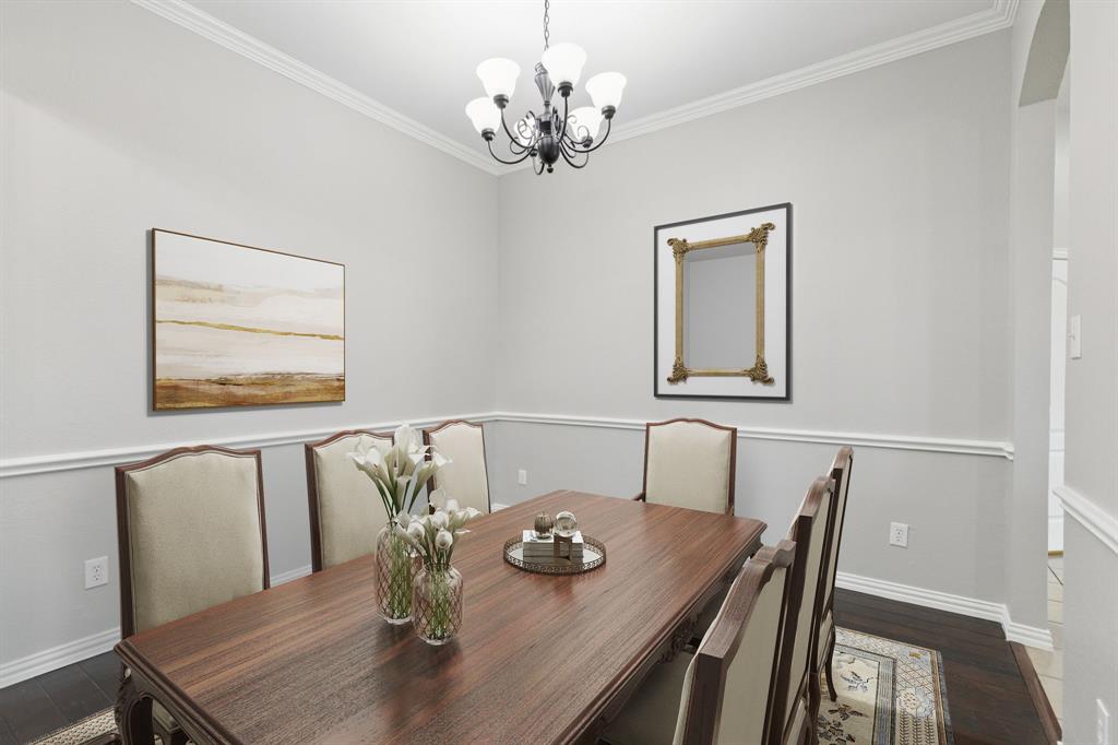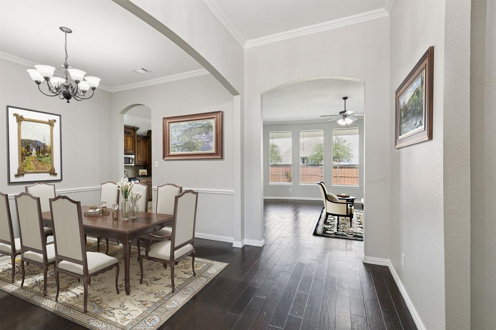 Step into a **spacious entryway** that sets the tone with elegant **crown molding** and abundant **natural light** throughout. Just off the entry, you'll find a versatile **formal dining room** that can easily serve as a home office, second living area, or playroom—whatever fits your lifestyle.