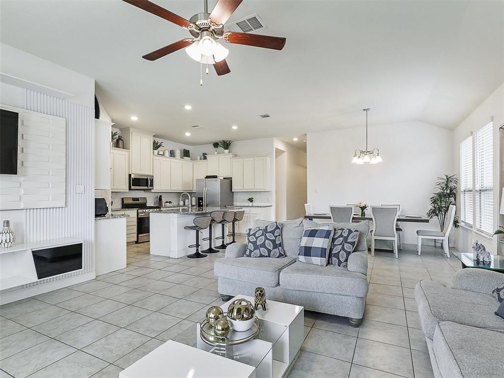 Charming Rare One-Story in Resort-Style Community! Discover this beautiful one-story home featuring 5 spacious bedrooms and 2 full baths, perfectly located in the highly sought-after Union Park neighborhood. This open concept floor plan is filled with natural light, creating a warm and inviting atmosphere. The cozy fireplace adds charm to the living area, making it ideal for relaxing or entertaining. The kitchen is a chef’s dream with plenty of cabinet space, a walk-in pantry, granite countertops, and stainless steel appliances. Union Park offers an incredible resort-style lifestyle including a 30-acre Central Park with trails, community pool, a separate indoor, outdoor fitness center, Splash Pads, an open-air pavilion with outdoor kitchens, a food truck park, a fishing pond, a dog park, multiple playgrounds, and sports fields for volleyball and basketball. The community also features an extensive trail system and a lifestyle program with organized events and activities. Conveniently located near top restaurants, shopping, and entertainment, including The Universal Kids Resirt Park, with easy access to DNT and Preston Road. Note: The home will need carpet replacement, touch-ups for cabinet chips, and a few baseboard repairs where the family pup left its mark; a fantastic opportunity to add your personal touch.