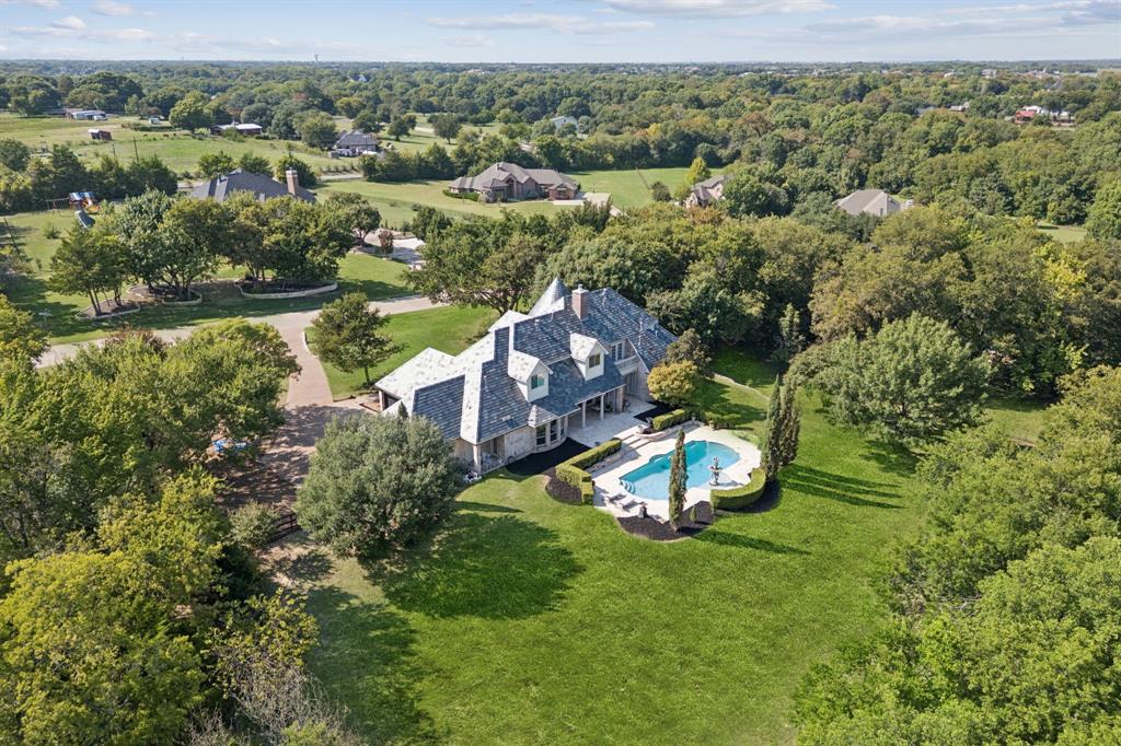 Gorgeous Country French estate in highly desirable LOVEJOY ISD can now be yours! This truly custom home is rock solid, constructed with 6 in framing, 68 piers under the foundation, slate roof, and copper gutters. It's a show stopper that you must see to believe. The grounds are simply phenomenal, offering the feeling of a stroll through the French or Italian countryside. The massive backyard pool is perfectly framed by Italian Cypress trees and a Travertine deck. The 2+ acre corner lot sits in a quiet, NON HOA neighborhood in Lucas, TX, just 30 minutes north of Dallas. The home offers unparalleled privacy thanks to mature trees and landscaping, providing peaceful seclusion, yet you have access to restaurants, shopping, and major DFW highways within a 10 minute drive. The home greets you with a regal stone and brick schmear elevation, along with a freshly poured walkway and freshly painted exterior trim. Walk inside to find soaring ceilings, flowing natural light, elegant marble and hardwood floors, freshly painted interior walls with subtle knockdown texture, handcrafted trim and moldings, and spectacular backyard views. The open floorplan is perfect for entertaining and family gatherings. The massive kitchen boasts two islands, dual sinks, custom cabinetry, butler's pantry, built in fridge, and dual gas ranges. The primary suite is located on the first floor and offers an elegant stone fireplace, backyard views, soak tub, dual closets, and large walk in shower. Secondary bedroom downstairs could be used as an office or gym if desired. Main AC unit replaced in 2025. All major pool equipment replaced within past 2 years. French doors off dining room, guest bedroom, and game room lead to beautiful terraces that overlook the yard. Upstairs media room is massive and is tucked away near the back of the house for noise control. Oversized 3 car garage has additional space for a workshop, and the list goes on. This home simply has it all. Check it out for yourself today!!!