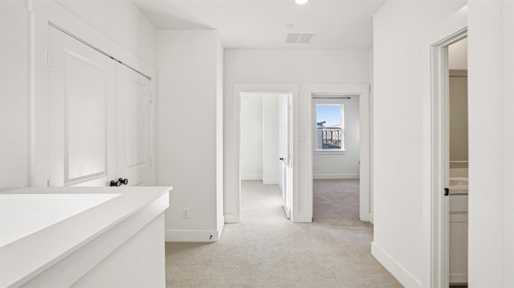 Welcome to this Move-In Ready, stunning townhome located in the award-winning community of Windsong Ranch, nestled in the highly sought-after Prosper ISD. This modern luxury townhome boasts three beds and two and a half baths, offering the perfect blend of style and functionality. As an end unit, the townhome provides extra privacy, an abundance of natural light, and additional upgraded data capabilities. The open-concept floor plan seamlessly connects the kitchen, dining, and living areas. The stylish and functional kitchen is complete with breakfast bar, gas range and stainless steel appliances, while the living area offers a cozy space with modern fireplace to relax and unwind. Upgraded lighting throughout the home can be controlled with remote access, offering convenience and energy efficiency at the touch of a button. Step outside into your pergola covered patio with yard—an excellent space for outdoor entertaining without the maintenance of a traditional lawn. The two-car garage provides plenty of storage. Upstairs, the open loft area is versatile and can be used as a home office, playroom, or additional living space. The private primary suite is a true retreat, featuring a luxurious ensuite bathroom with oversized walk-in shower, dual vanities, and a spacious walk-in closet. Windsong Ranch offers an impressive array of world-class amenities, including picturesque walking trails, parks & playgrounds, resort-style pools, a state-of-the-art fitness center, a 5 acre tropical crystal clear water lagoon complete with full beach area, event lawn and more. With its unbeatable location, modern upgrades, and exceptional community, this townhome is a must-see for those seeking a high-end living experience in the sought after city of Prosper. Zoned for the brand new RICHLAND HIGH SCHOOL!