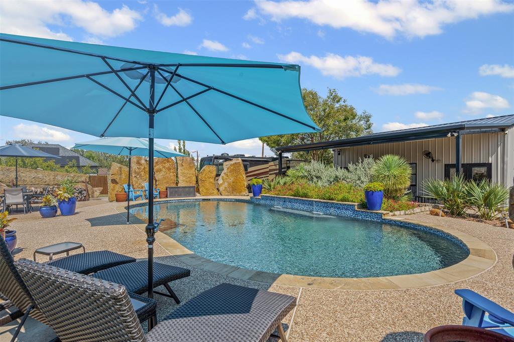 Beyond the pool, a 30x30 heated and cooled party barn shop with roll-up doors on both ends adds incredible versatility—perfect as a mancave, hobby space, celebration area, or extra storage. A full rear circle drive that includes a 17x30 covered porch off shop for parking or entertaining, and two 50-amp RV hookups make this property ideal for hosting guests and bigger gatherings.