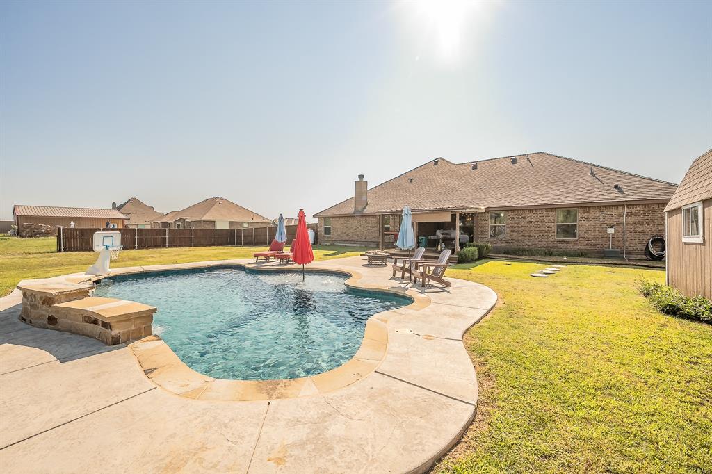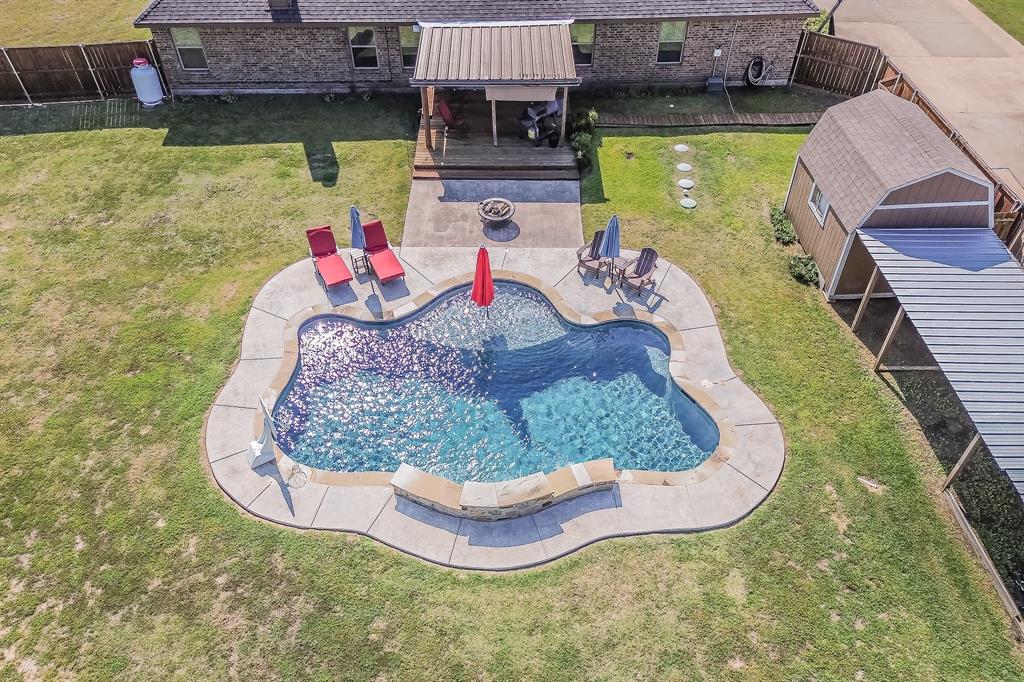 Welcome to your new home with small town charm and upgrades galore! This spacious 4-bedroom, 2-bathroom home offers a thoughtfully designed split bedroom floor plan with a versatile flex space, ideal for a home office, playroom, or second living area. Step inside to find updates that provide peace of mind, including a brand new roof and HVAC system, both only a few months old. The inviting family room with warm fireplace is open to the kitchen and dining areas, making entertaining and everyday living a breeze. The private primary suite is tucked away from the secondary bedrooms, offering a quiet retreat with its very own ensuite bath including a jacuzzi tub and separate shower. Three additional bedrooms provide ample space for family or guests. Outdoors, the property truly shines. Enjoy summer days by the sparkling pool, or take advantage of the 20x40 workshop with endless possibilities, perfect for hobbies, storage, or small business needs. Set on a full acre, there’s room to roam, garden, or simply relax and enjoy the peaceful surroundings under the covered patio area. Located in a welcoming neighborhood with a true small town vibe, this home offers a sense of community where children can ride bikes and play freely, all while you enjoy the benefits of quiet country living. Don’t miss your opportunity to own this unique property that combines space, updates, and its own lifestyle all in one place!