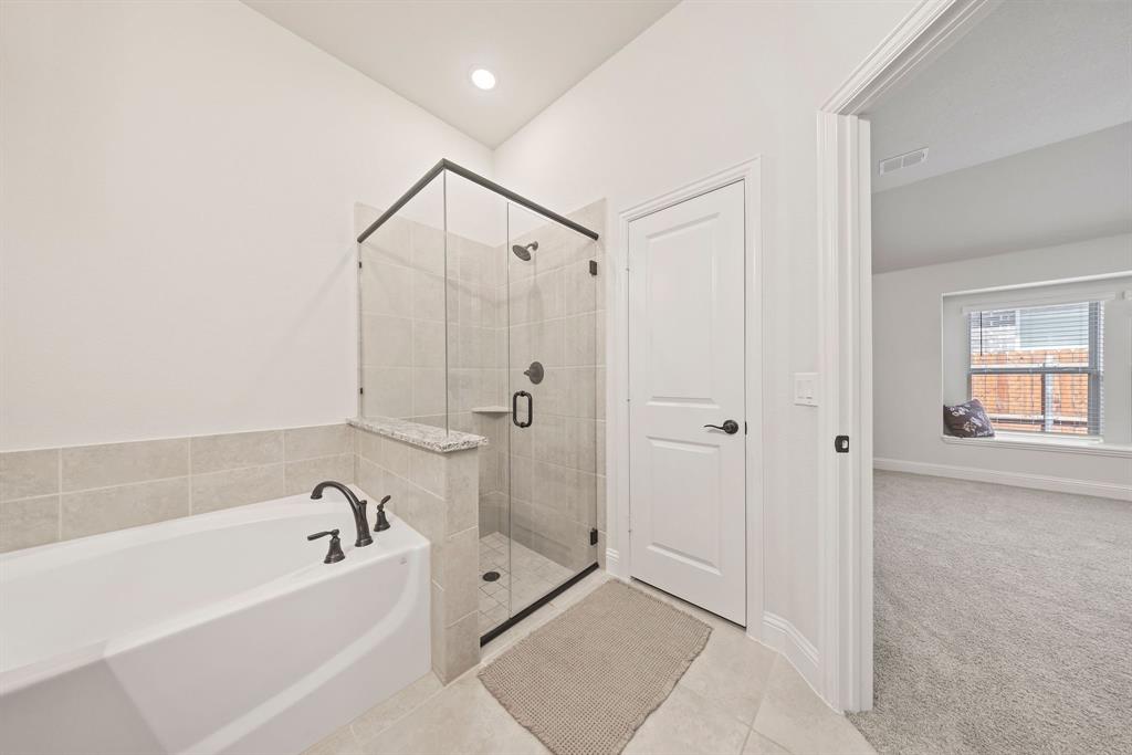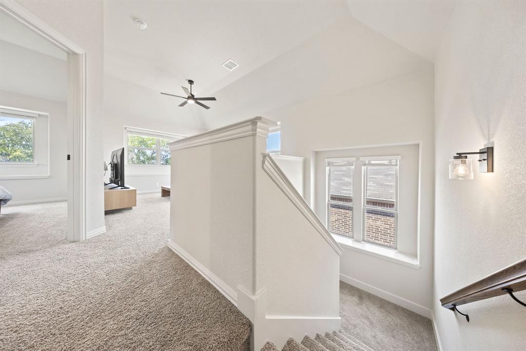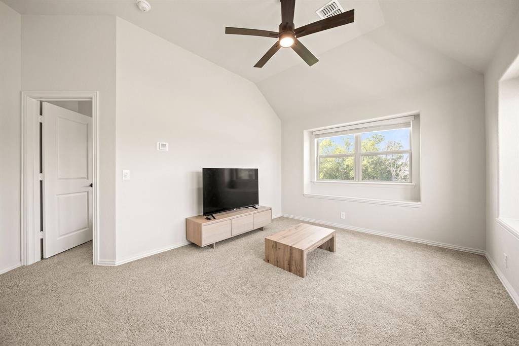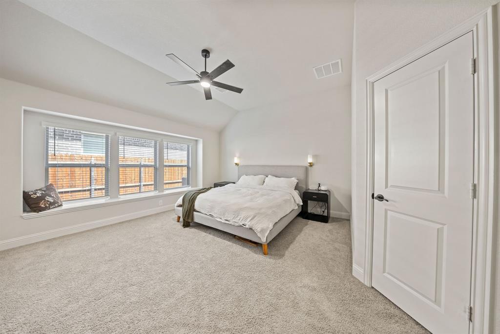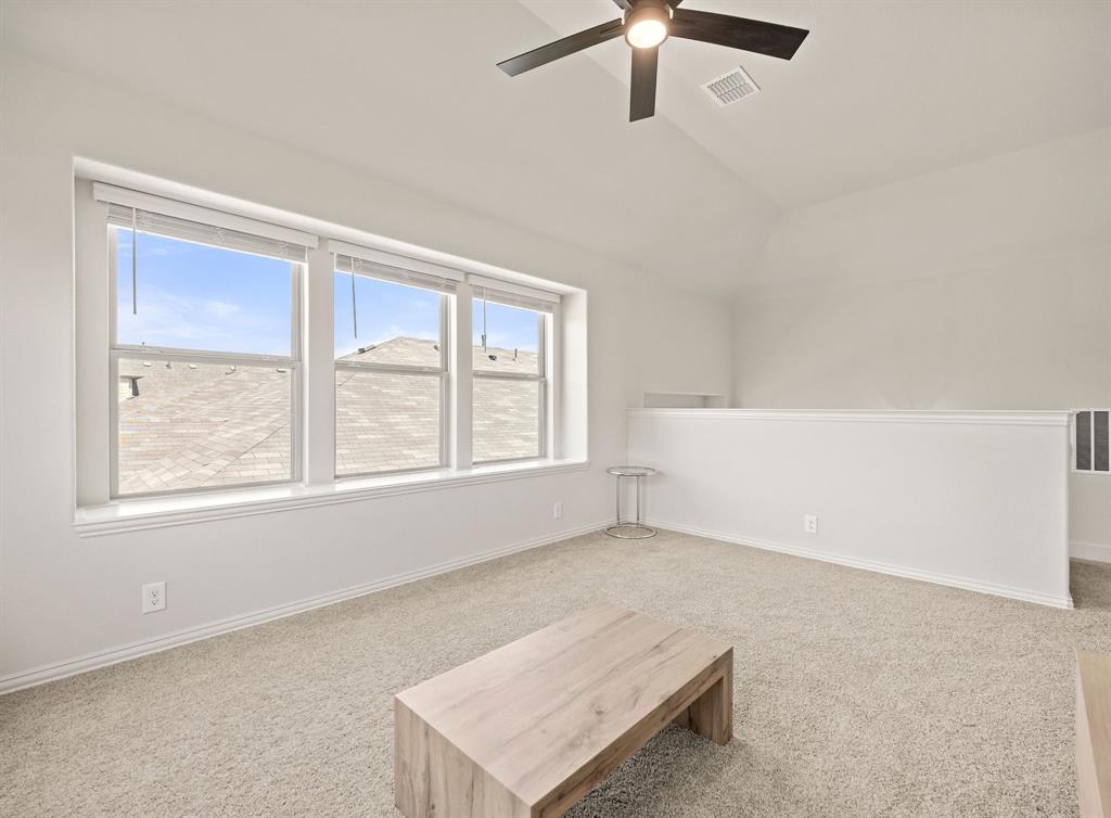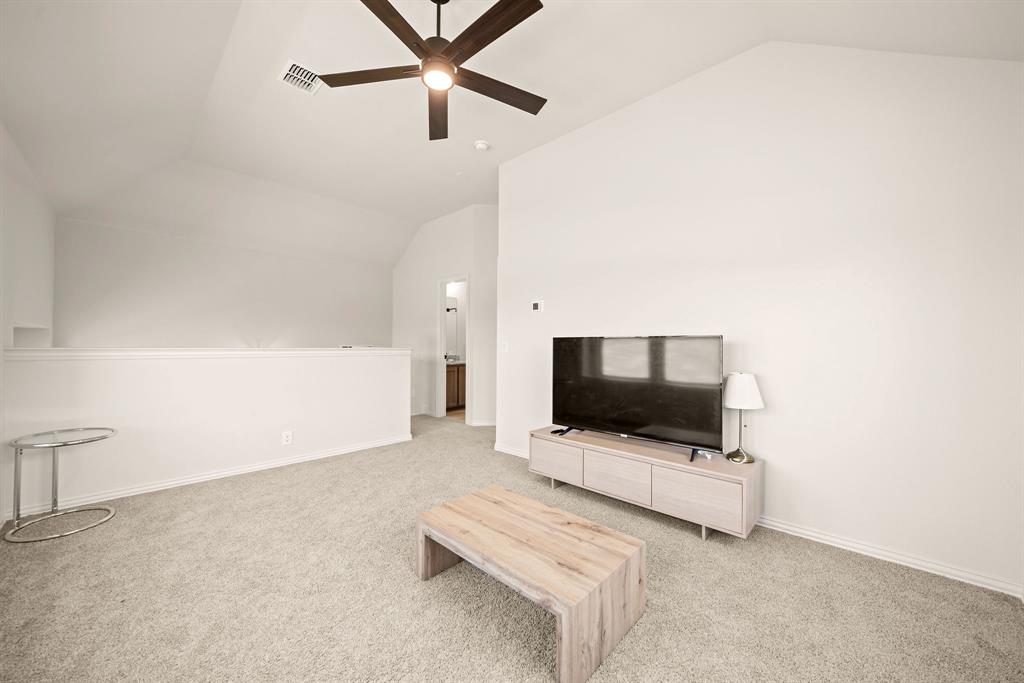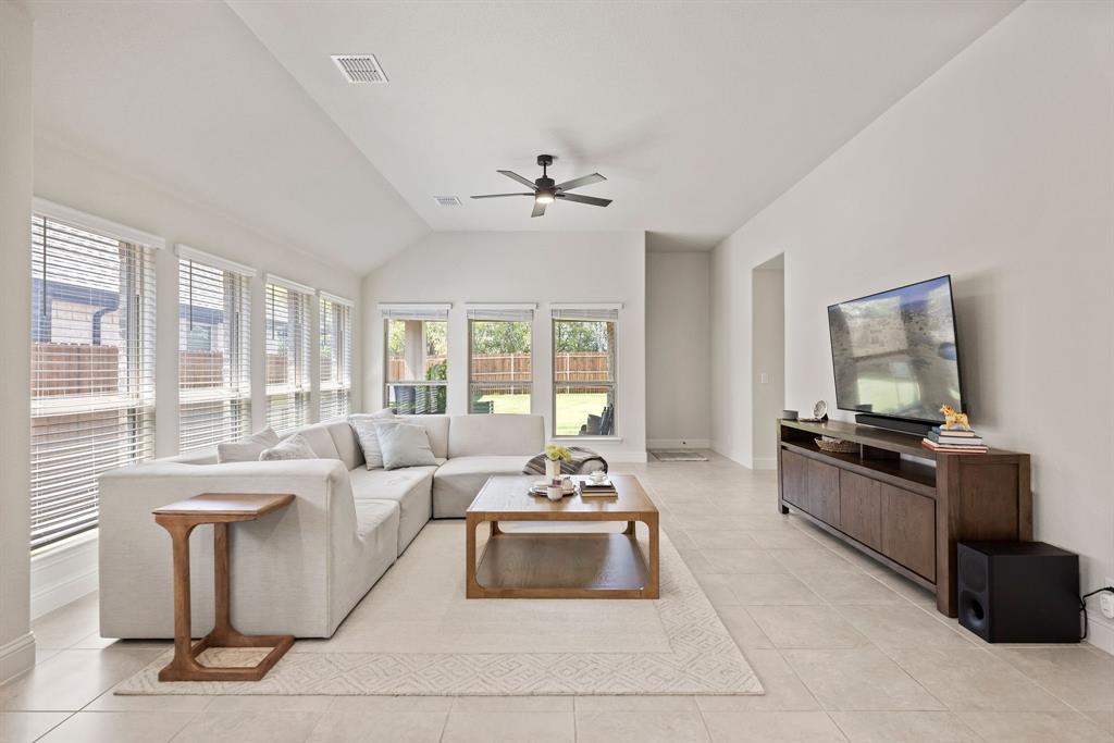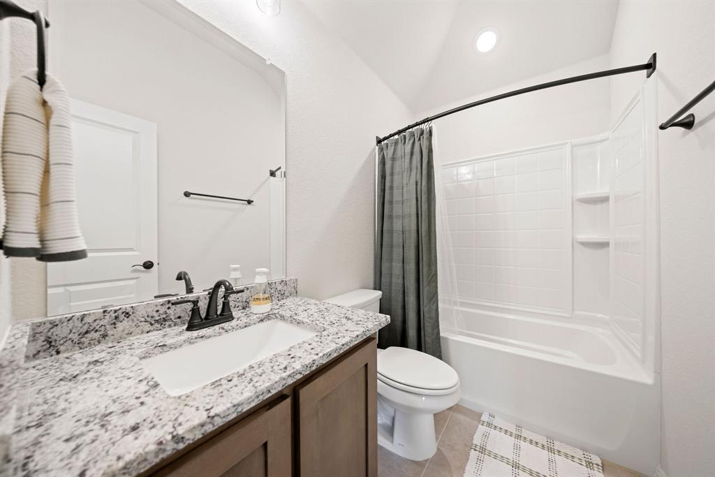 Welcome home to this inviting and impeccably maintained 4-bedroom, 3-bathroom home, designed for modern living and effortless entertaining. The moment you step inside, you'll be greeted by an abundance of natural light streaming through the expansive windows, highlighting the high ceilings and open-concept layout. The main level boasts beautiful tile flooring throughout the living, dining, and kitchen areas, with cozy carpeting in the three downstairs bedrooms. This floor plan provides flexible spaces for gatherings of all sizes. The heart of the home is the stunning kitchen, a chef's dream with gleaming granite countertops, a large center island with seating, and stainless steel appliances. You'll find ample counter and cabinet space, making meal preparation and storage a breeze. The primary suite is a true retreat, offering a tranquil sanctuary with a luxurious en-suite bathroom. The primary bedroom also includes a dedicated sitting area, perfect for unwinding with a good book. Indulge in further relaxation with a large garden tub, a separate shower, and dual sinks. Upstairs, a versatile gameroom serves as the second living area, perfect for movie nights, a dedicated kids' play area, or a great space to watch the big game. This level also includes a bedroom and a full bath, providing an ideal private space for guests or a family member. Step outside to discover your own private oasis. The covered back patio is perfect for enjoying a quiet morning coffee or hosting a lively BBQ. The very large backyard offers plenty of room for outdoor activities, whether it's for kids to play, dogs to run, or for adding a future pool. This home is a must-see for anyone looking for a clean, well-maintained property that feels like new. Conveniently located with easy access to major highways, shopping, and dining, this home offers the perfect blend of comfort and accessibility.