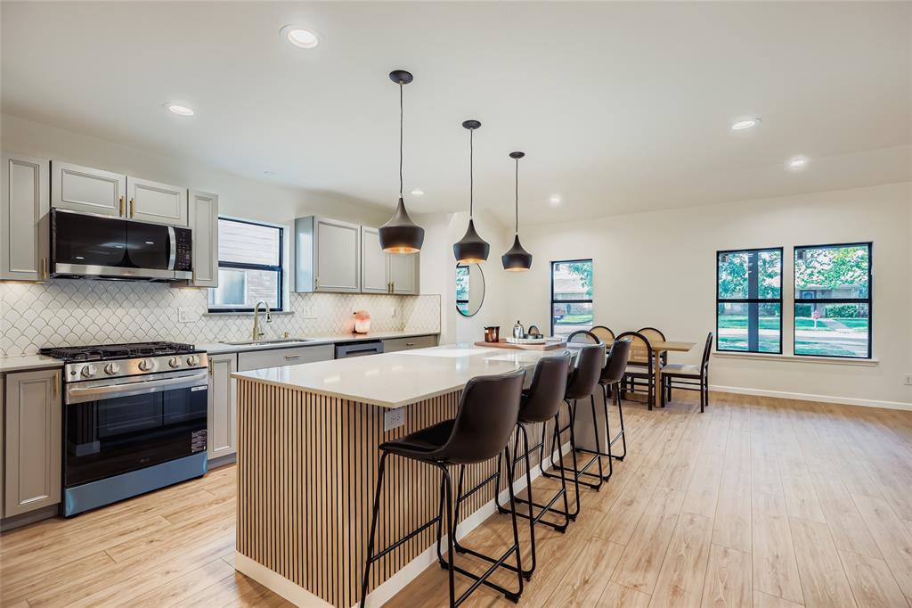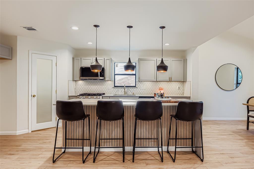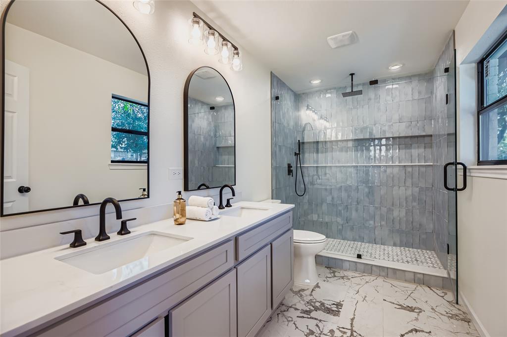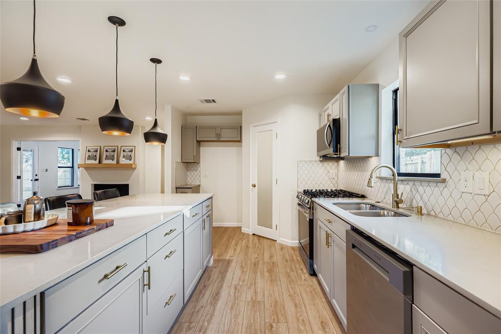 This 4-bed, 2-bath, 2,277 sq. ft. home was fully renovated in 2025—you’ll be the first owner since. Every major system has been replaced, including PVC plumbing. The home also features a new roof, HVAC and ducts, electrical panel and wiring, tankless water heater, and new windows. Inside, the chef’s kitchen shines with a quartz waterfall island, soft-close cabinets, high-end LG appliances, and premium gold plumbing fixtures. The ensuite master bathroom has double vanities with quartz countertops, modern mirrors, and a luxurious frameless glass step-in rain shower. Set on a 10,123 sq. ft. lot with full privacy fencing, this home offers rare space and privacy in Denton. A gated backyard doubles as a playground or entertainer’s dream for BBQs and parties. Add a massive garage with storage, driveway for multiple cars, dedicated office with French doors, and smart home features (lights, thermostat, garage opener and Ring Doorbell) plus no HOA fees.
