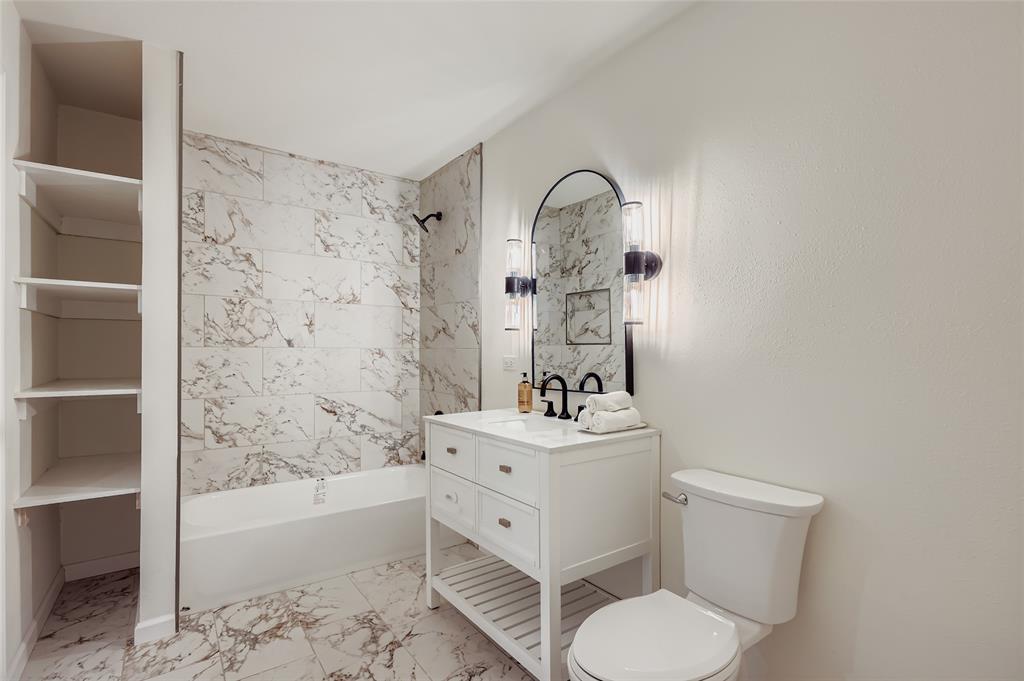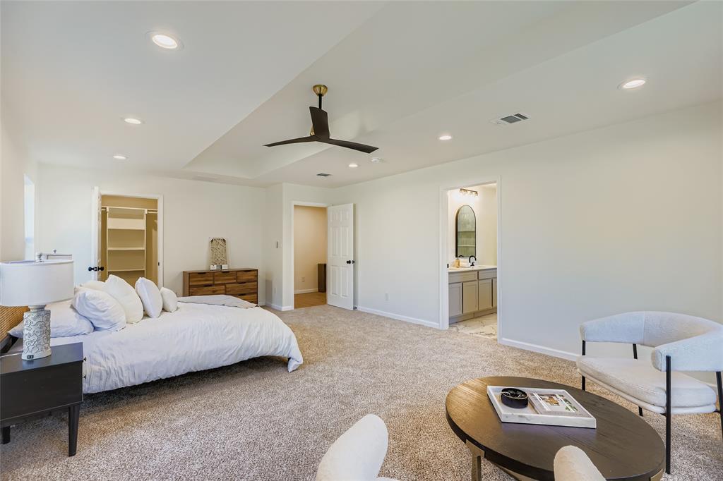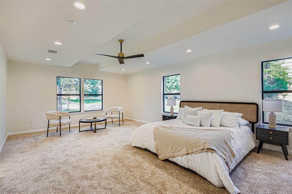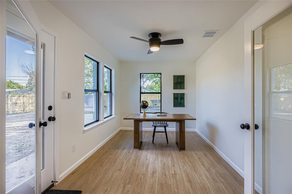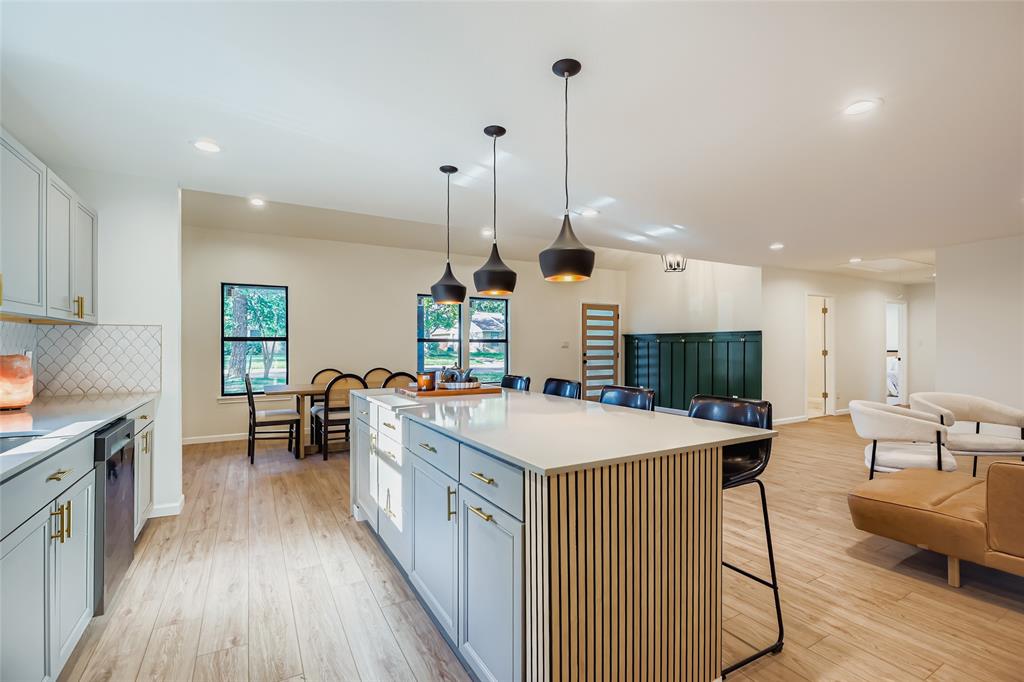 This 4-bed, 2-bath, 2,277 sq. ft. home was fully renovated in 2025—you’ll be the first owner since. Every major system has been replaced, including PVC plumbing. The home also features a new roof, HVAC and ducts, electrical panel and wiring, tankless water heater, and new windows. Inside, the chef’s kitchen shines with a quartz waterfall island, soft-close cabinets, high-end LG appliances, and premium gold plumbing fixtures. The ensuite master bathroom has double vanities with quartz countertops, modern mirrors, and a luxurious frameless glass step-in rain shower. Set on a 10,123 sq. ft. lot with full privacy fencing, this home offers rare space and privacy in Denton. A gated backyard doubles as a playground or entertainer’s dream for BBQs and parties. Add a massive garage with storage, driveway for multiple cars, dedicated office with French doors, and smart home features (lights, thermostat, garage opener and Ring Doorbell) plus no HOA fees.