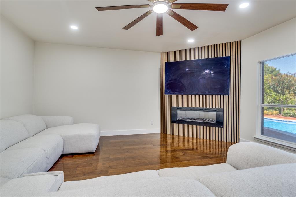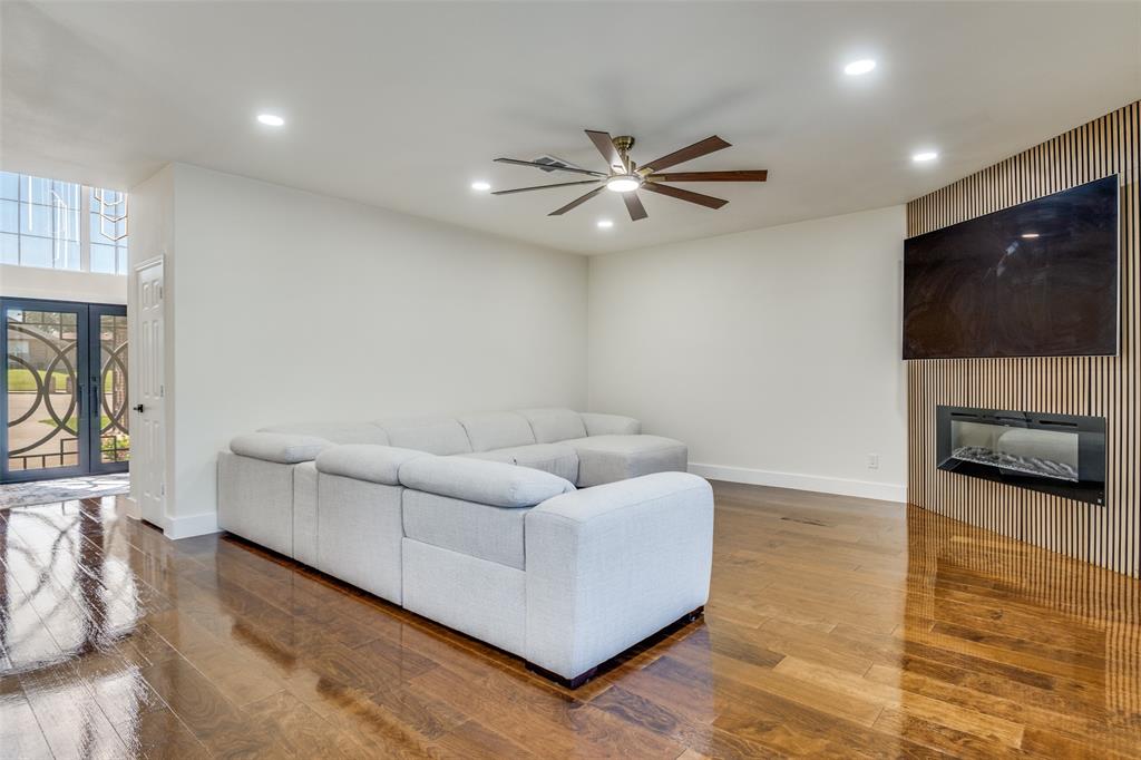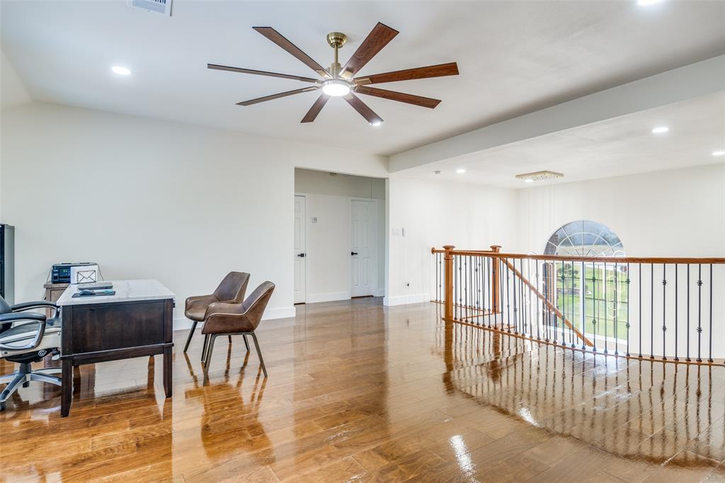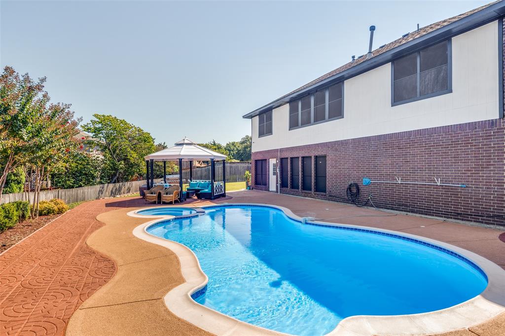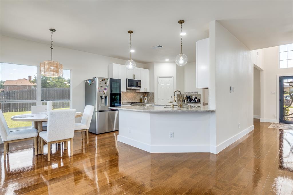 Experience resort-style living in this fully updated 5-bedroom, 3.5-bath estate tucked away on a peaceful cul-de-sac in DeSoto. With luxurious finishes and thoughtful design throughout, this home is an entertainer’s dream — featuring a private pool with a dedicated outdoor bathroom for added convenience. Step through custom wrought-iron double doors into a grand two-story foyer. Inside, you’ll find rich wood flooring, modern fixtures, and a dramatic slat-wall fireplace that anchors the living space. The open-concept layout includes two dining areas and a show-stopping kitchen with quartz countertops, soft-close cabinets, a statement island, and elegant gold finishes. The primary suite is a serene retreat with a spa-inspired bath, while each additional bathroom showcases curated tile, upgraded lighting, and premium hardware. Upstairs offers bonus flex space for a home office, playroom, or gym. Roof replaced in 2021. Additional features include updated lighting throughout, a spacious backyard, and a pool-ready setup perfect for summer hosting. Close to local schools, parks, and major highways — this home blends elegance, comfort, and functionality in one stunning package.