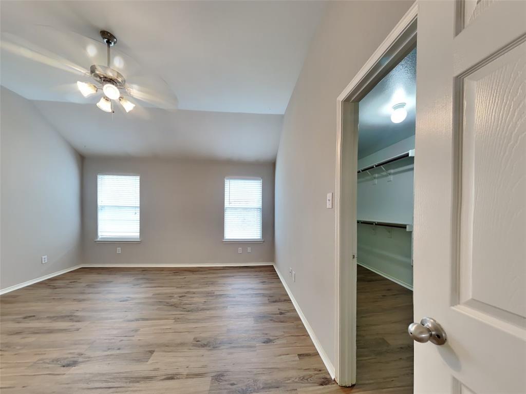 Updated Move In Ready FOUR bedroom in Honeysuckle Meadows! New faux wood laminate flooring! Modern gray tones painted throughout! Elegant formal den and dining room as you walk into the home. Split bedroom floorplan for added privacy! Cozy breakfast nook with bay windows opening to the spacious kitchen. An abundance of cabinet and counterspace and breakfast bar! LARGE additional family room in the back of the property. Primary suite features a HUGE walk-in closet with built in shelves, dual sinks and large walk-in shower. Private fenced backyard! Community pool and jogging baths are an added bonus! CHECK IT OUT!