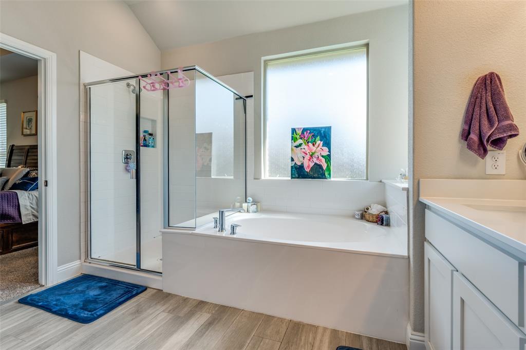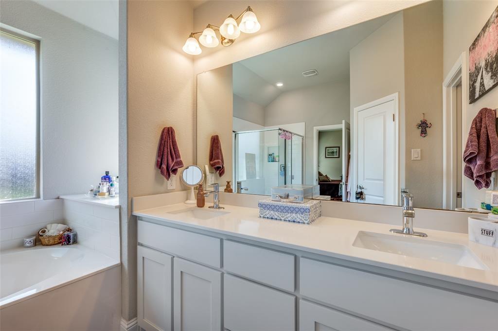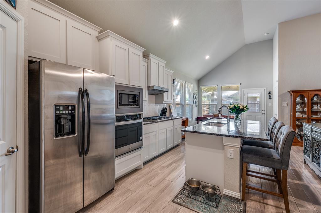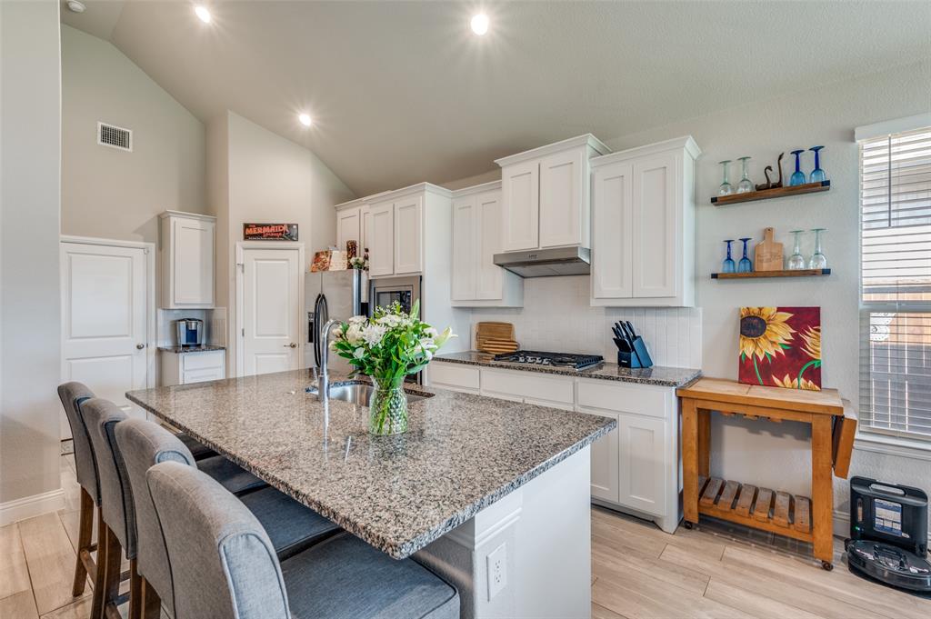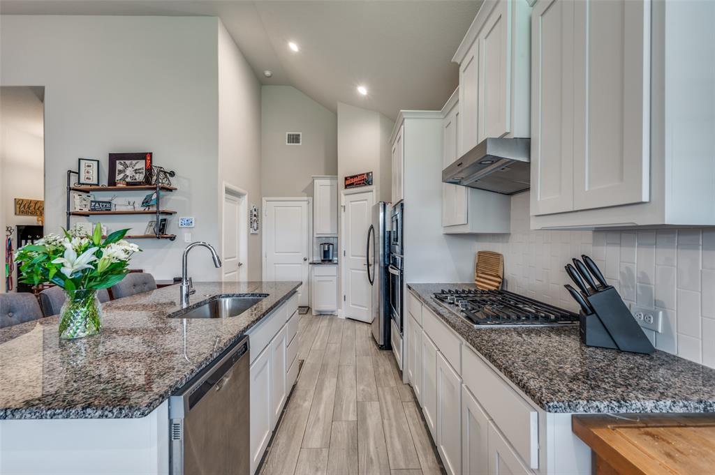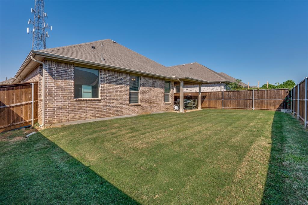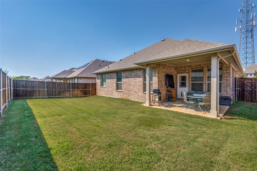 Amazing single story home in The Alcove at Hickory Creek! Incredible location just minutes from 35 with plethora of entertainment and dining choices and conveniently located near Lake Lewisville. Inside you will find wide open layout, awesome for entertaining with 4 bedrooms, 2 baths and 2-car garage! Upgrades include gorgeous wood-look tiling throughout main living ares with plush carpeting in all bedrooms, neutral paint tones, an abundance of natural lighting throughout, tiered ceilings, split secondary bedrooms for added privacy, SMART system and MORE! Kitchen boasts a large island with breakfast bar, quartz countertops with designer backsplash, abundant cabinets and counter space, stainless appliances, and spacious dining area. Primary retreat is secluded at the rear of the home offers a luxurious ensuite with a dual sink vanity, garden tub with seperate shower, and generously-sized walk-in closet. Private backyard with an expansive covered patio area perfect for grilling!