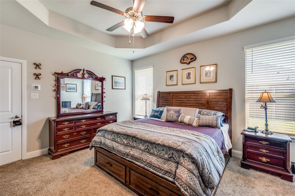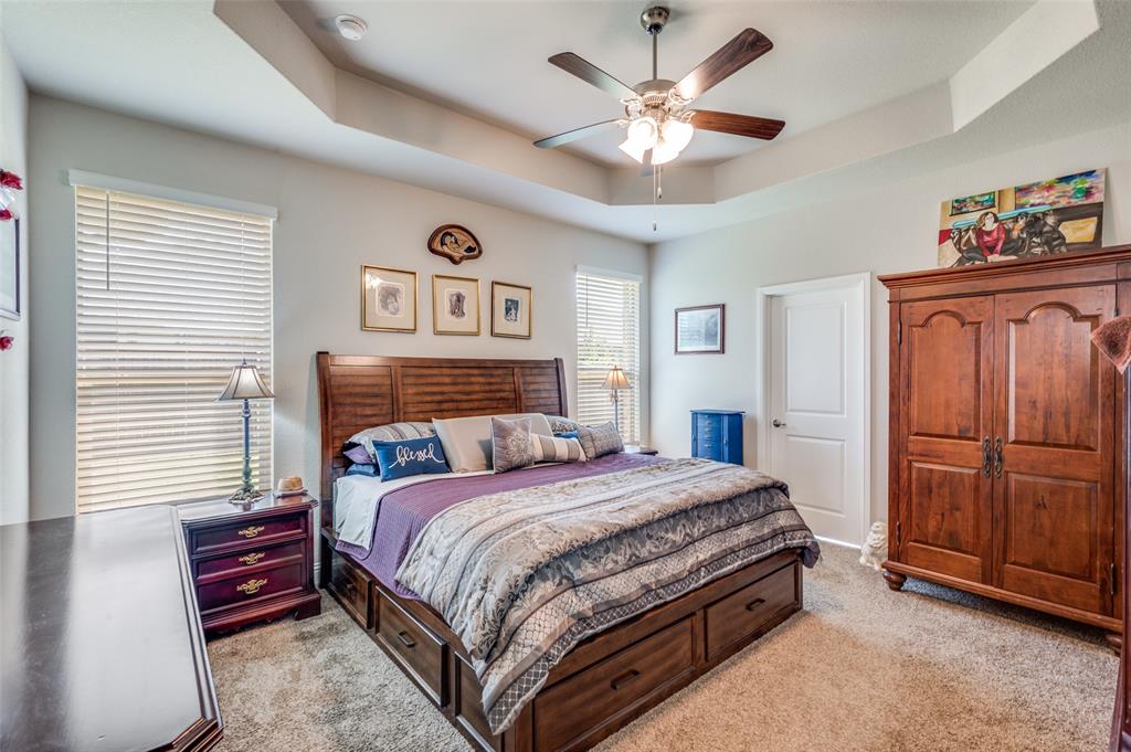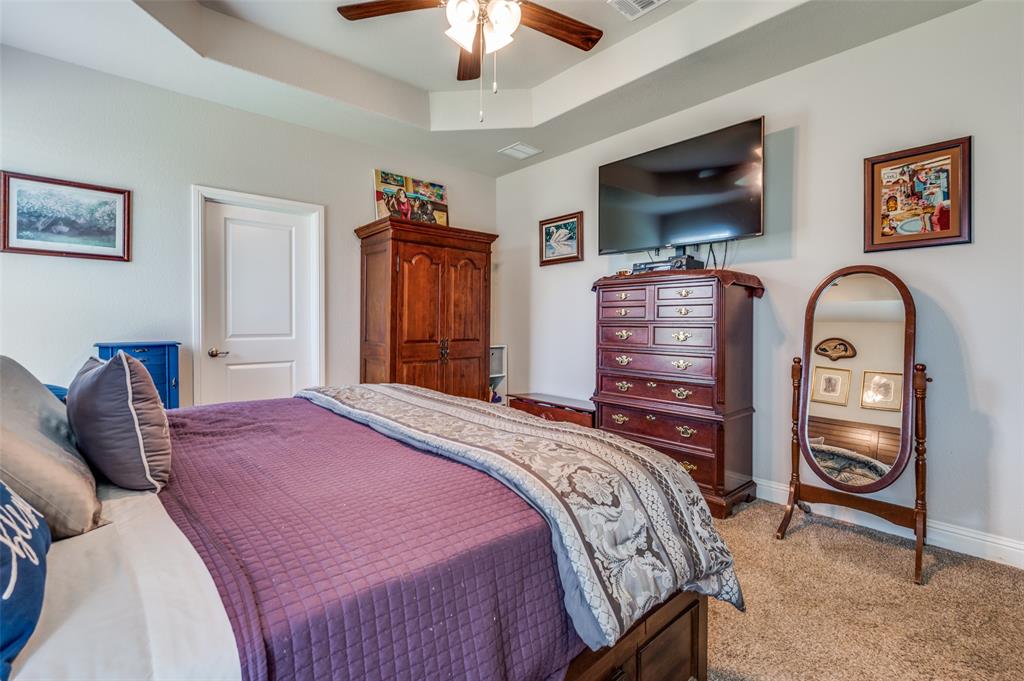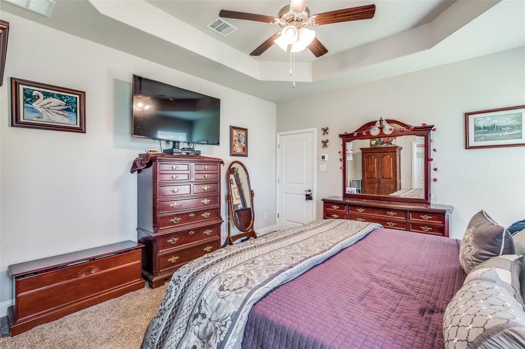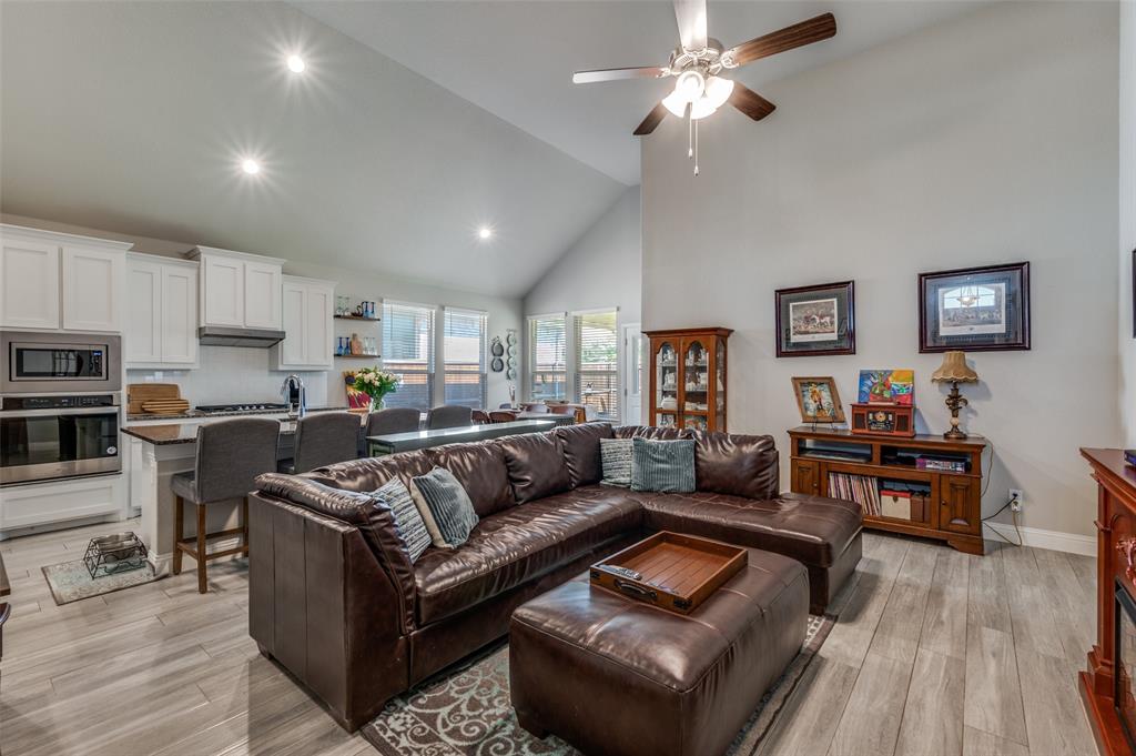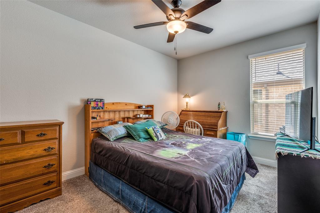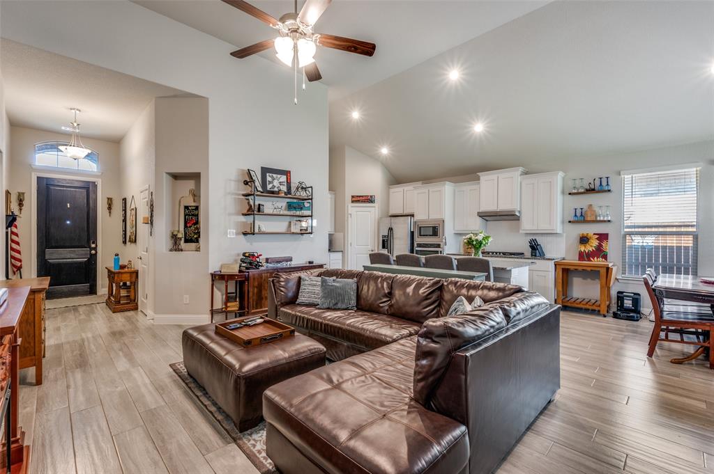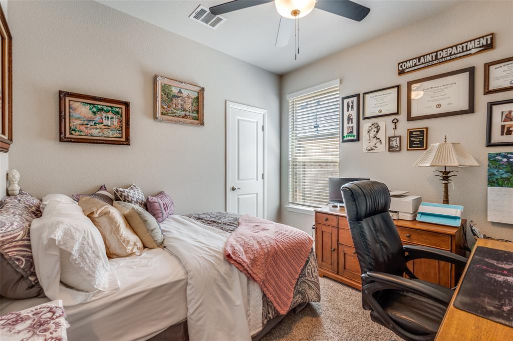 Amazing single story home in The Alcove at Hickory Creek! Incredible location just minutes from 35 with plethora of entertainment and dining choices and conveniently located near Lake Lewisville. Inside you will find wide open layout, awesome for entertaining with 4 bedrooms, 2 baths and 2-car garage! Upgrades include gorgeous wood-look tiling throughout main living ares with plush carpeting in all bedrooms, neutral paint tones, an abundance of natural lighting throughout, tiered ceilings, split secondary bedrooms for added privacy, SMART system and MORE! Kitchen boasts a large island with breakfast bar, quartz countertops with designer backsplash, abundant cabinets and counter space, stainless appliances, and spacious dining area. Primary retreat is secluded at the rear of the home offers a luxurious ensuite with a dual sink vanity, garden tub with seperate shower, and generously-sized walk-in closet. Private backyard with an expansive covered patio area perfect for grilling!