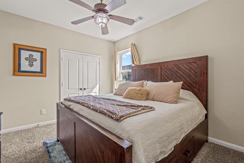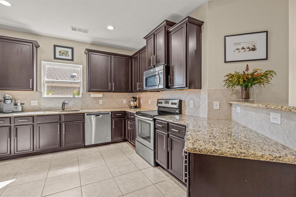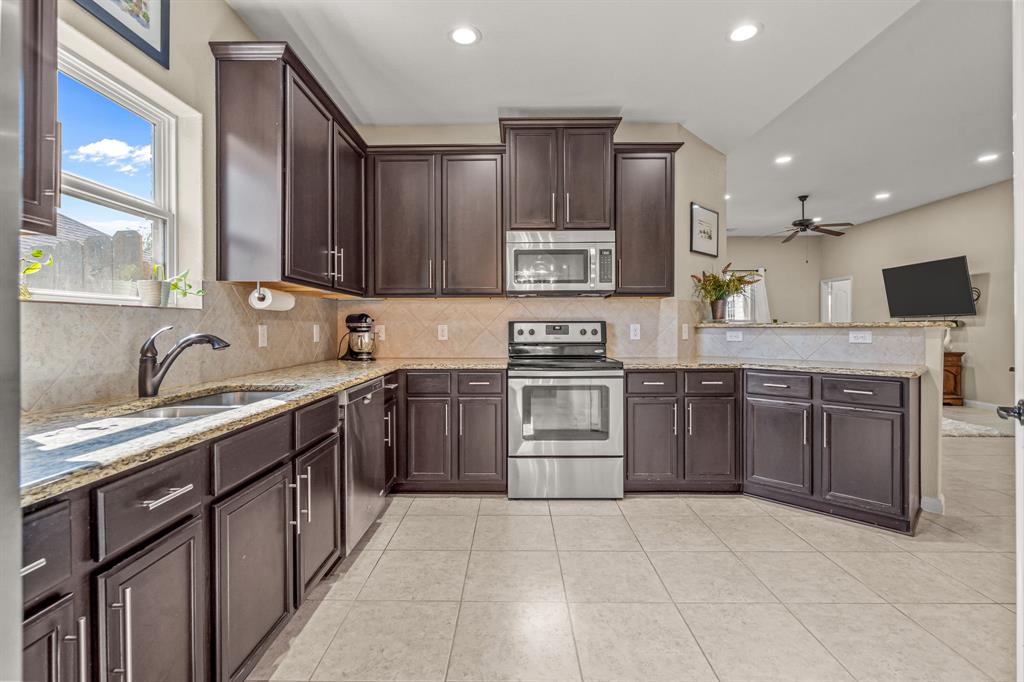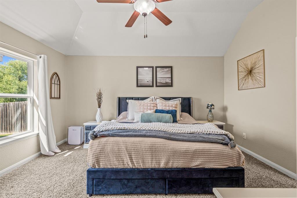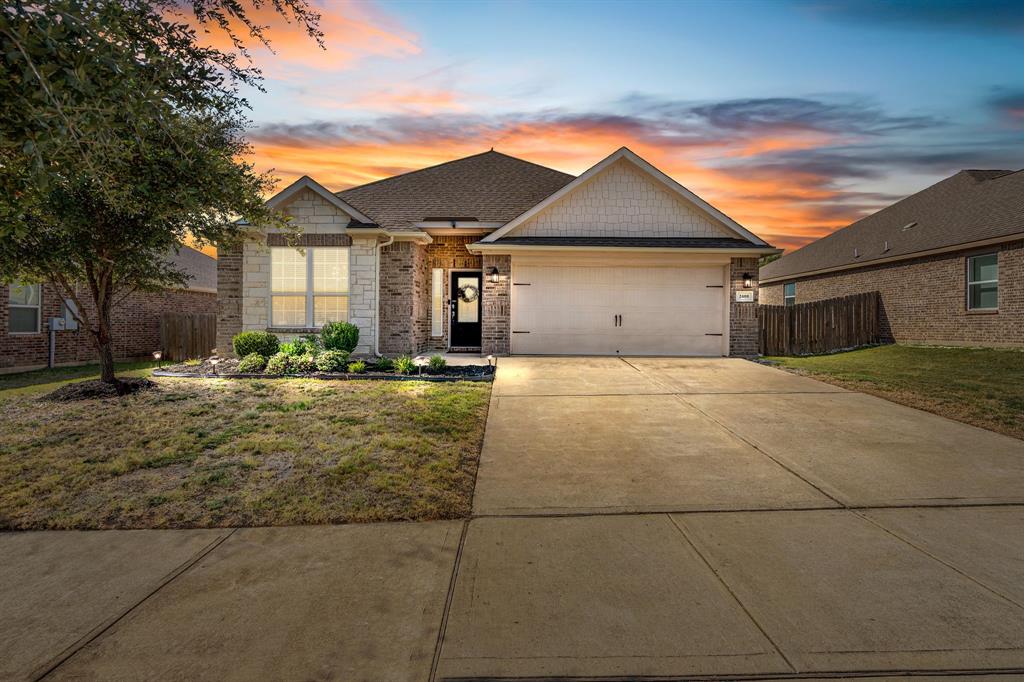 The kitchen is a chef’s dream, boasting granite countertops, stainless steel appliances and a massive walk-in pantry for all your storage needs. The generously sized master suite includes an en-suite bathroom with a soaking tub and separate shower, along with a large walk-in closet. The home’s split-bedroom design ensures privacy for family or guests. Step outside to enjoy a fully enclosed screened-in porch that flows into an extended open patio area — ideal for morning coffee or evening gatherings. The expansive backyard also features a recently added 16X10 shed with electricity, offering even more storage or workspace options. Additional highlights include custom soft-close cabinetry in the utility room, and a decked attic space providing bonus storage. Enjoy no HOA! Close proximity to schools. Easy access to Loop 288 & HWY 380. This home won't last!