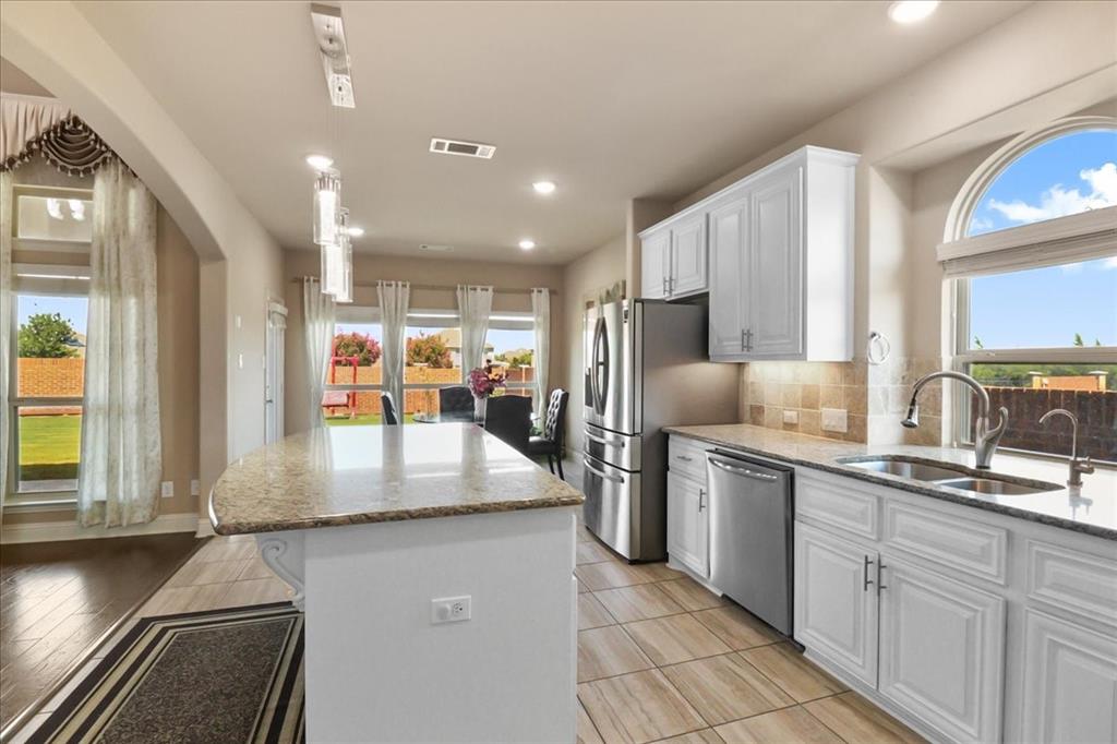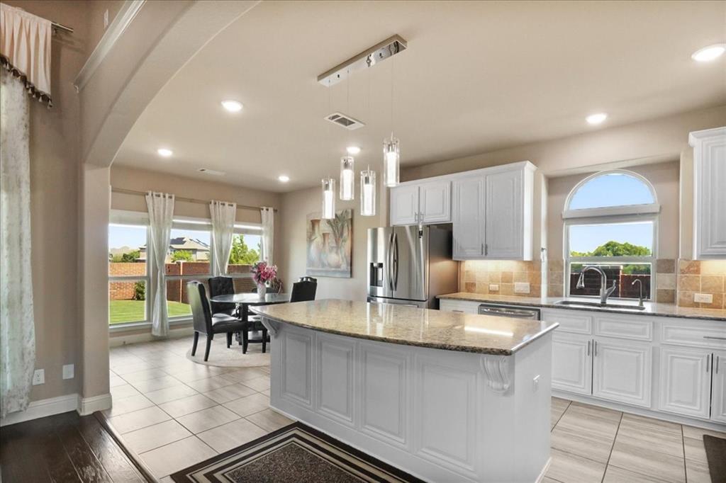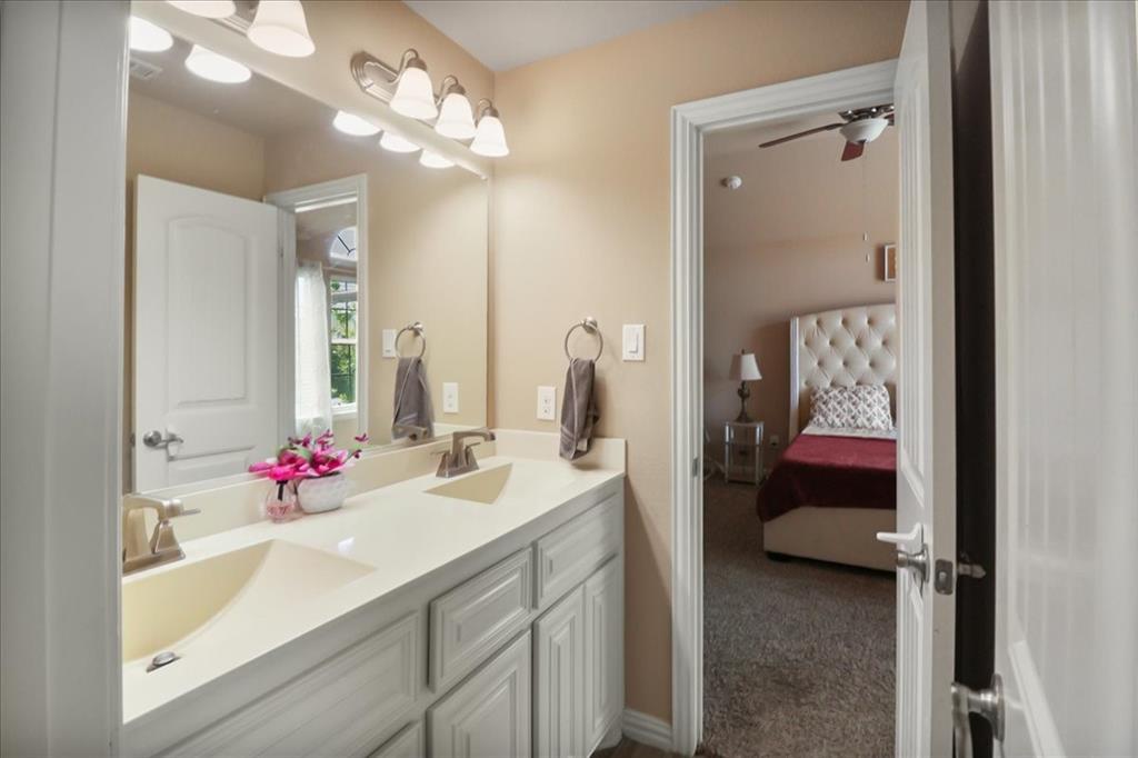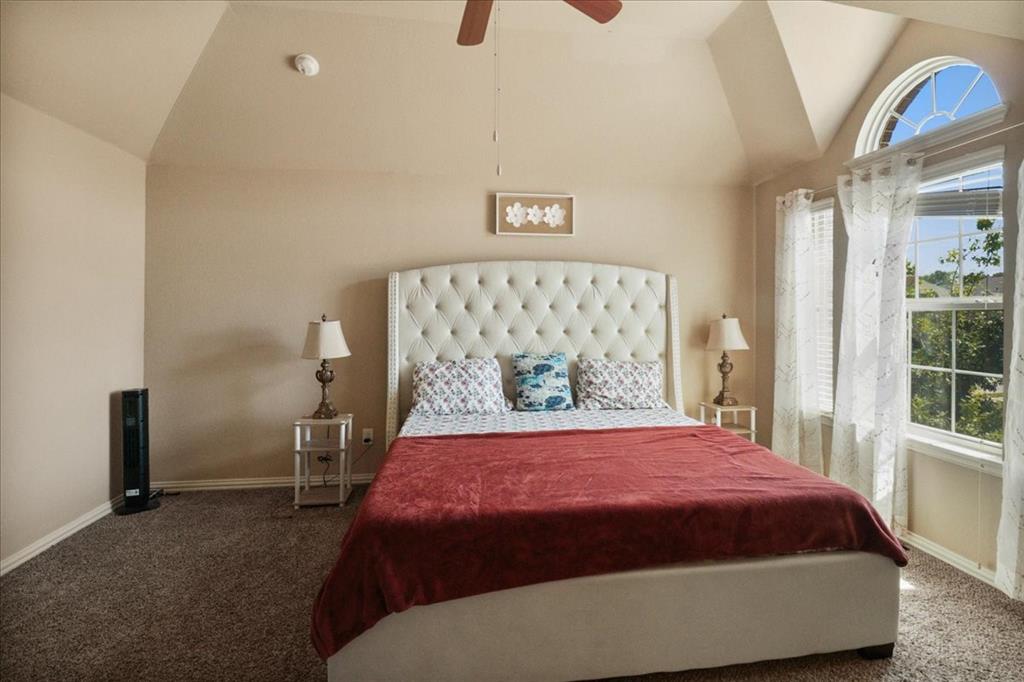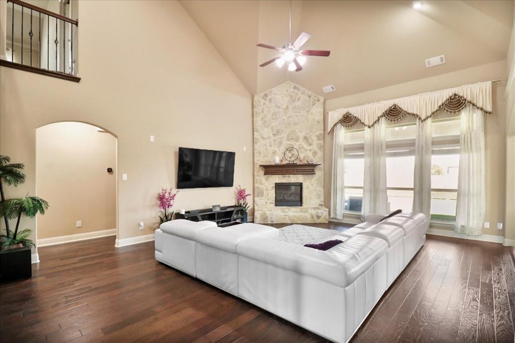Exceptional Steadman Farms home with every room you could want! Located in Keller ISD, this 5-bedroom, 4-bath home has an office, a flex room being used as a 2nd office currently-both on the 1st floor. Also, a game room and a media room upstairs. Home offers show-stopping curb appeal and is situated on an oversized lot. Once inside, you are greeted by soaring double-story ceilings, an impressive breezeway, a dramatic corridor, elegant archways, and a striking floor-to-ceiling stone fireplace. Rich hardwood flooring flows throughout the main living areas, creating warmth and sophistication. Perfect for entertaining, the elegant formal dining room seamlessly connects to the expansive gourmet kitchen and sunny breakfast nook—ideal for hosting holiday gatherings. The kitchen is a chef’s dream, featuring antique white custom cabinetry, a gas cooktop, double ovens, a large center island, a butler’s pantry, and a walk-in pantry. The main-level primary suite is a private retreat, complete with a tray ceiling, spa-inspired ensuite bath, oversized walk-in closet, jetted tub, and walk-in shower with 2 shower heads. 4 additional bedrooms, a Jack and Jill bathroom, and a secondary bath complete the 2nd level. Smart home features throughout, a 3-car garage with a level 2 EV charger, and a large backyard with a covered patio—perfect for weekend BBQs or relaxing evenings outdoors. Low HOA dues give you access to the community, pool, park, and playground. You'll love the quick access to an array of entertainment, shopping & restaurants to enjoy! Don't miss the opportunity to call this beautiful home yours!