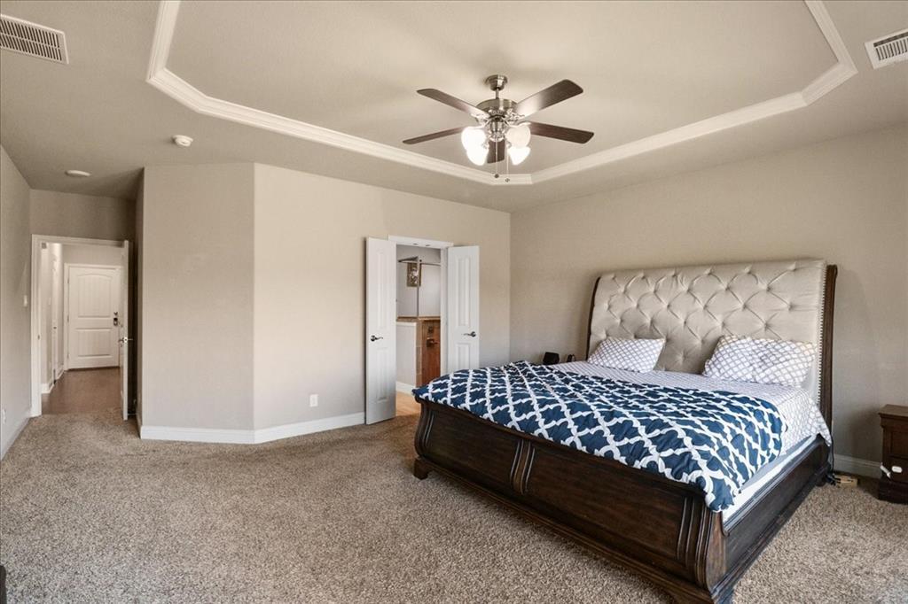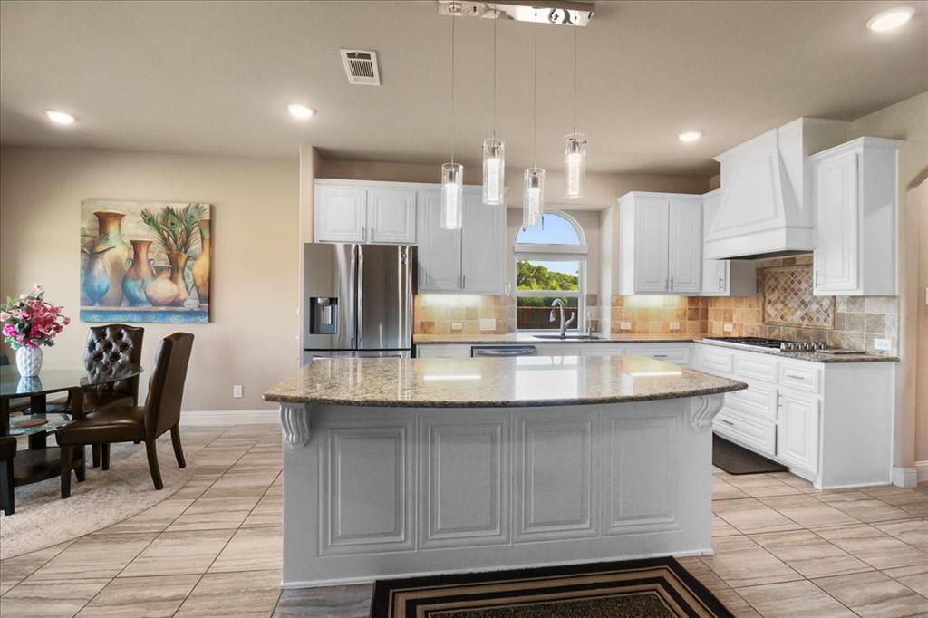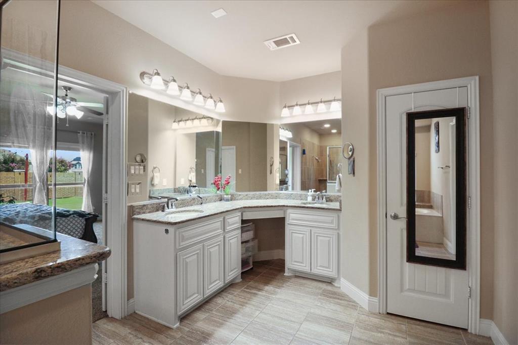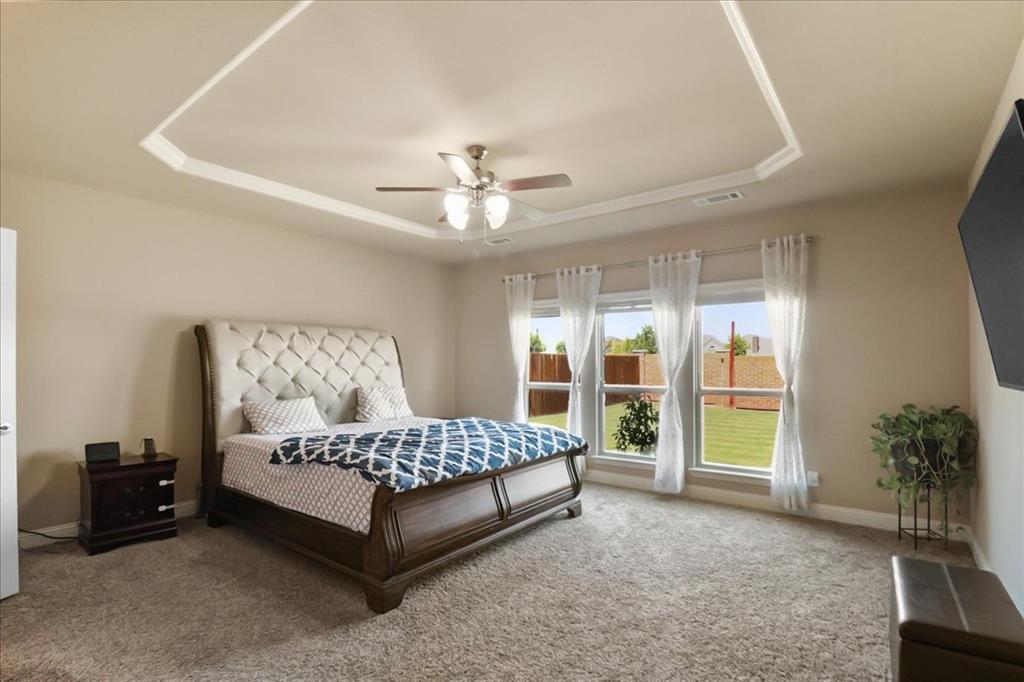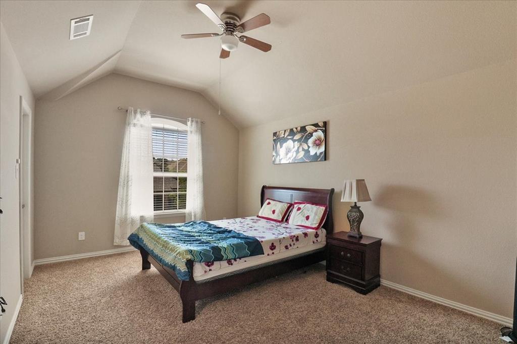 Exceptional Steadman Farms home with every room you could want! Located in Keller ISD, this 5-bedroom, 4-bath home has an office, a flex room being used as a 2nd office currently-both on the 1st floor. Also, a game room and a media room upstairs. Home offers show-stopping curb appeal and is situated on an oversized lot. Once inside, you are greeted by soaring double-story ceilings, an impressive breezeway, a dramatic corridor, elegant archways, and a striking floor-to-ceiling stone fireplace. Rich hardwood flooring flows throughout the main living areas, creating warmth and sophistication. Perfect for entertaining, the elegant formal dining room seamlessly connects to the expansive gourmet kitchen and sunny breakfast nook—ideal for hosting holiday gatherings. The kitchen is a chef’s dream, featuring antique white custom cabinetry, a gas cooktop, double ovens, a large center island, a butler’s pantry, and a walk-in pantry. The main-level primary suite is a private retreat, complete with a tray ceiling, spa-inspired ensuite bath, oversized walk-in closet, jetted tub, and walk-in shower with 2 shower heads. 4 additional bedrooms, a Jack and Jill bathroom, and a secondary bath complete the 2nd level. Smart home features throughout, a 3-car garage with a level 2 EV charger, and a large backyard with a covered patio—perfect for weekend BBQs or relaxing evenings outdoors. Low HOA dues give you access to the community, pool, park, and playground. You'll love the quick access to an array of entertainment, shopping & restaurants to enjoy! Don't miss the opportunity to call this beautiful home yours!