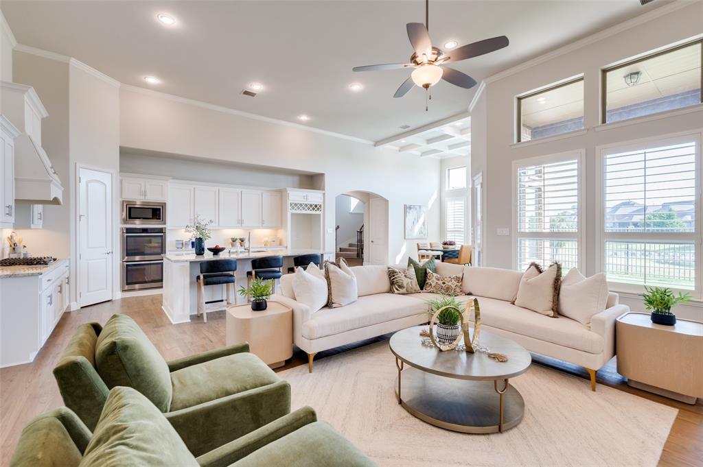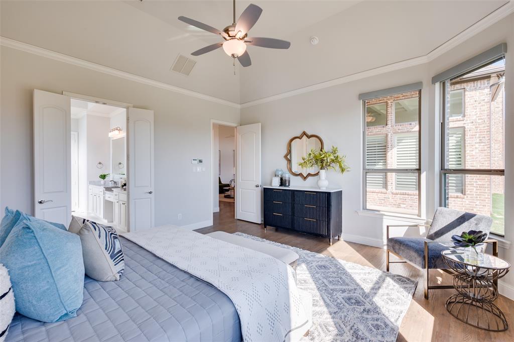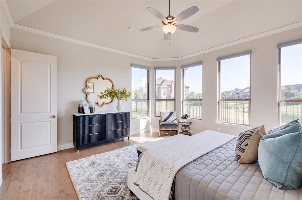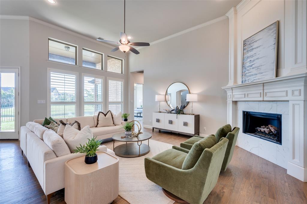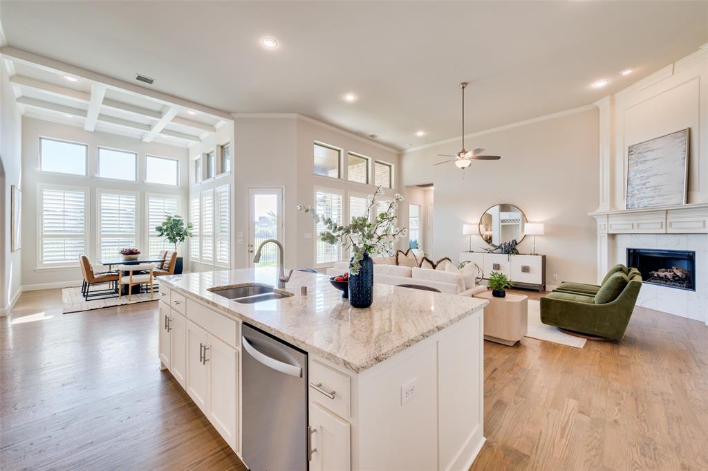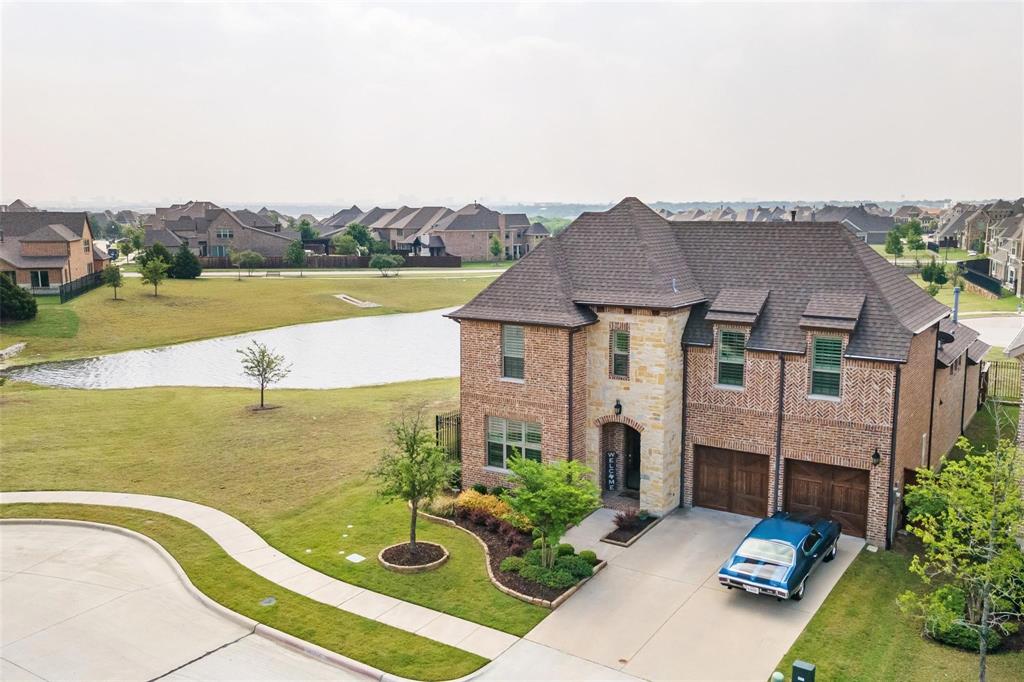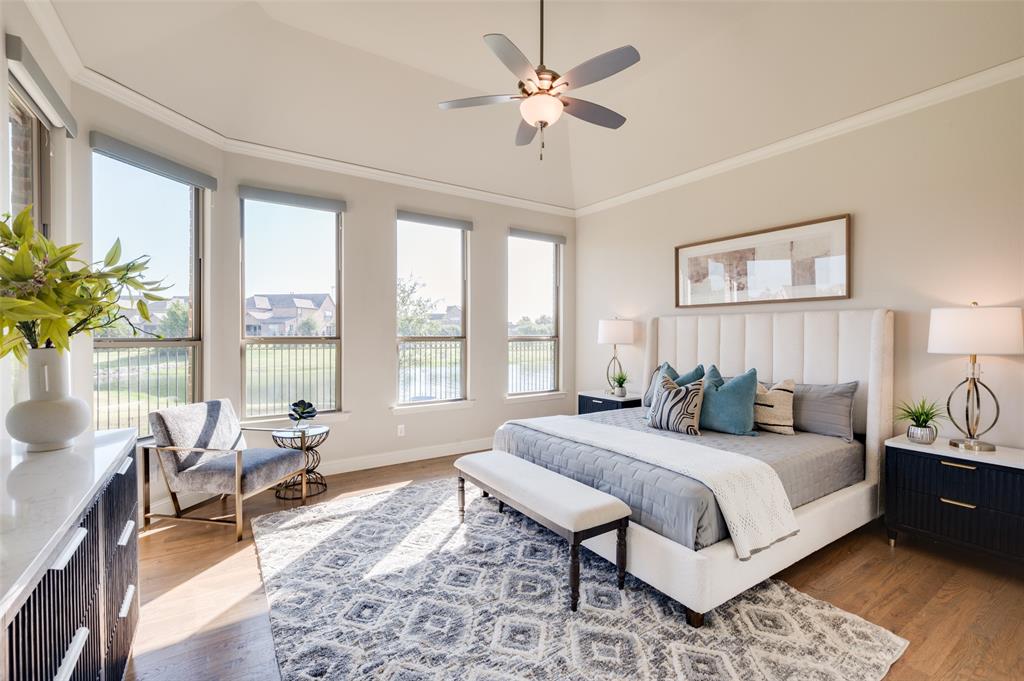 Welcome to lakeside living at its finest in The Tribute Community! This stunning waterfront home offers breathtaking views and a thoughtfully designed layout. From the moment you arrive, you’ll love the curb appeal and serene setting. Inside, the open floor plan features a spacious kitchen with granite countertops, a large island with seating, gas cooktop, and double ovens. The kitchen flows seamlessly into the dining and living areas, all showcasing gorgeous water and fountain views. Hardwood floors and plantation shutters throughout add elegance, while electric shades in the primary suite and game room provide modern convenience. The downstairs primary suite is a peaceful retreat with water views, dual sinks, oversized shower, soaking tub, and a walk-in closet that connects to a large laundry room with a drip-dry area and sink. A second bedroom and full bath on the main level are perfect for guests or multi-generational living. Upstairs, a curved staircase leads to two additional bedrooms, another full bath, and a spacious game room with a half bath. Step outside to a covered patio overlooking the lake, perfect for relaxing or entertaining. The two-car garage includes an ocean-blue epoxy floor.