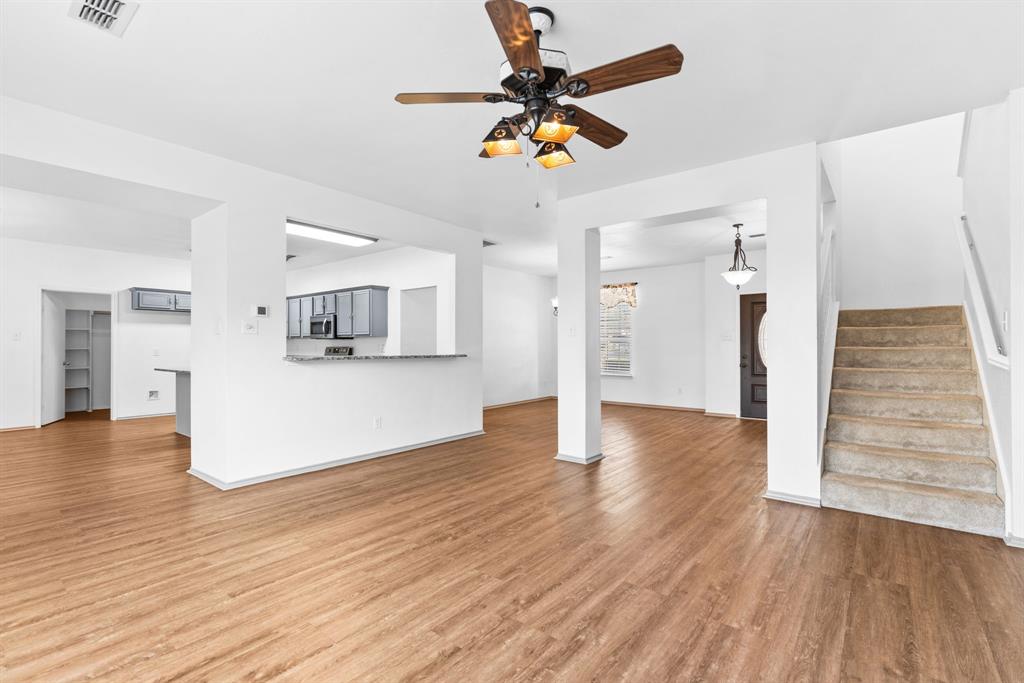 The kitchen has been given a fresh, modern look with gray painted cabinetry, granite countertops, and plenty of space for cooking or gathering. Upstairs, the entire area was just repainted to a clean neutral tone and includes a large game room that can easily fit a pool table, hockey table, office space, or gaming setups. Every bedroom offers generous space and true walk-in closets – no small corners here.