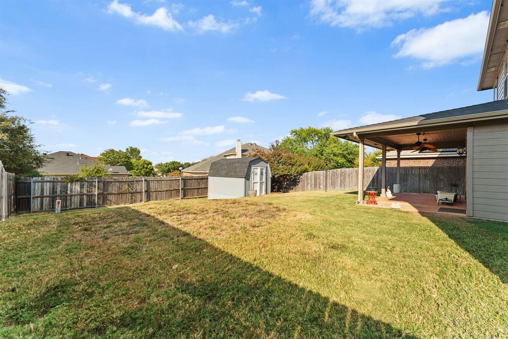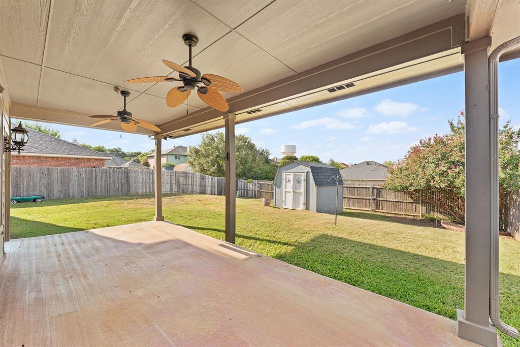 Step outside and you’ll find one of the best highlights of this property: a 10x20 covered patio with two ceiling fans – perfect for evenings with family or friends. The backyard also includes an 8x10 storage shed for all your extras, and freshly landscaped flowerbeds that add great curb appeal without the work.