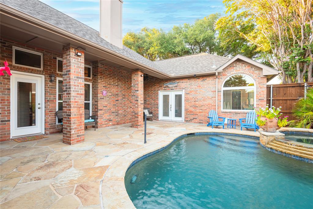 Immaculate One-Story Home with Pool, Spa & Upgrades Galore! Welcome to this beautifully maintained and updated one-story home in a prime location! Featuring 3 spacious bedrooms, 2 full bathrooms, and 2 versatile living and dining areas, this home offers both comfort and flexibility for modern living. Step inside to stunning wood floors throughout, with tile in both bathrooms for easy maintenance. The updated kitchen is a chef’s dream—complete with granite countertops, stainless steel appliances, a 5-burner electric cooktop, pantry, eat-up breakfast bar, and abundant cabinet space. The kitchen flows seamlessly into the large family room, which boasts a gas starter fireplace, surround sound wiring, and a wall of windows overlooking your private backyard oasis. The spacious primary suite is tucked away for privacy and features French doors leading to the covered patio and pool area. The ensuite bathroom has been fully renovated with travertine tile, dual sinks, a large walk-in shower, soaking tub, and custom cabinetry. The backyard is a truly the heart of this home—perfect for entertaining or relaxing—with a covered patio, sparkling pool and spa, pergola, lush landscaping and beautiful night lighting. The front yard is equally impressive with mature trees and manicured landscaping. In 2023, the home received a new roof and energy-efficient windows, offering peace of mind and improved efficiency. Additional features include a backup generator, smart thermostat and lighting controls, multiple Ethernet jacks for high-speed connectivity, automatic sprinkler system, and rain gutters with guards. Near Mathews Elementary and Davis Library, and just minutes from shopping, dining and major highways. Don't miss this move-in-ready gem which blends thoughtful updates, timeless comfort, and a backyard retreat that truly steals the show.