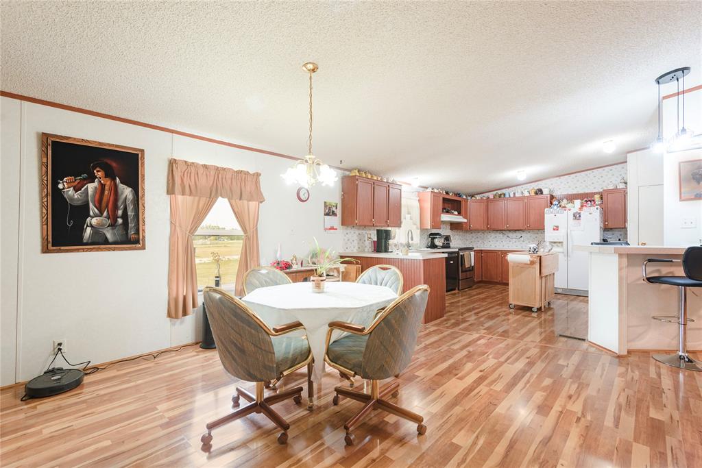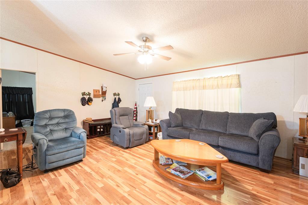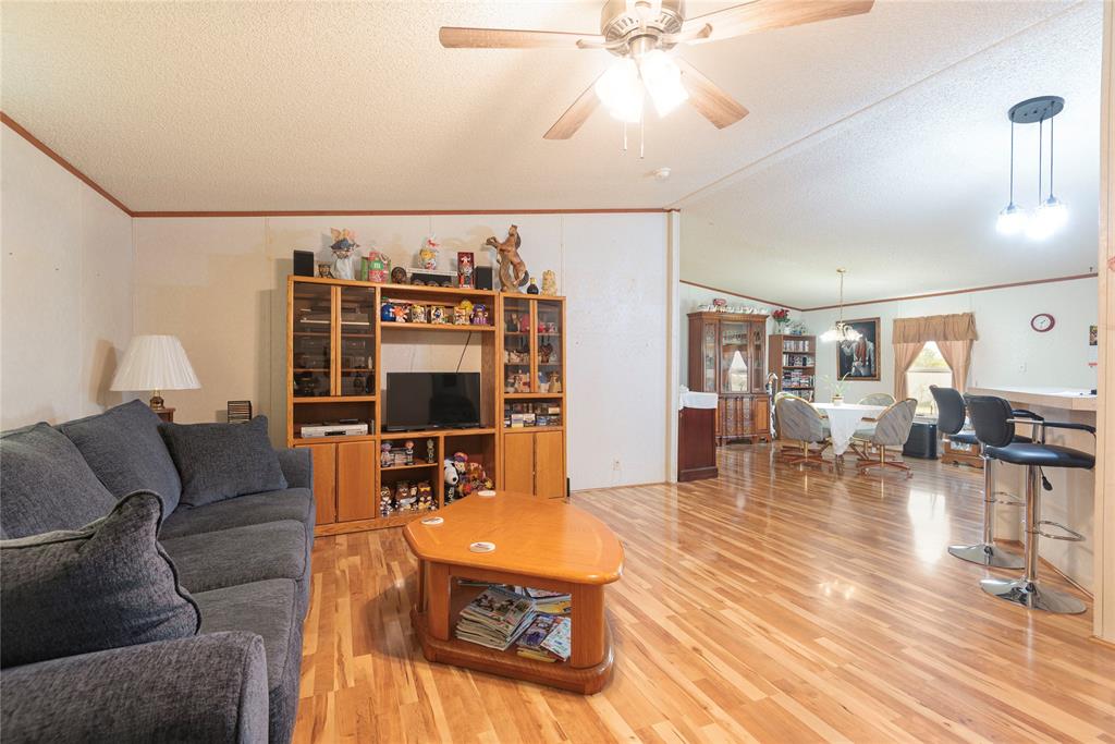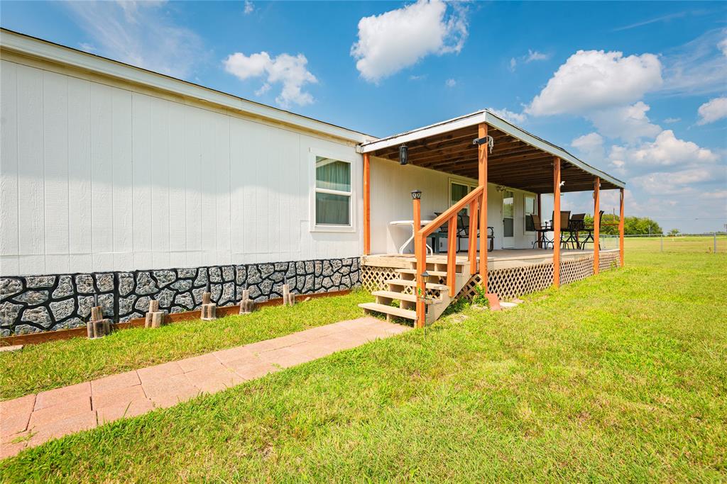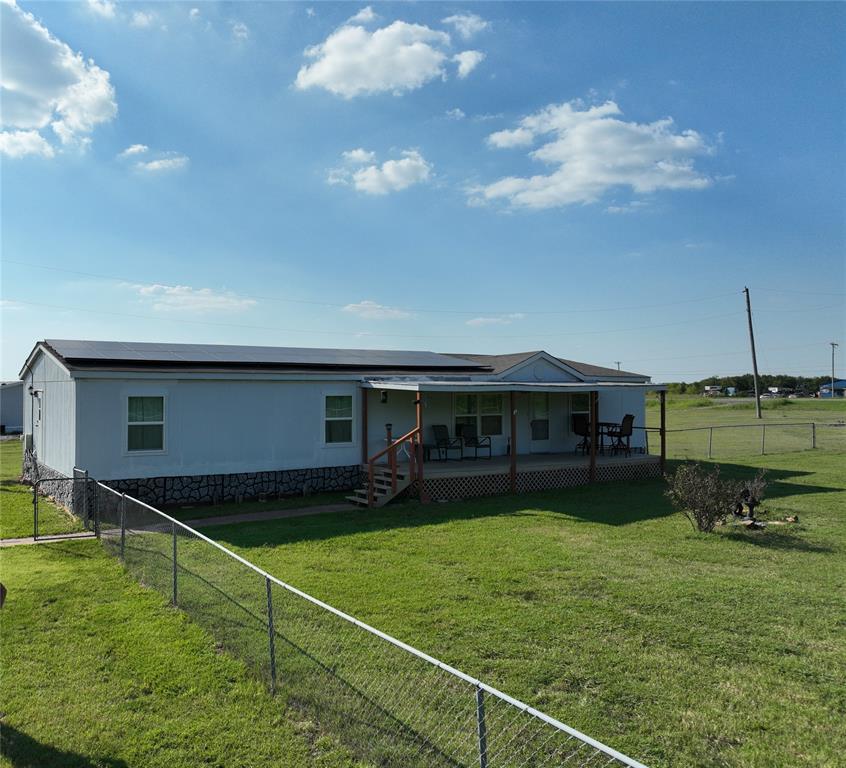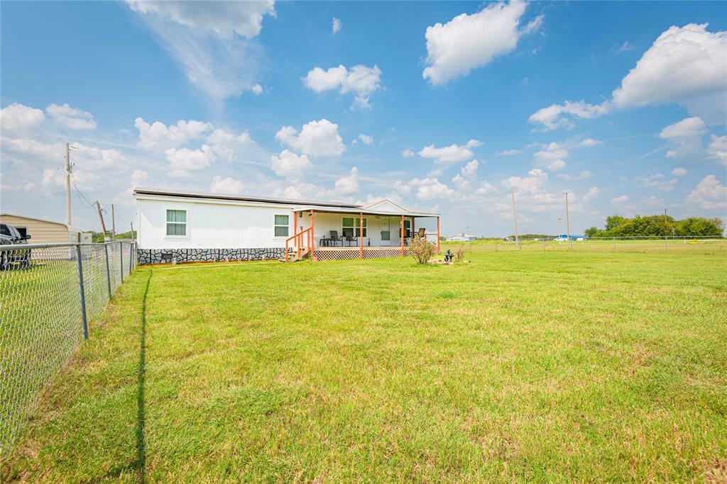 Welcome to your new home, enjoy the sunrises from your front porch, home sits on nearly 2 acres of land. This beautifully maintained doublewide offers the perfect blend of space, style, and serenity. Step onto the expansive wooden front deck, ideal for morning coffee or evening gatherings under the stars. Front yard has chain link fence for the babies (either human or with fur). Inside, you'll find gleaming wood laminate floors that flow throughout the living, kitchen area adding warmth and charm to the rooms. With 4 generously sized bedrooms and 3 full bathrooms, there's plenty of room for family, guests, or a home office setup. Master suite is a must see, as the room is huge! The detached garage provides ample storage and workspace, while the wide-open yard offers endless possibilities—from gardening to outdoor entertaining or even future expansion. Also, a detached 20x20 garage or shop with concrete floors - great for storage or workshop!