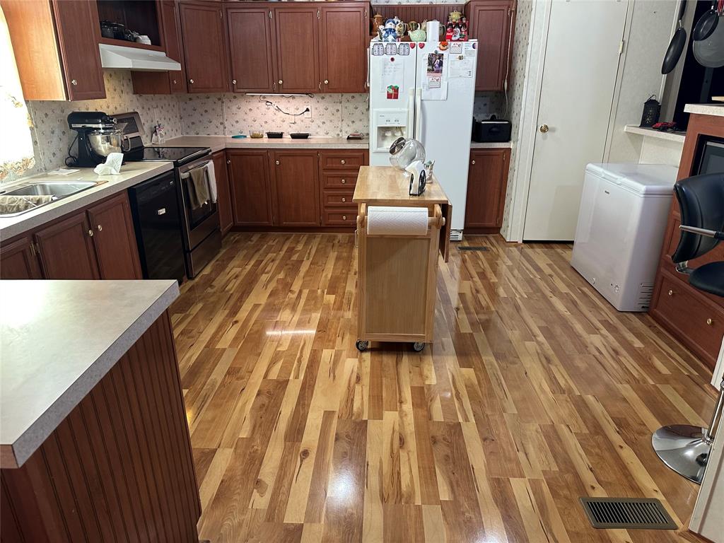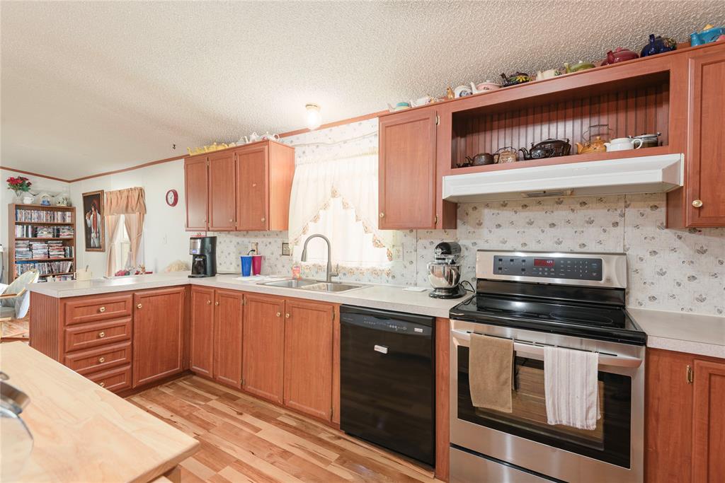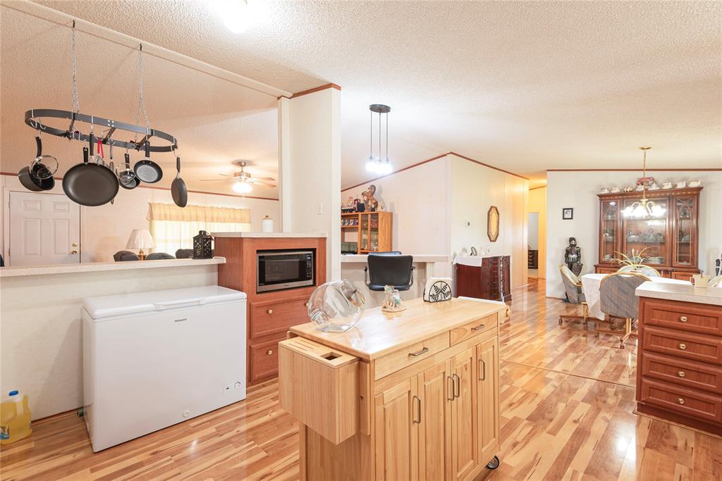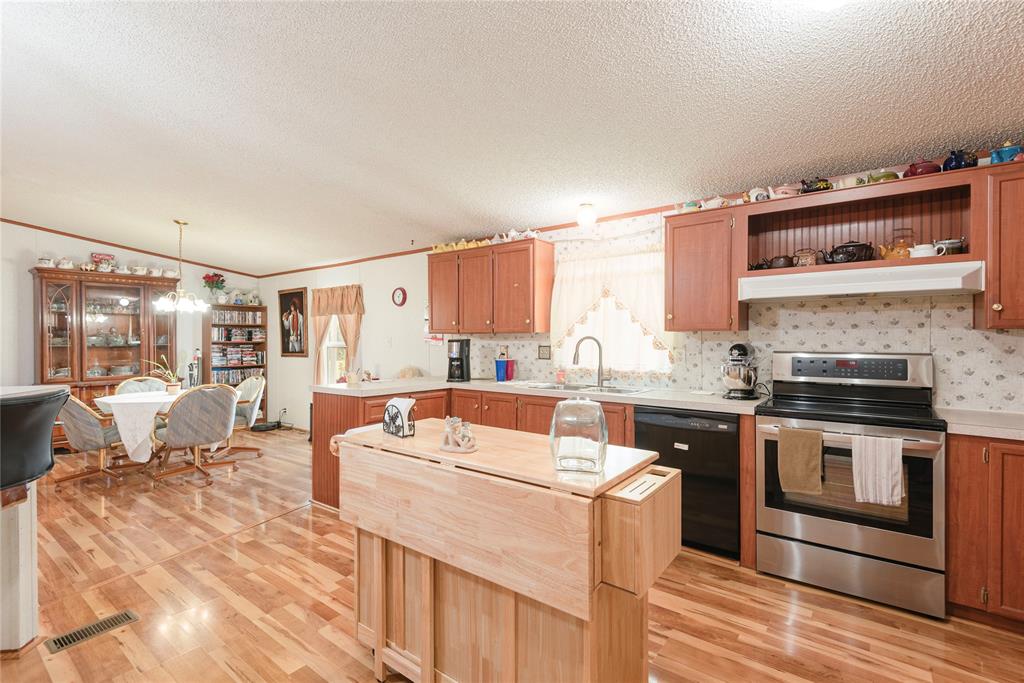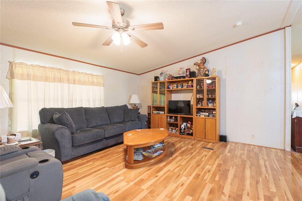 Welcome to your new home, enjoy the sunrises from your front porch, home sits on nearly 2 acres of land. This beautifully maintained doublewide offers the perfect blend of space, style, and serenity. Step onto the expansive wooden front deck, ideal for morning coffee or evening gatherings under the stars. Front yard has chain link fence for the babies (either human or with fur). Inside, you'll find gleaming wood laminate floors that flow throughout the living, kitchen area adding warmth and charm to the rooms. With 4 generously sized bedrooms and 3 full bathrooms, there's plenty of room for family, guests, or a home office setup. Master suite is a must see, as the room is huge! The detached garage provides ample storage and workspace, while the wide-open yard offers endless possibilities—from gardening to outdoor entertaining or even future expansion. Also, a detached 20x20 garage or shop with concrete floors - great for storage or workshop!