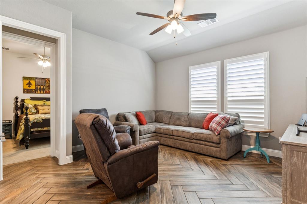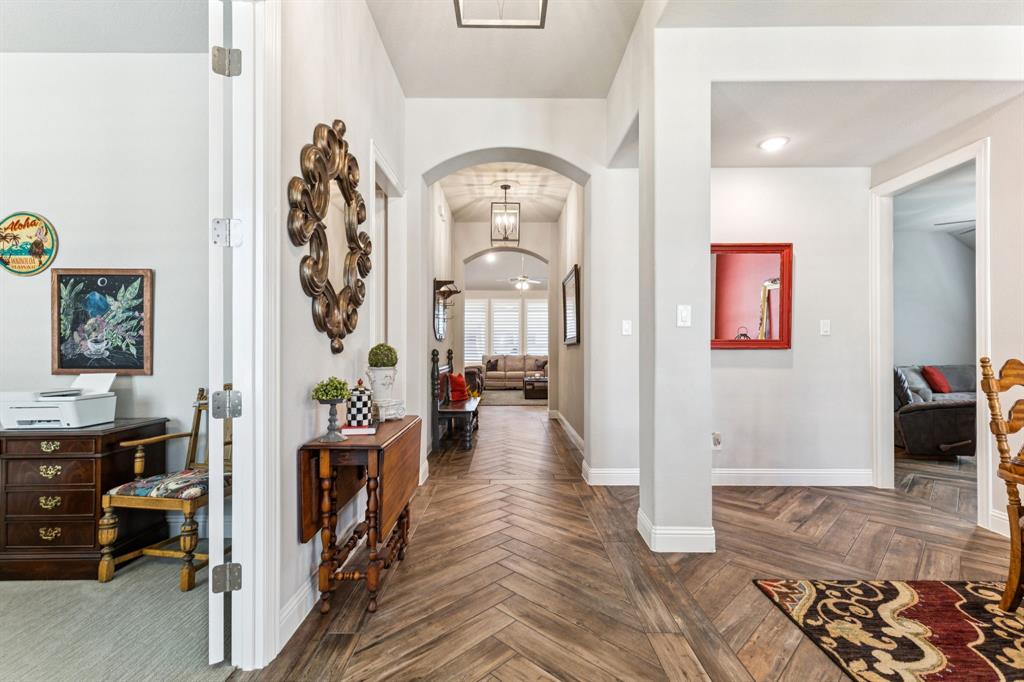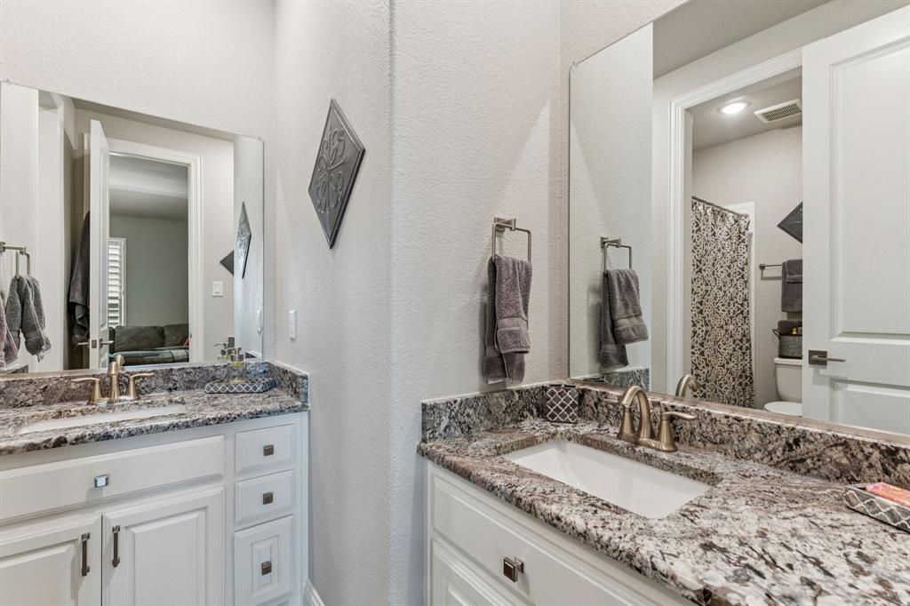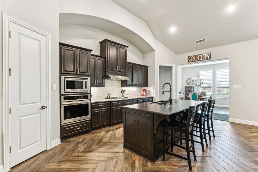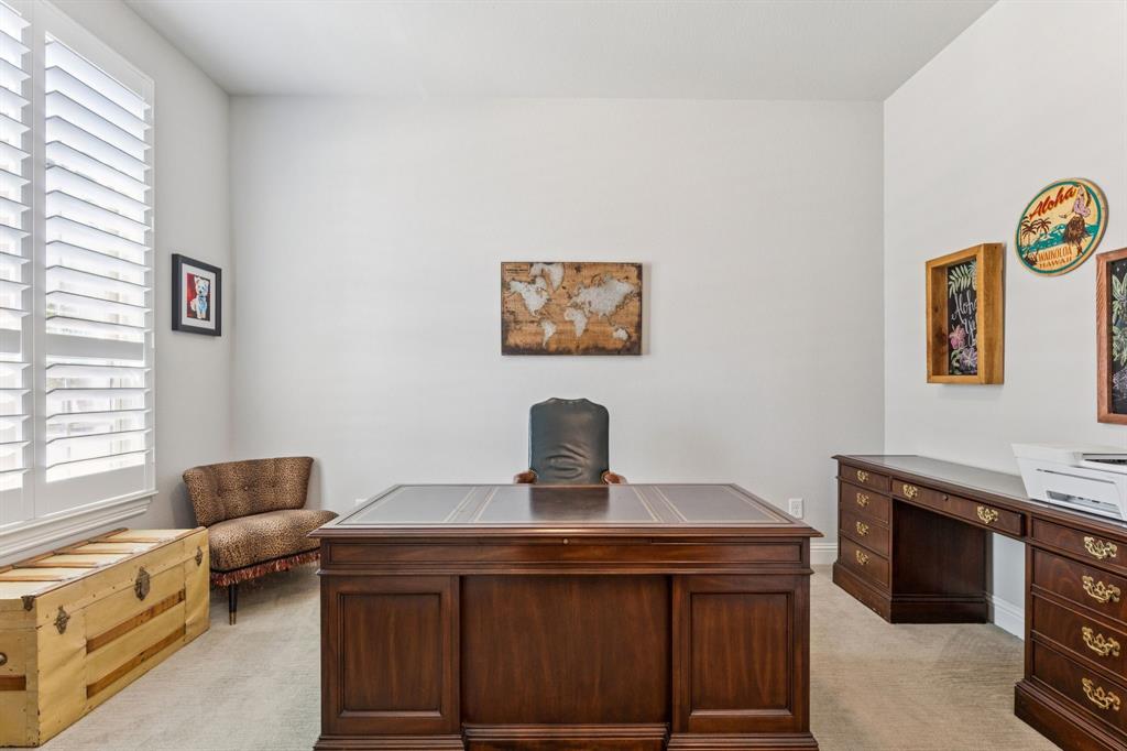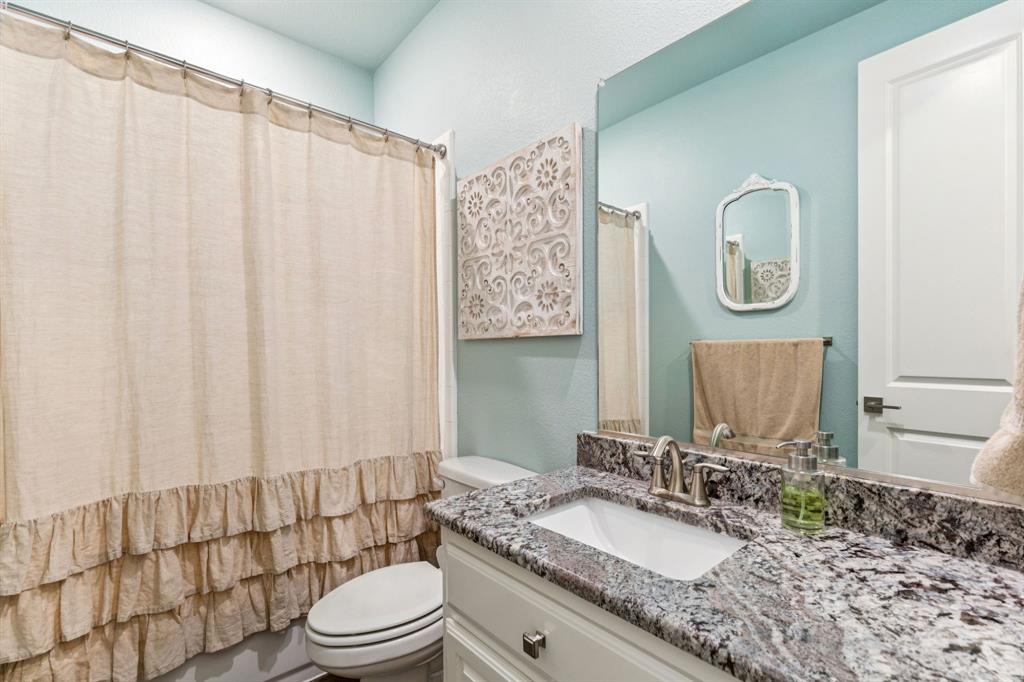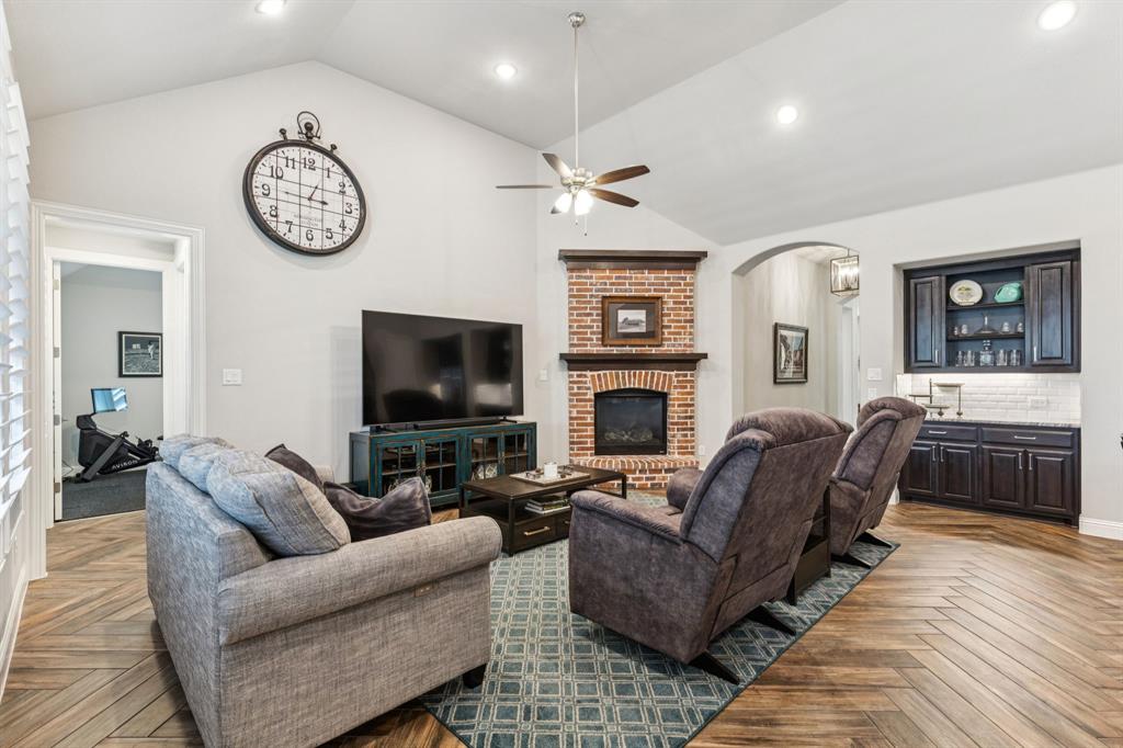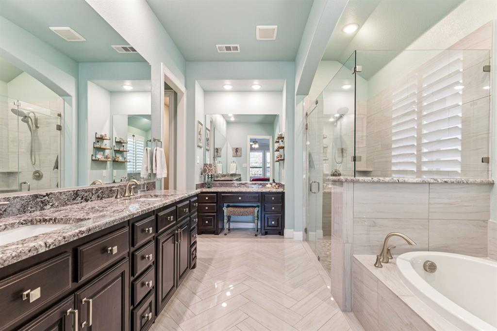Stunning 2018 Highland Homes Single-Story in Award-Winning Wildridge! Located on a private cul-de-sac, this beautifully updated home combines thoughtful design, timeless finishes, and an impressive list of recent upgrades. Featuring a rare 4-car garage with epoxy floors, built-in custom cabinets, and overhead storage, plus a bonus room, private study, and sprawling open-concept layout, this home is ideal for both entertaining and everyday living. Step inside through the custom 4' x 8' iron front door with transom (2024) to find a light-filled interior with soaring ceilings and a smart floor plan. The kitchen is a showstopper, boasting new granite on the island (2023), stainless steel appliances including a gas cooktop, walk-in pantry, and plenty of storage. New flooring throughout all living areas, the master bath, and laundry (2023). The private primary suite is a true retreat, offering a spa-inspired en-suite with dual sinks, makeup station, soaking tub, frameless glass shower, and a large walk-in closet connected to the laundry room. Every window is dressed with plantation shutters, adding elegance and functionality. Step outside to your backyard oasis, complete with a sparkling pool, epoxy-coated patio floors, outdoor kitchen with EVO cooktop, and a cedar pergola with new slats (2024)—perfect for year-round gatherings. The home’s curb appeal is enhanced by a new roof (2024) and new exterior paint (2024). Additional highlights include a new water heater (2025) and bi-annual HVAC service.