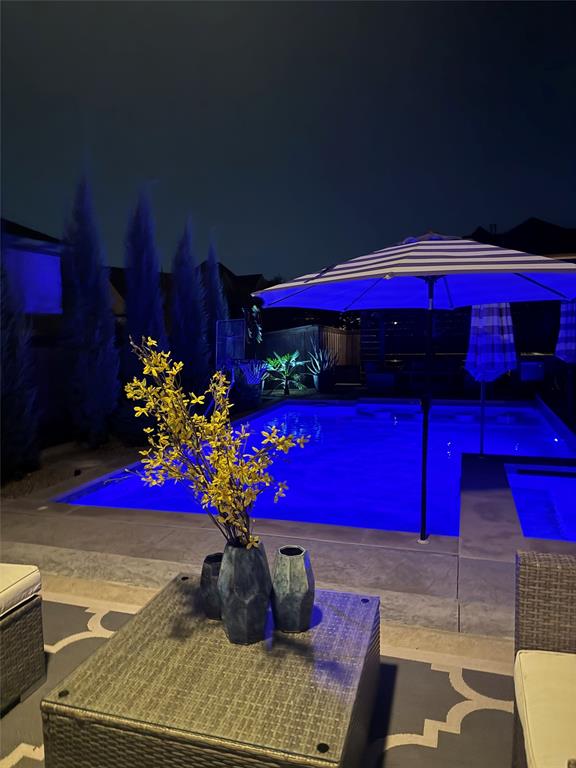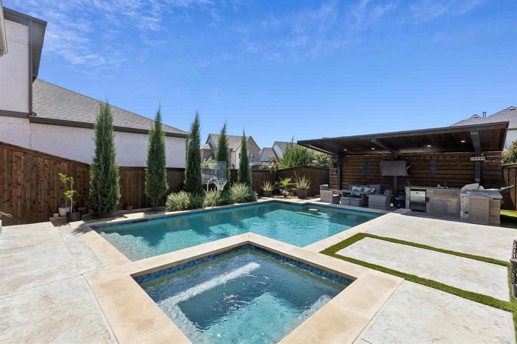 Custom built by Southgate in Angel Field West, this home truly blends high quality finishes, energy smart systems, and thoughtful details. 44 Panasonic solar panels with Enphase inverters are PAID OFF and save an est. 5 to 6k in annual electric costs! A treelined walkway to the shaded front porch sets the stage before you step inside to find premium 5in wood floors throughout the first level, stairs and game room. Decorative lighting, solid wood doors, soaring ceilings. The kitchen features an oversized quartz island, pendant lighting, double ovens, pot filler, 6 burner gas cooktop, wood vent hood, and cabinets stacked to the ceiling. Breakfast area overlooks the sparkling pool with custom automated roll up shades. Living room with stone gas fireplace, prewired with speakers and wood beams. The primary bath has a freestanding tub, oversized shower, and dual quartz vanities with a walk in closet that connects the laundry room with a sink. Another bedroom on the main level close to a full bath. Covered back patio with fireplace and automated 16ft patio shade. Top of the line 2023 pool and spa with Pentair equipment and automation. Spa has 8 massage jets and bubble feature; pool with water feature and color changing LED lights. Fully equipped outdoor kitchen with custom wood pergola, TV mount, backyard turf and a Zen hammock garden with lighting. Holiday light outlets with switch in stair storage closet. Second level game room, media room and 2 additional bedrooms, 1 bedroom with an ensuite bath and balcony. Media room prewired for 7.1 sound and 155in screen. This smart home is loaded and energy efficient! Alexa enabled roll up blinds, electronic water main valve in the mud room. Tesla Powerwall 2 battery for uninterrupted power during outages, tankless water heater, radiant barrier, water softener w. microfiltration, reverse osmosis drinking water system, EV charging plug, and whole house surge protection. 3 car tandem garage with epoxy flooring and overhead storage.