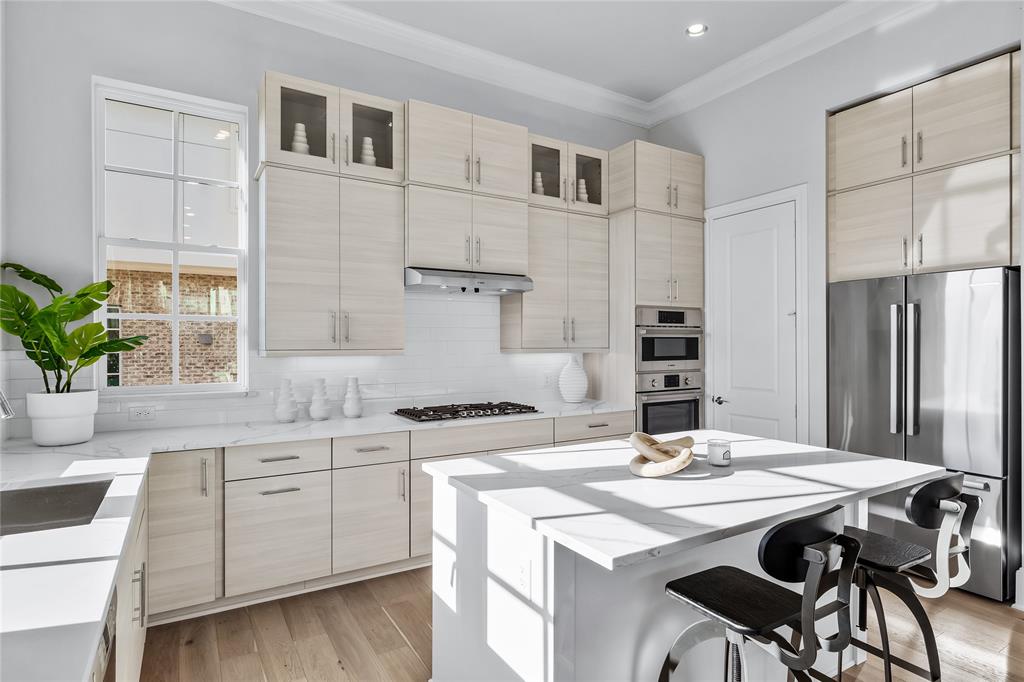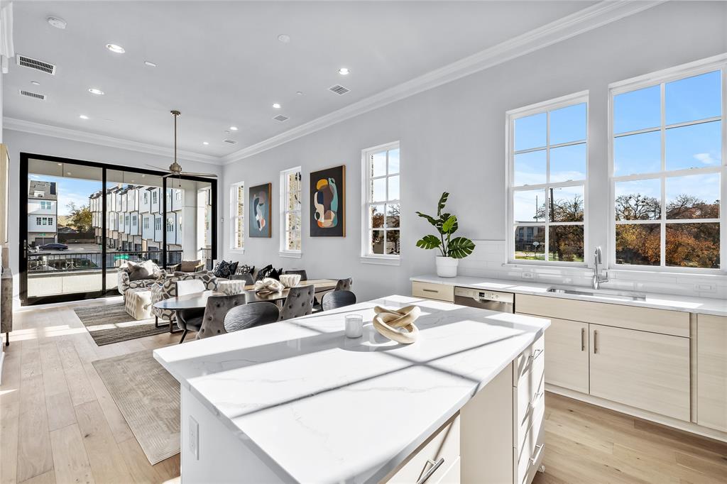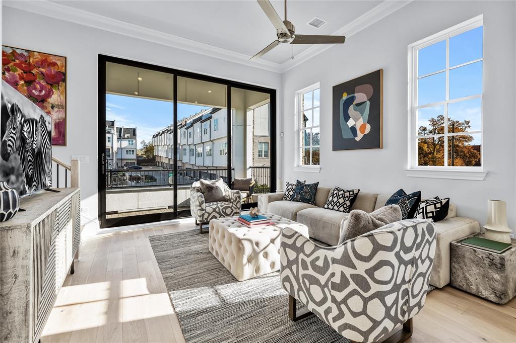 Last remaining move-in ready end unit for this year! Experience elevated living in this exquisite 3-bedroom, 3.5-bath townhome by InTown Homes, thoughtfully designed for both luxury and entertaining. The main living area is bathed in natural light, boasting soaring 12-foot ceilings, elegant 5-piece crown molding, and a 10-foot sliding panel door that opens to a private balcony. The gourmet kitchen features Fisher & Paykel appliances, sleek quartz countertops, a designer tile backsplash, and upgraded stacked cabinetry for a polished look. The primary suite is an ideal space to unwind, complete with a spa-inspired bath offering a drop-in tub, walk-in shower and an expansive walk-in closet. Sustainable engineered hardwood floors throughout add warmth and sophistication, while the rooftop terrace serves as the perfect venue for hosting guests. Located near the Dallas Medical District and Oak Lawn, this home provides unparalleled convenience with easy access to major thoroughfares and vibrant neighborhoods. PLEASE VISIT THE MODEL HOME AT 4604 WARWOOD LN FOR ALL OPEN HOUSES.