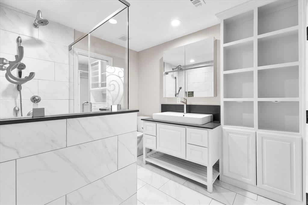 serene backyard. Relax & unwind in the amazing master ensuite with a seamless walk in shower, vessel sink, custom