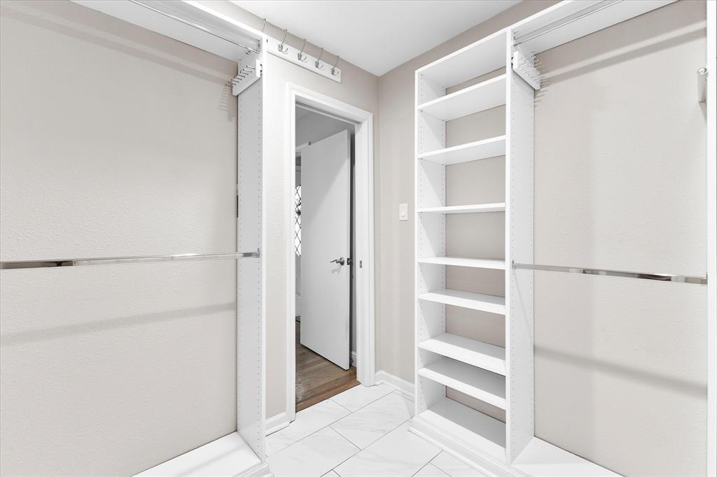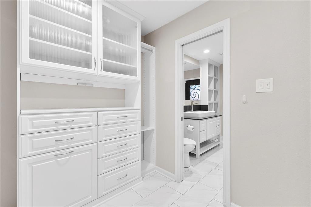 walk-in closet & door leading to the side yard. Split bedrooms with deep walk in closets. Flex room off the front door can be an office, exercise room, nursery, etc. The outdoors is made for entertaining in the resort style pool with a peaceful waterfall feature & spa. Extended drive and 8 ft board on board automatic gate provide plenty of privacy. A home not to miss!