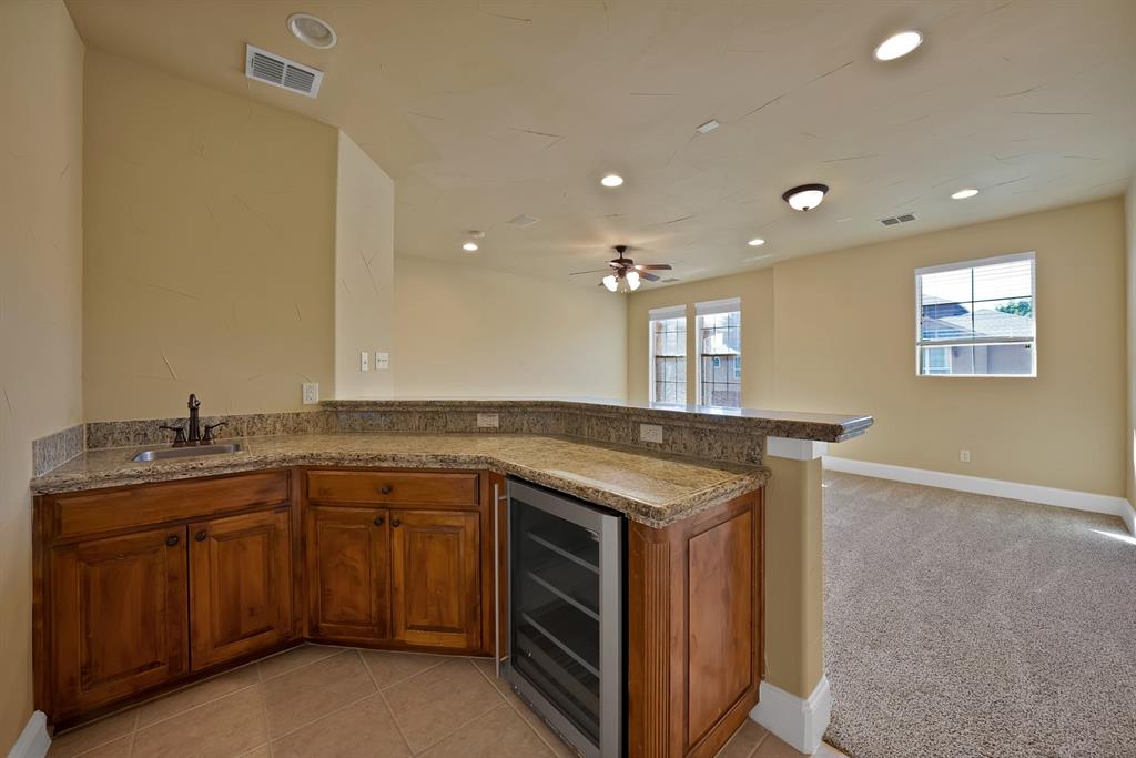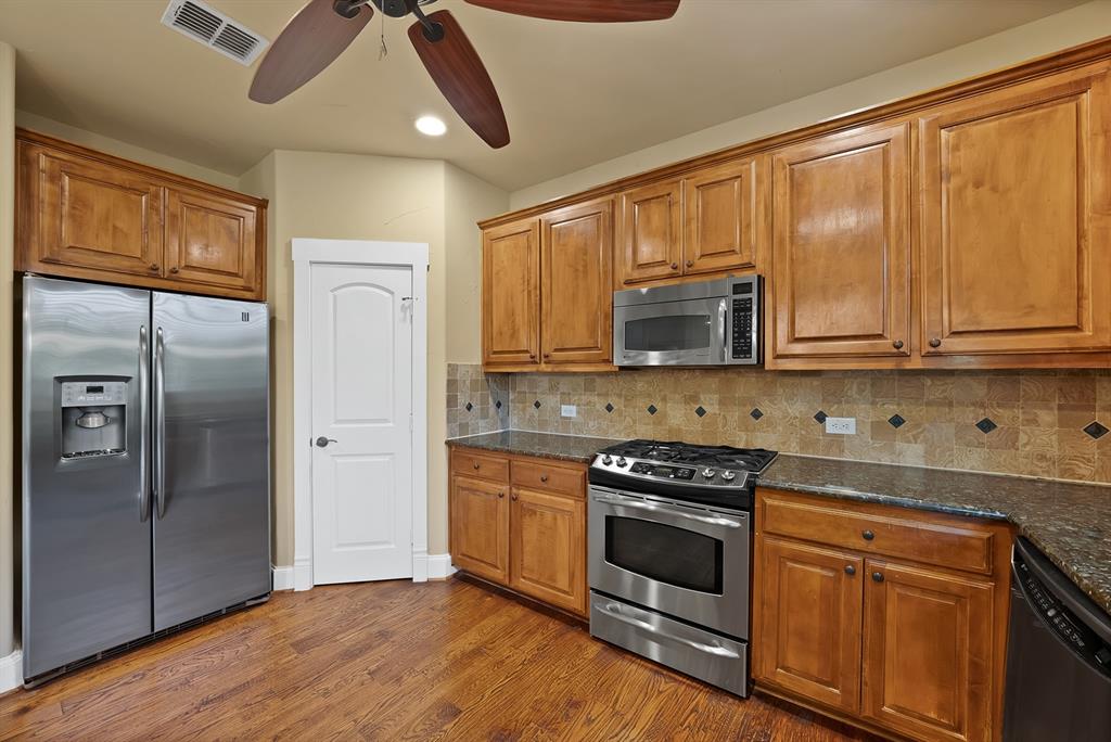 home boasts granite countertops throughout, gas stove, and stainless appliances in the kitchen with abundant natural
