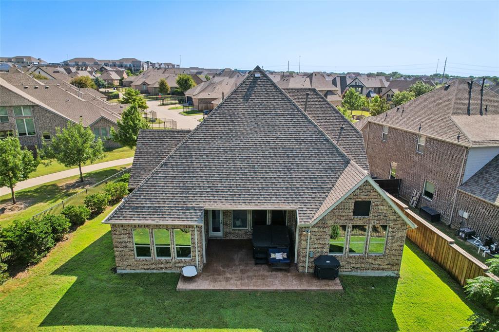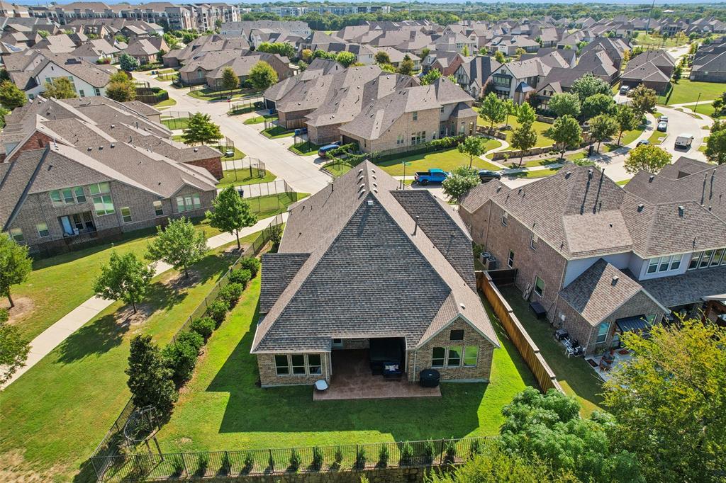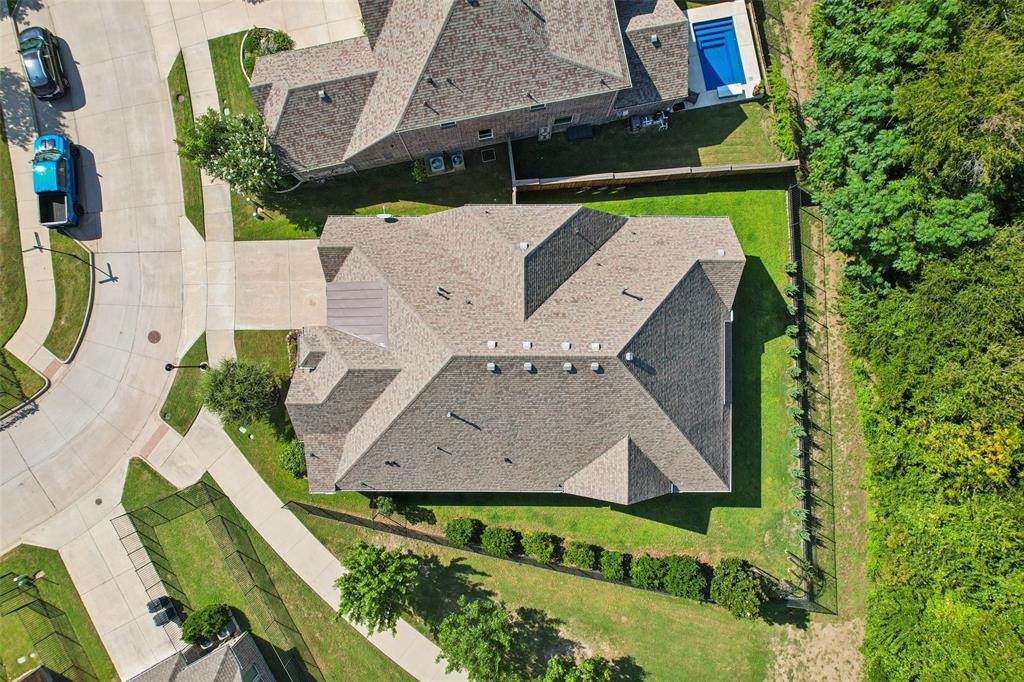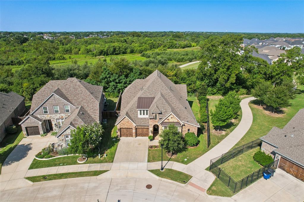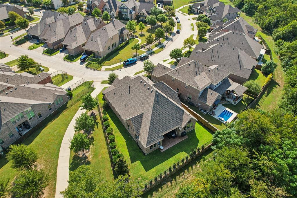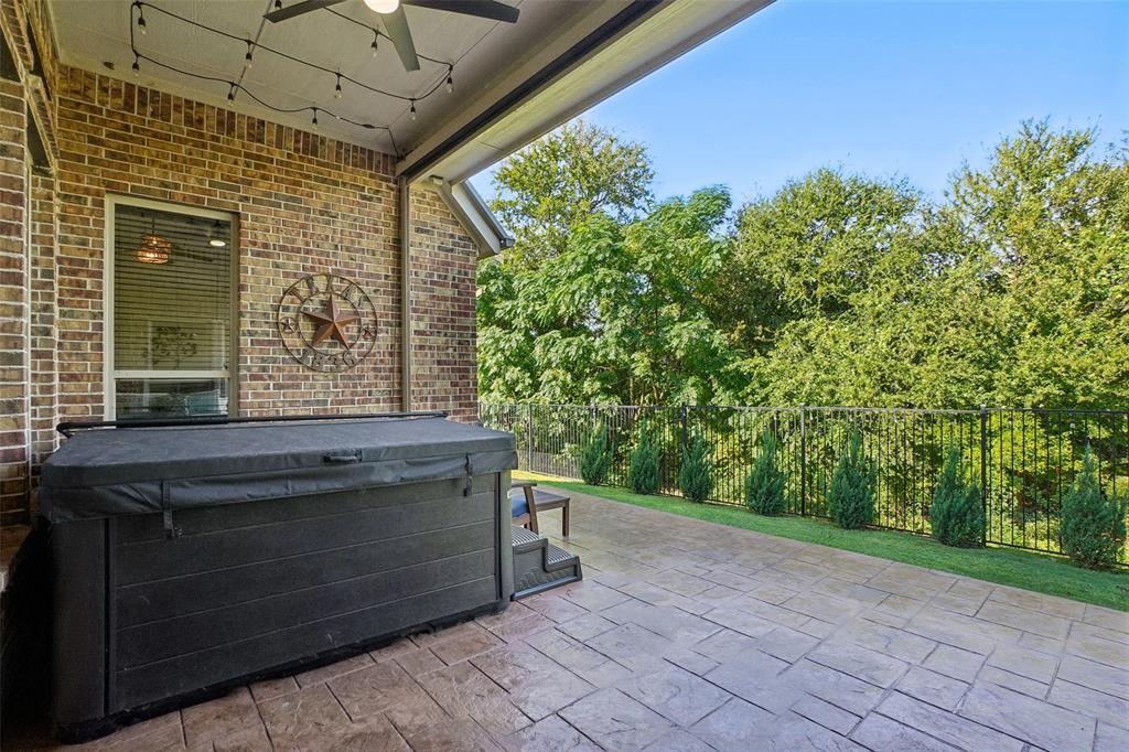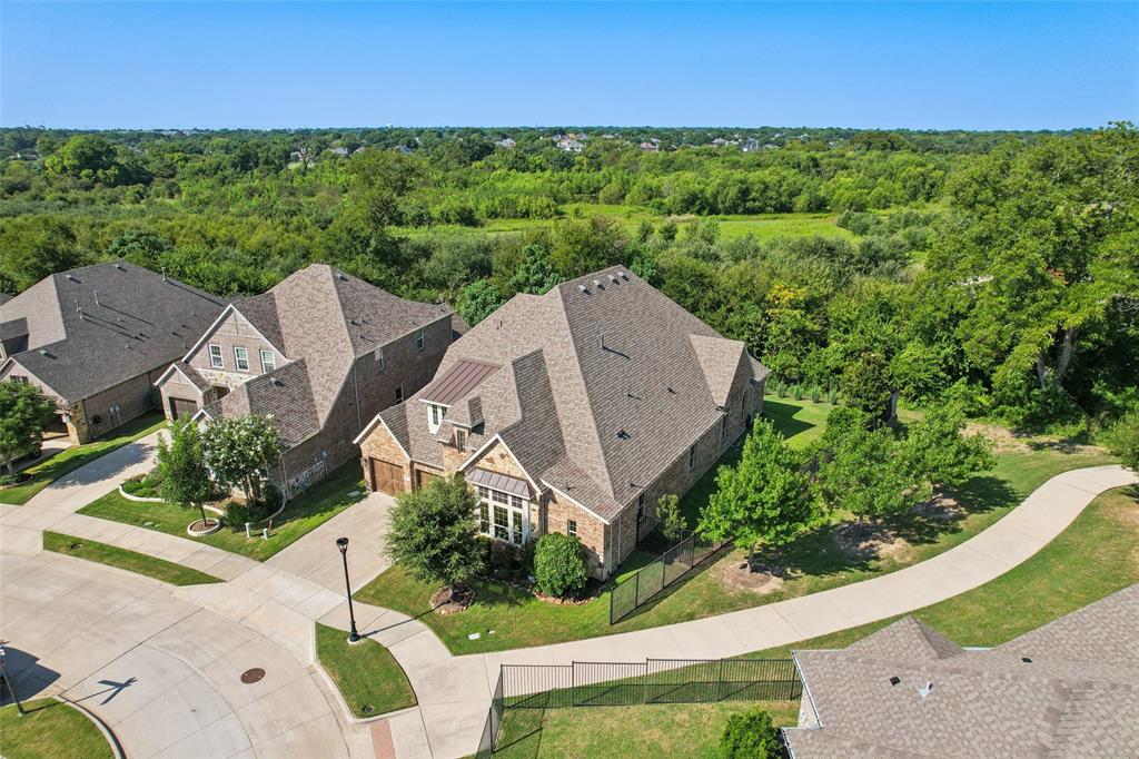 Tucked away in one of Allen's most convenient and desirable neighborhoods, this beautifully upgraded home offers privacy, space, and elegant design throughout. With no rear neighbors, you'll enjoy peaceful wooded views and direct access to green space and nearby trails—only one neighboring home means unmatched tranquility! Be wowed as you step into the beautifully open layout highlighted by archway accents throughout, a soaring floor-to-ceiling fireplace with a custom built-in bookcase, and an abundance of natural light. The huge kitchen island, extensive cabinetry, and modern layout make this home an entertainer’s dream. You'll love the home office, adorned with french doors and a stunning arched transom window, overlooking the scenic backyard. The private primary suite offers views of the backyard, sitting area, and a massive bathroom with a spacious shower, huge linen closet and the walk-in closet connects directly to the laundry room for ultimate convenience. 3 additional bedrooms are to the front of the home, one with a private ensuite, while the other two share a J&J bath. Outside, the repaved patio is hot tub-ready, perfect for relaxing evenings under the stars and complete with a motorized screen to shield from sun or rain.. The upstairs loft adds even more versatile living space and features a full attic door for easy access to floored storage. The 3 car garage offers additional storage with floor to ceiling cabinetry.