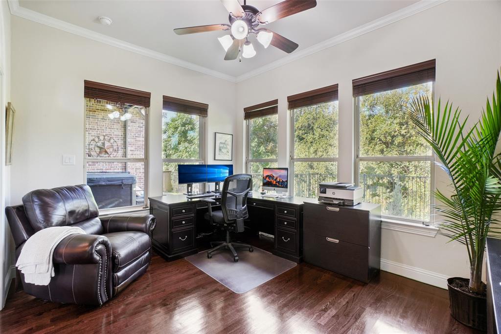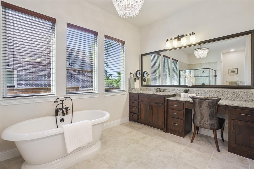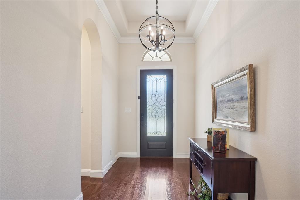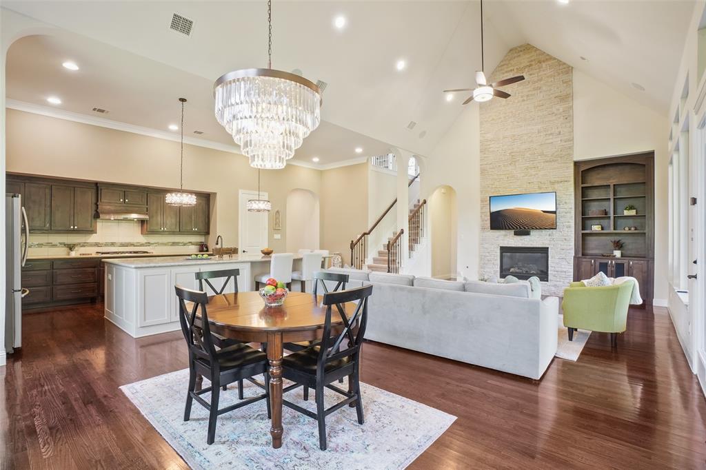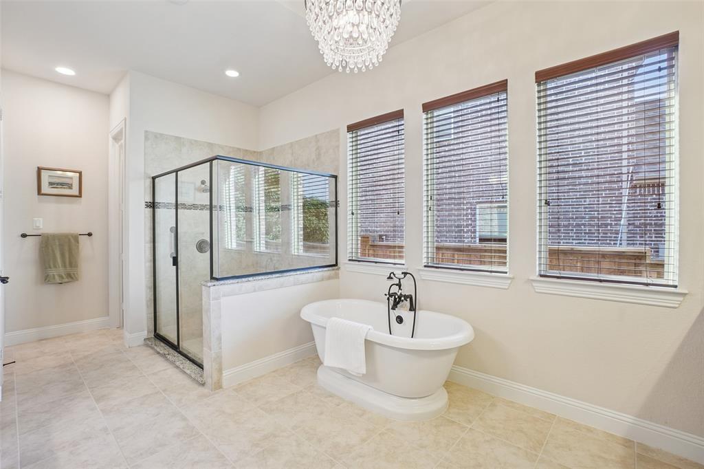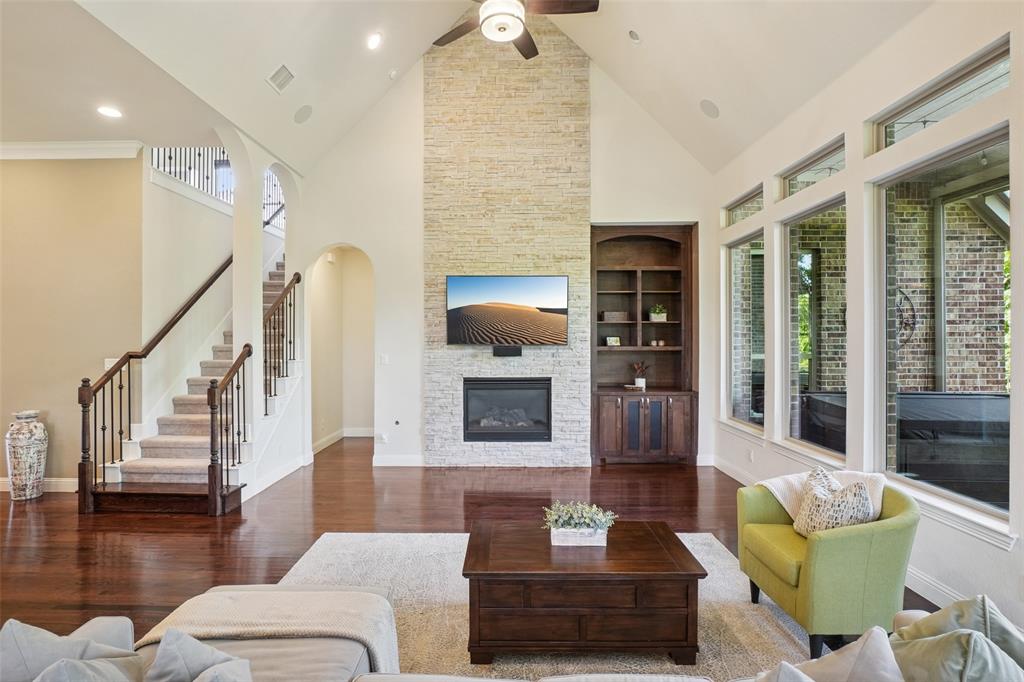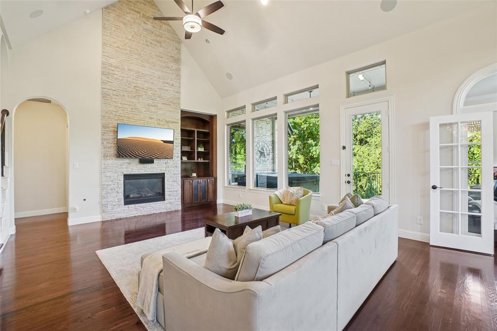 Tucked away in one of Allen's most convenient and desirable neighborhoods, this beautifully upgraded home offers privacy, space, and elegant design throughout. With no rear neighbors, you'll enjoy peaceful wooded views and direct access to green space and nearby trails—only one neighboring home means unmatched tranquility! Be wowed as you step into the beautifully open layout highlighted by archway accents throughout, a soaring floor-to-ceiling fireplace with a custom built-in bookcase, and an abundance of natural light. The huge kitchen island, extensive cabinetry, and modern layout make this home an entertainer’s dream. You'll love the home office, adorned with french doors and a stunning arched transom window, overlooking the scenic backyard. The private primary suite offers views of the backyard, sitting area, and a massive bathroom with a spacious shower, huge linen closet and the walk-in closet connects directly to the laundry room for ultimate convenience. 3 additional bedrooms are to the front of the home, one with a private ensuite, while the other two share a J&J bath. Outside, the repaved patio is hot tub-ready, perfect for relaxing evenings under the stars and complete with a motorized screen to shield from sun or rain.. The upstairs loft adds even more versatile living space and features a full attic door for easy access to floored storage. The 3 car garage offers additional storage with floor to ceiling cabinetry.