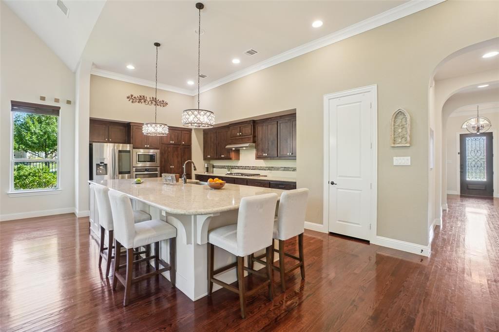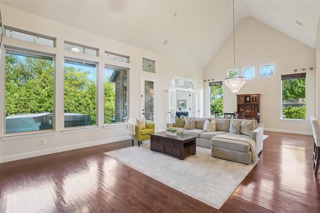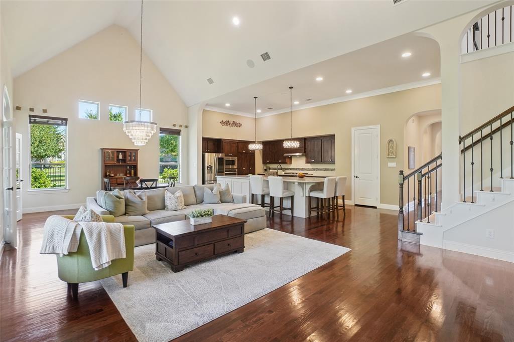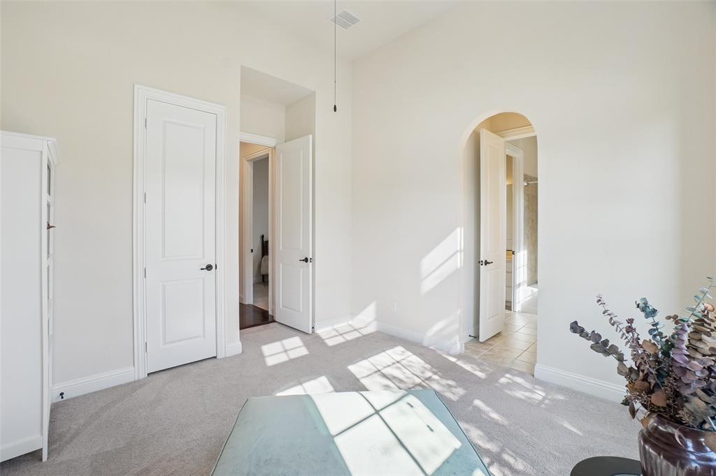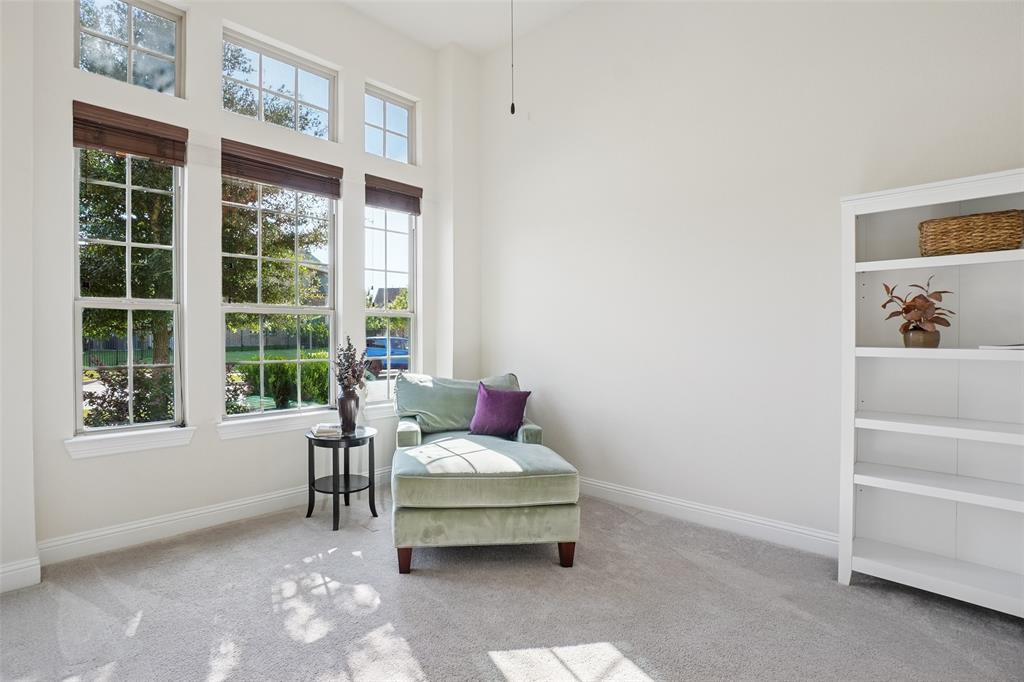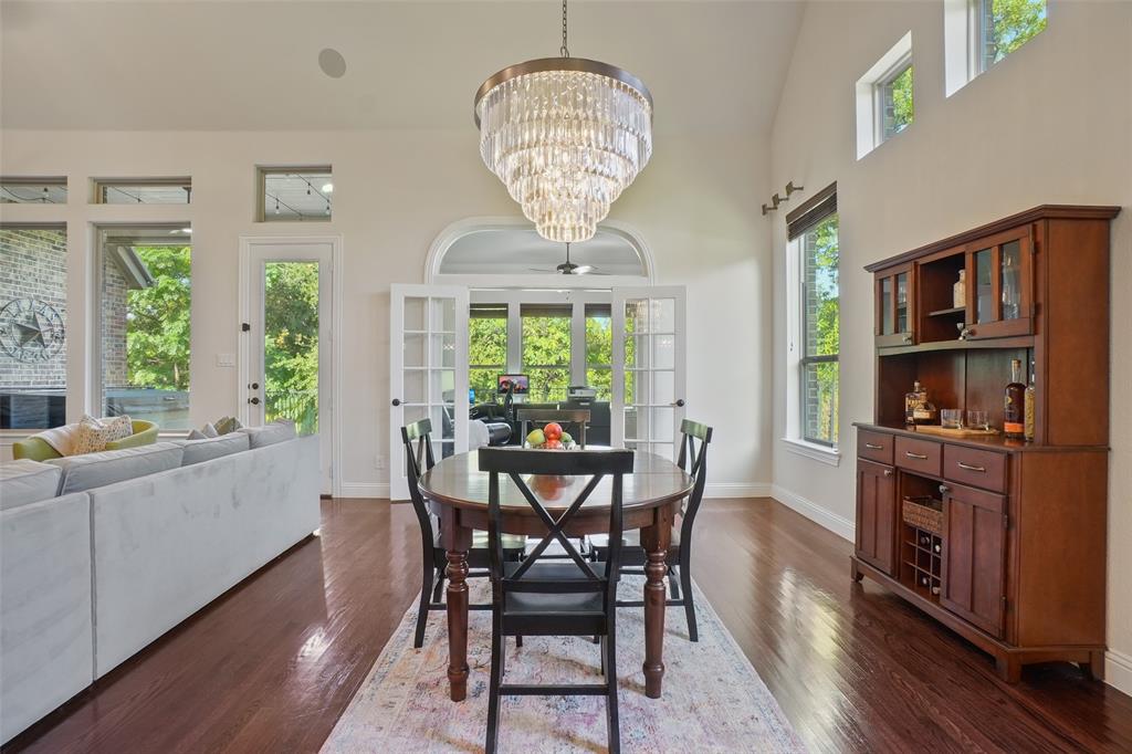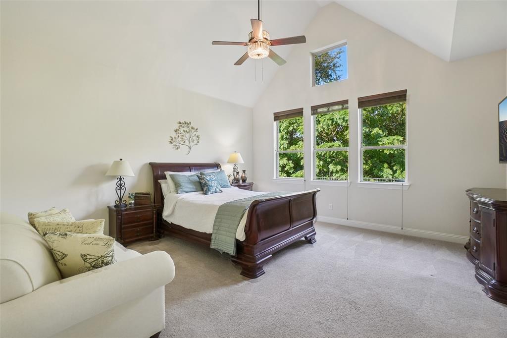 Tucked away in one of Allen's most convenient and desirable neighborhoods, this beautifully upgraded home offers privacy, space, and elegant design throughout. With no rear neighbors, you'll enjoy peaceful wooded views and direct access to green space and nearby trails—only one neighboring home means unmatched tranquility! Be wowed as you step into the beautifully open layout highlighted by archway accents throughout, a soaring floor-to-ceiling fireplace with a custom built-in bookcase, and an abundance of natural light. The huge kitchen island, extensive cabinetry, and modern layout make this home an entertainer’s dream. You'll love the home office, adorned with french doors and a stunning arched transom window, overlooking the scenic backyard. The private primary suite offers views of the backyard, sitting area, and a massive bathroom with a spacious shower, huge linen closet and the walk-in closet connects directly to the laundry room for ultimate convenience. 3 additional bedrooms are to the front of the home, one with a private ensuite, while the other two share a J&J bath. Outside, the repaved patio is hot tub-ready, perfect for relaxing evenings under the stars and complete with a motorized screen to shield from sun or rain.. The upstairs loft adds even more versatile living space and features a full attic door for easy access to floored storage. The 3 car garage offers additional storage with floor to ceiling cabinetry.
