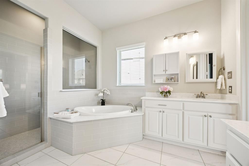 The primary suite offers a private sanctuary, complete with a luxurious bath featuring dual sinks, a soaking tub, a separate walk-in shower, and a spacious walk-in closet. Secondary bedrooms provide flexibility for guests, family, or work-from-home needs.