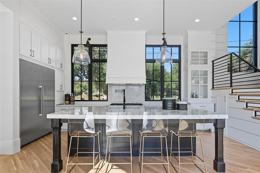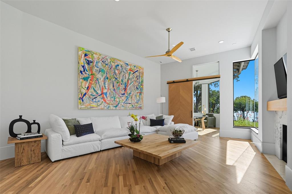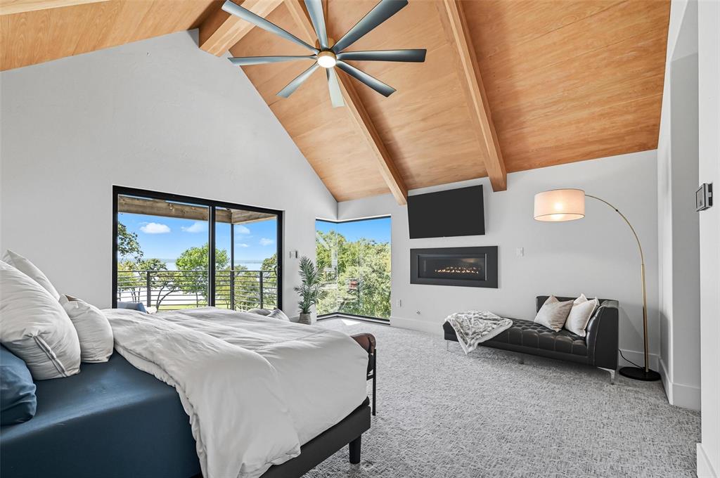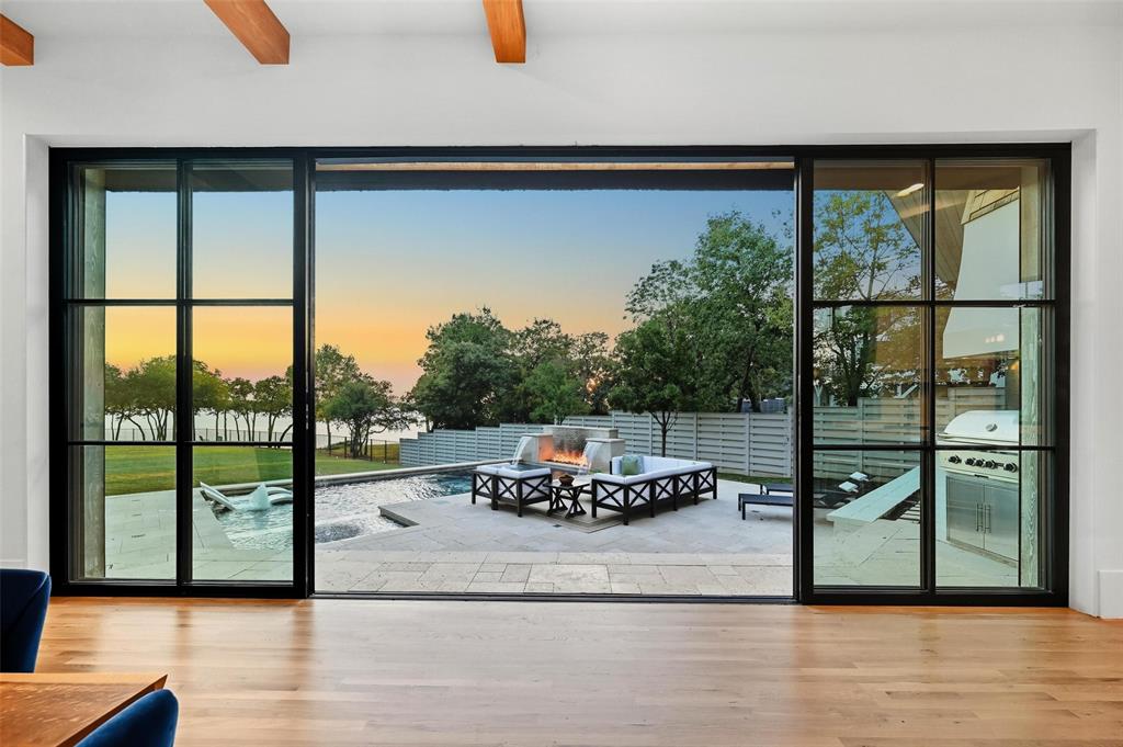 This 4bed, 5bath fully automated, smart home blends modern elegance with lakefront charm, featuring expansive open-concept living, vaulted ceilings, designer finishes, and fully expanding glass pocket doors framing panoramic lake views including a custom pool, spa and decking designed by award winning design firm, Claffey Pools. This is an entertainers paradise! Each bedroom has their own private ensuite bathroom, including an exclusive mother-in-law suite. The private half-acre lot provides endless opportunities for outdoor living—from entertaining lakeside, launching water adventures, or relaxing under the breathtaking Texas sunsets 365 days a year.