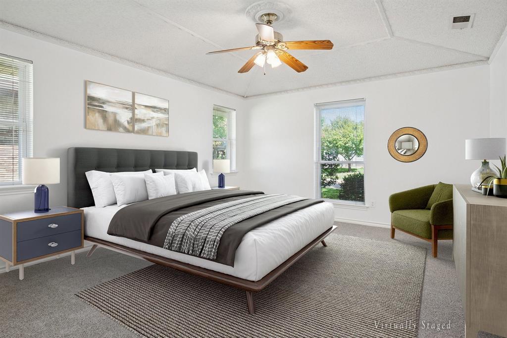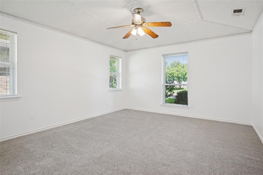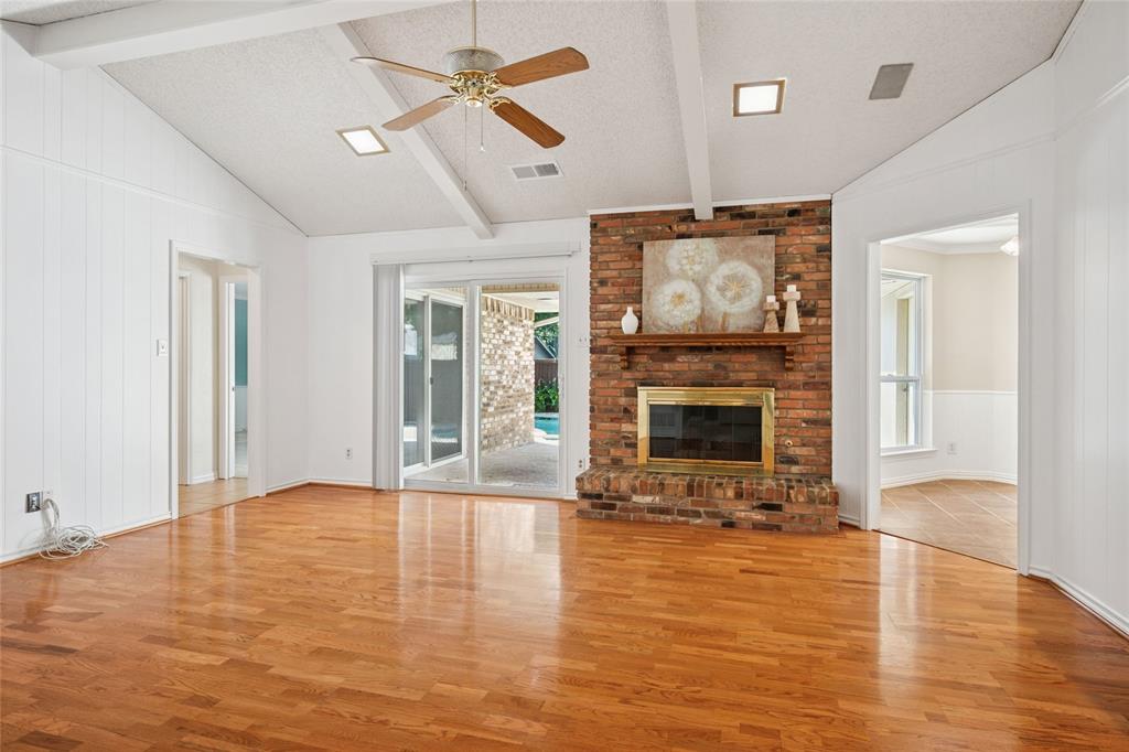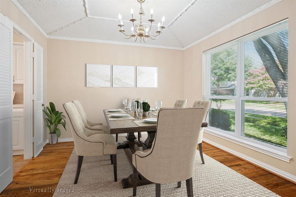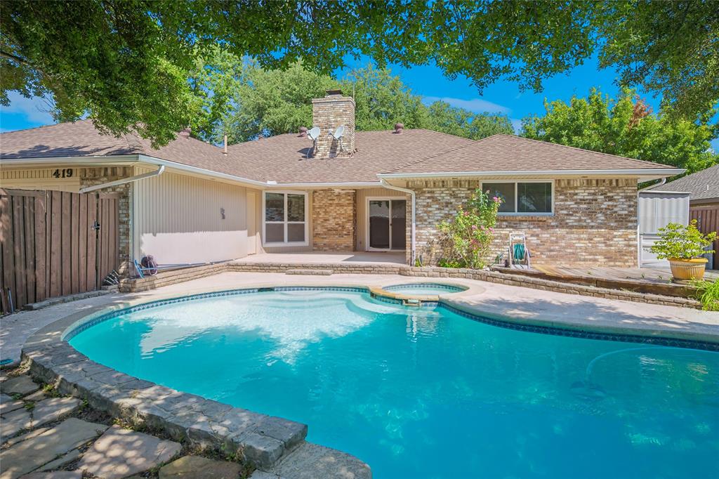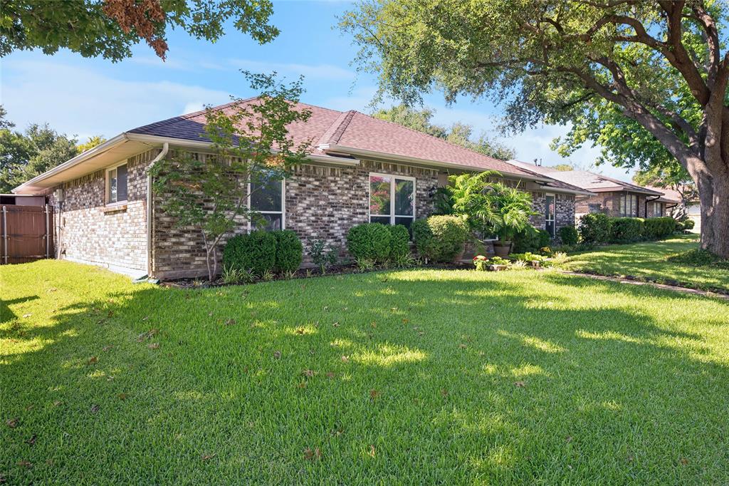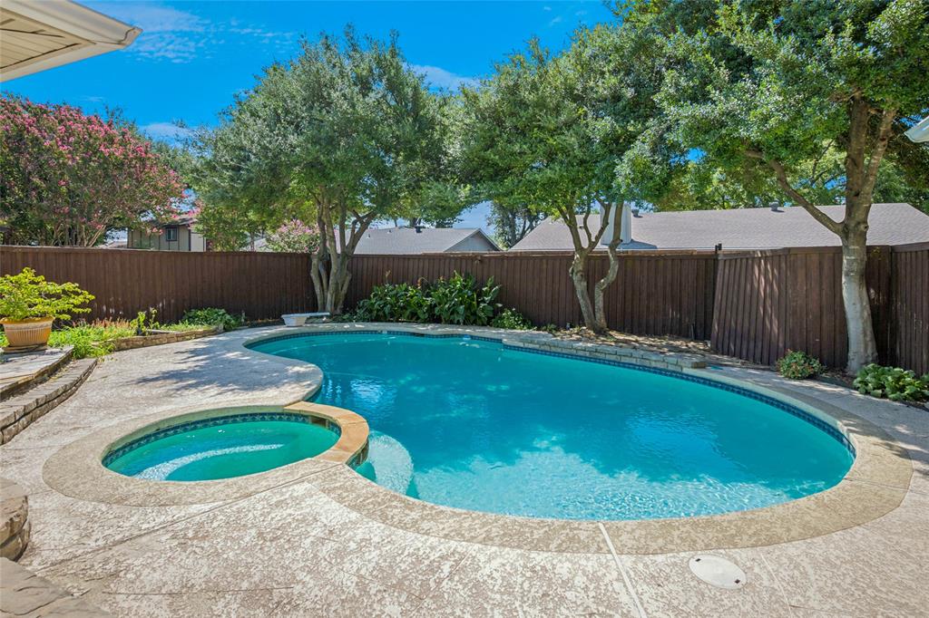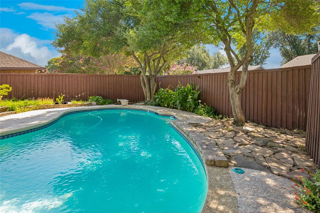 Beautiful 4-bed home with refreshing pool in West Richardson! Walk up on a lush front yard and expansive oak tree that sweeps the yard in shade. Inside, enjoy vaulted ceilings in a roomy and inviting layout. Kitchen features pull out drawers, a convection oven, and a clean timeless white aesthetic that connects to both the formal dining room and a breakfast area with pool views. Spacious open family room makes entertaining easy year-round & features an earthy brick fireplace & surround sound speakers. The split-bedroom layout includes a large primary suite with a fully updated ensuite bath (2022) showcasing charcoal granite counters, dual walk-in closets, and a pebble stone shower floor that is sure to please. Oversized 2nd primary bedroom features vaulted ceilings and opens to the covered patio & pool. The hall bath connects privately to another bedroom. Enjoy peace of mind with energy efficient double pane windows & cast iron pipes replaced with PVC under house. Want more? Canon ball into the inground pool in this spectacular shaded backyard. BBQ’s and pool parties come easy with this aesthetically pleasing space wrapped in a board on board wood fence. Sprinkler system makes yard maintenance light work. Zoned for sought-after Pearce HS and minutes from UT Dallas, parks, and dining—make this move-in-ready home yours before the holidays!