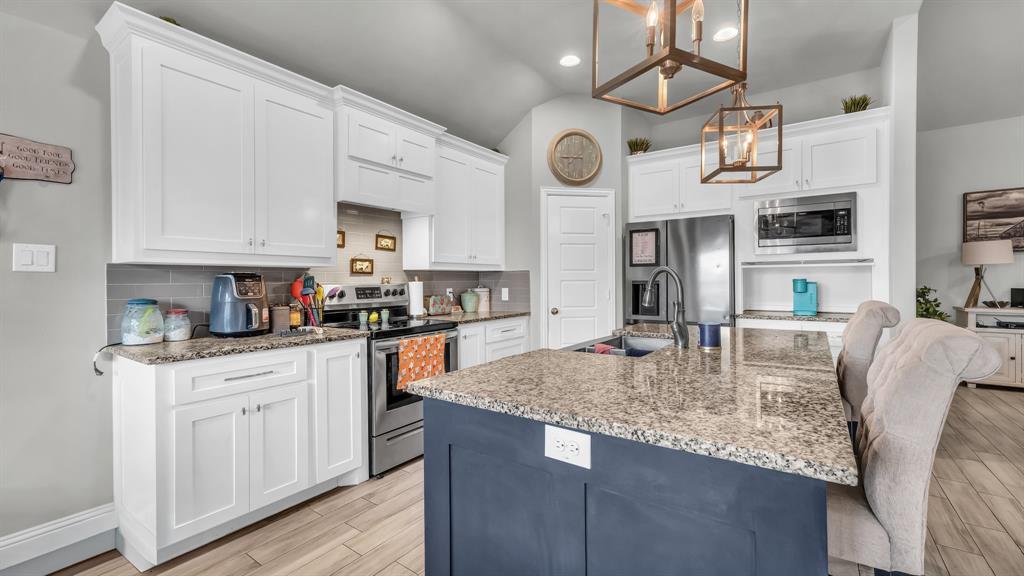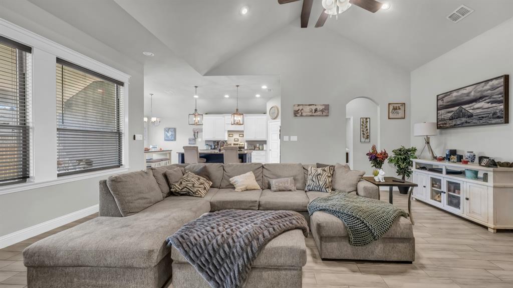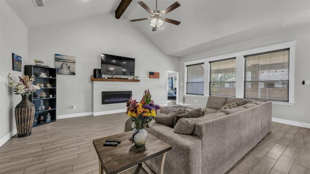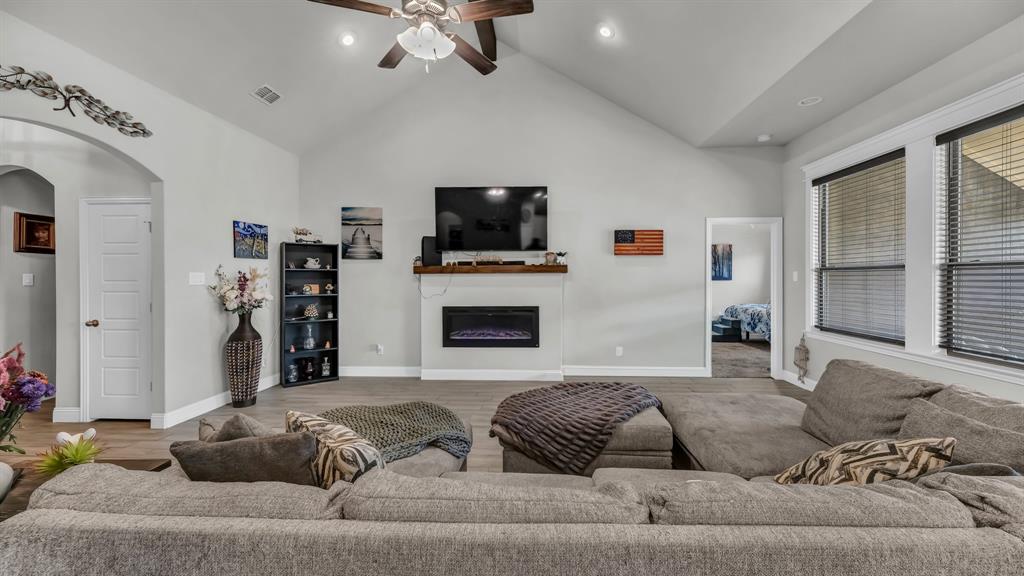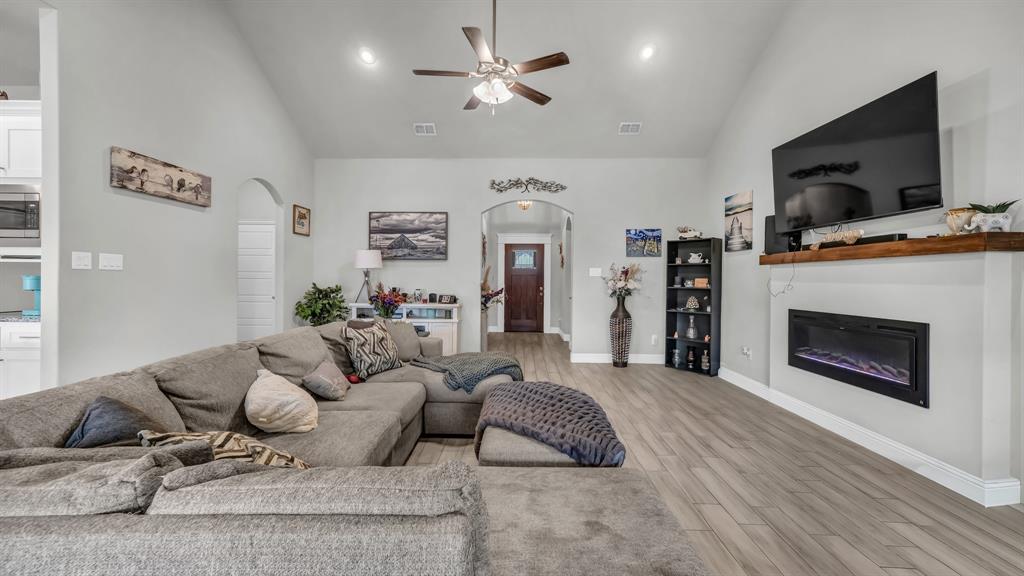 Beautiful 4-bedroom, 2-bathroom home situated on a corner lot in Springtown. This home offers an open floor plan with arched entryways, a cedar beam in the living room, and an electric fireplace. The kitchen features granite countertops throughout, a dedicated coffee nook, and the primary bathroom includes both quartz and granite finishes.