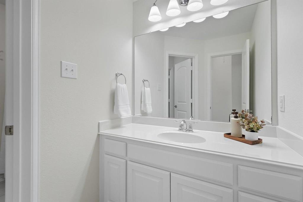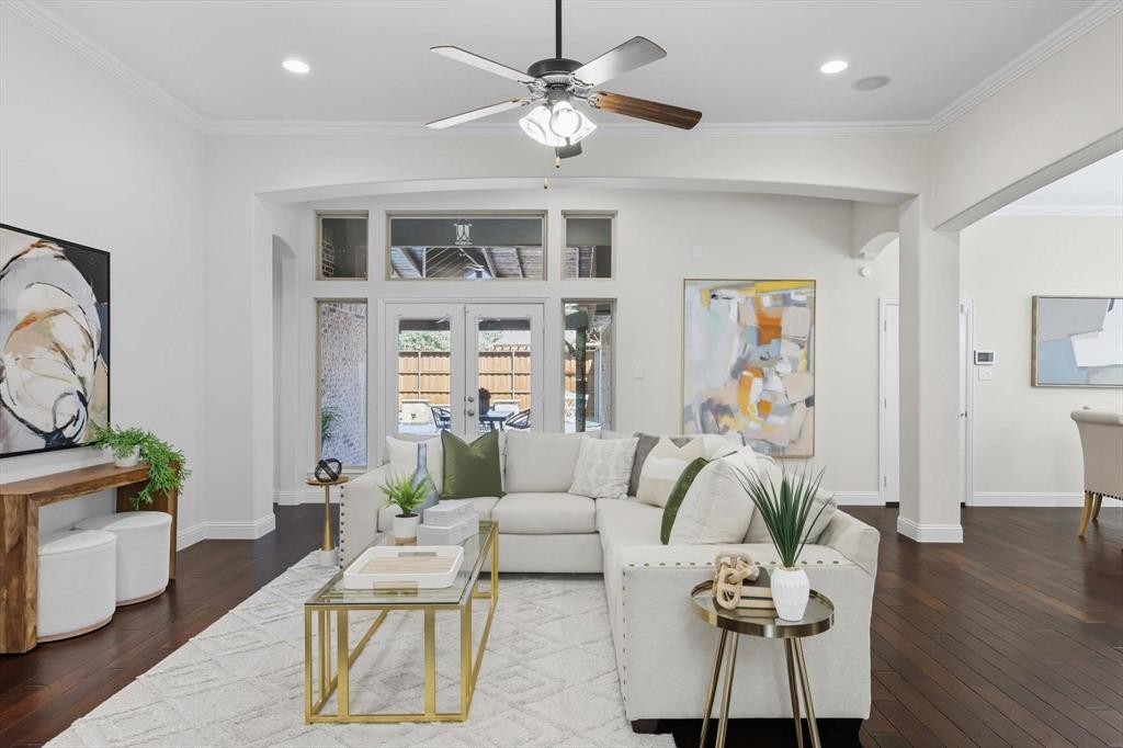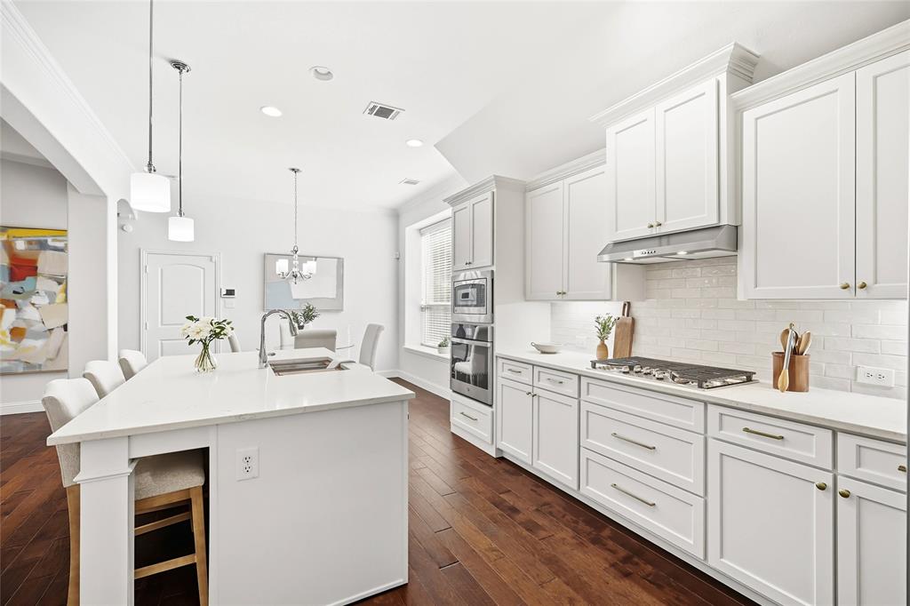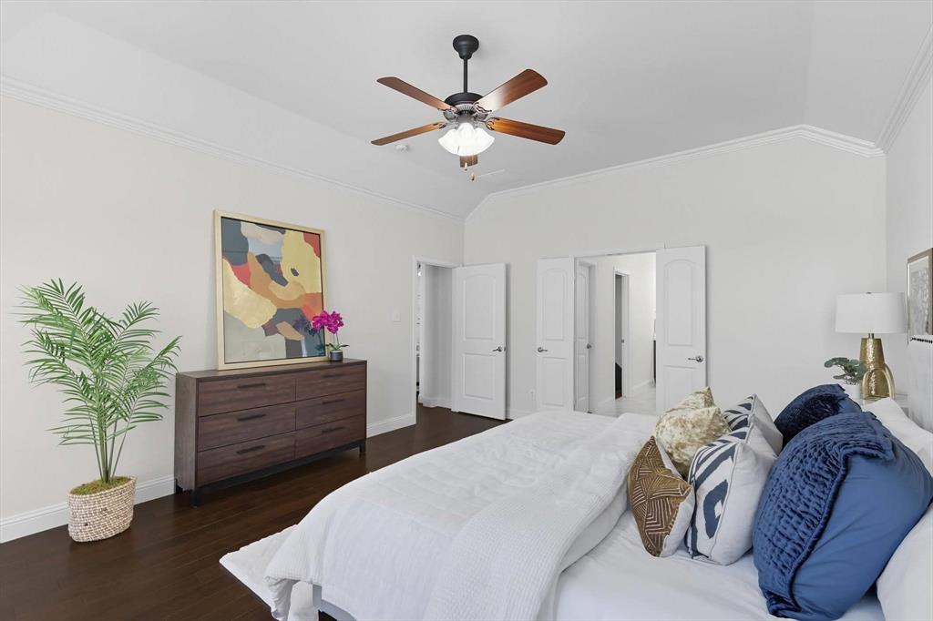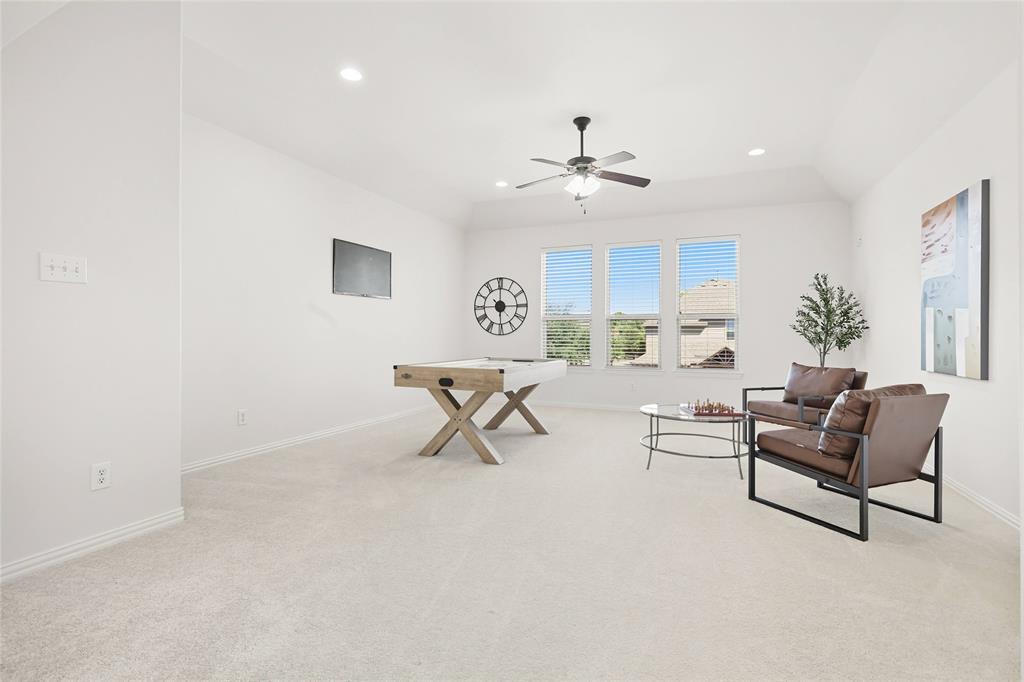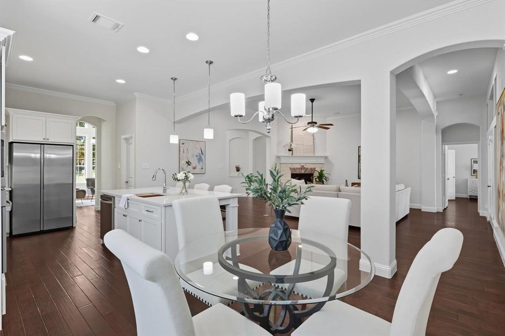 Beautifully Updated Home with Pool & Outdoor Retreat in a Prime Location. This stunning corner-lot home, across from scenic neighborhood trails, offers exceptional upgrades and timeless design throughout. With 4 bedrooms (2 downstairs), a dedicated office, and a charming front room featuring coffered walls and sunlit windows, the layout balances modern updates with family-friendly functionality. Step inside to find fresh interior paint throughout, new carpet, new hardwood floors in primary bedroom and stylishly updated main-floor bathrooms. The beautifully updated kitchen features refaced cabinets with maple doors and drawers, stunning new quartz countertops, a modern tile backsplash, and stylish new stainless-steel appliances - perfect for cooking and entertaining! The spacious living room, anchored by a stone fireplace, opens to the back patio and separates the primary suite from the rest of the home. The primary retreat offers a sitting area with pool views, and the master bath upgrades include new quartz countertops, sinks, faucets, lighting, mirrors, and frameless shower door. A second downstairs bedroom with an adjacent updated full bath provides flexibility for guests or multi generational living. Upstairs, a large game room connects to two generous bedrooms with great storage and a J&J bath. The private backyard is designed for relaxing or entertaining. Double glass doors lead to a cedar-covered patio, sparkling pool with water features, a sun shelf, and a manicured lawn for play. A removable patio safety fence adds peace of mind. Additional upgrades include whole home air purification systems (Aerus Air Scrubber), recent AC unit replacement (2022 and 2024), garage storage, whole-home surge protection and L2 EV charger outlet. Located in a welcoming neighborhood, you’ll enjoy community charm with unbeatable convenience. Just minutes from top-rated Frisco ISD schools, Whole Foods, Costco, HEB, dining, and more.