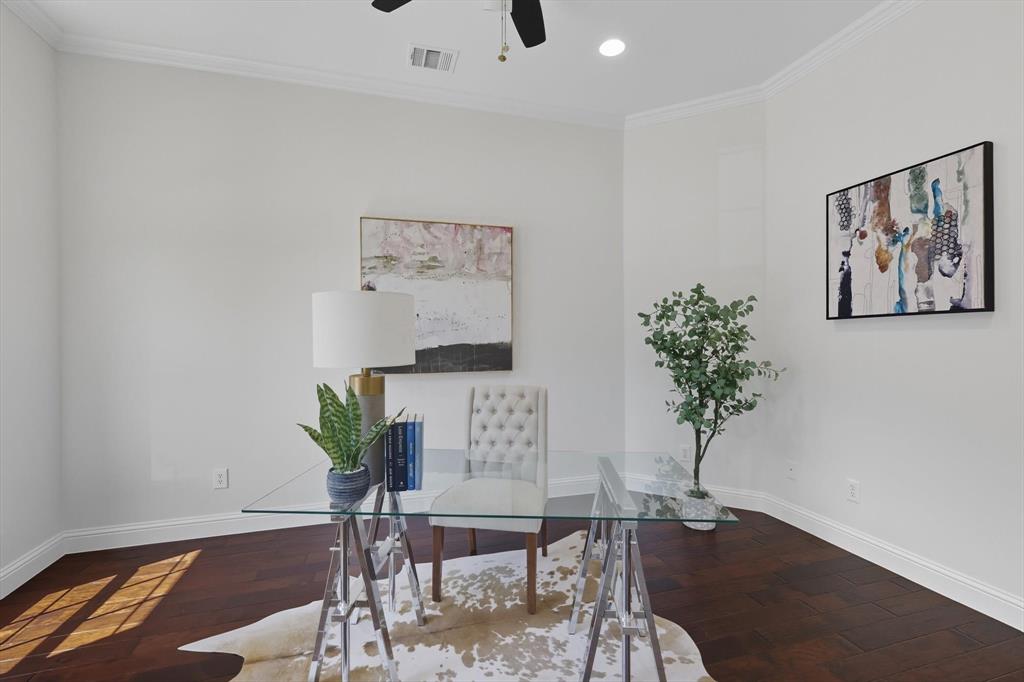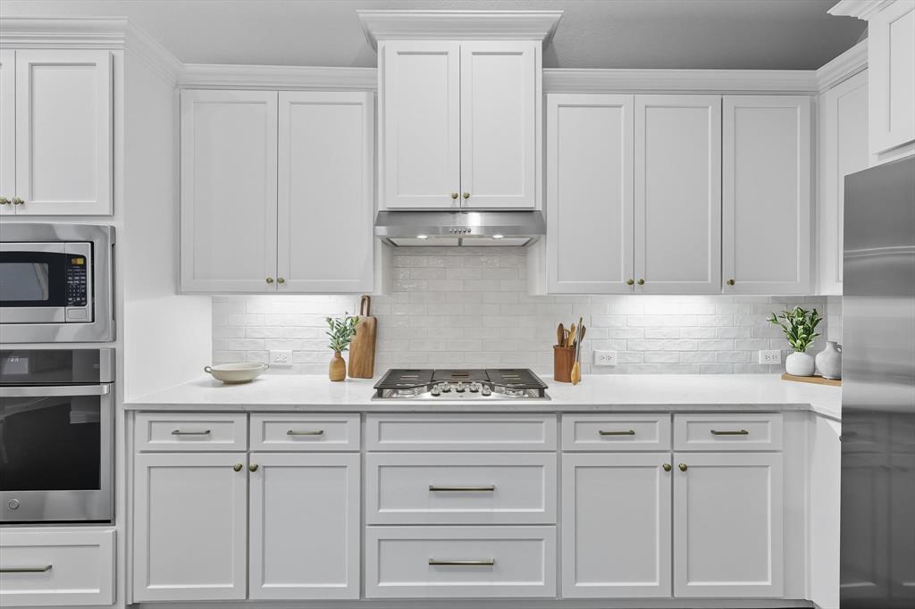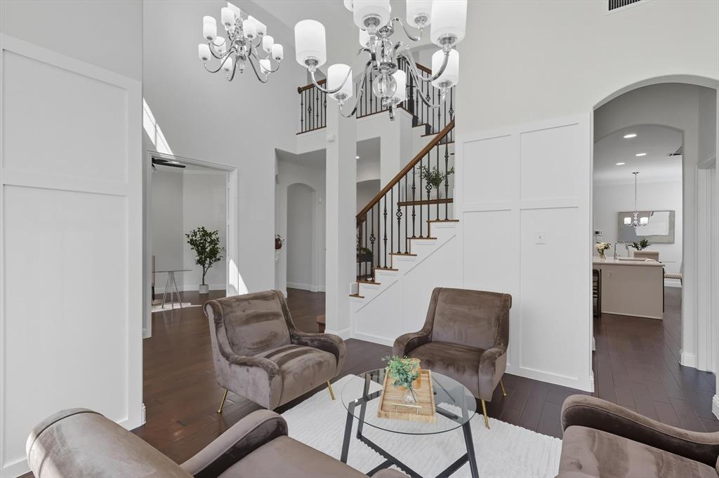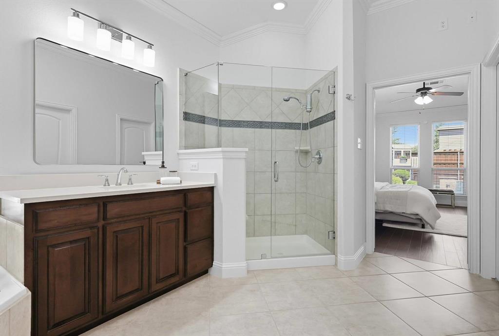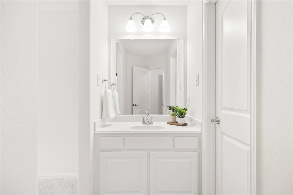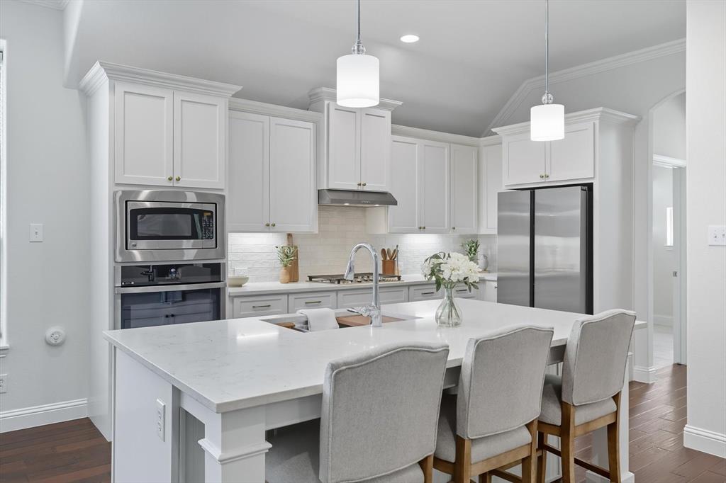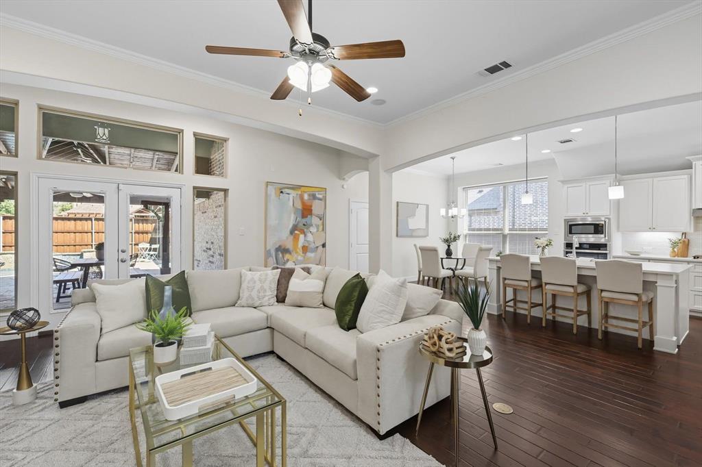Beautifully Updated Home with Pool & Outdoor Retreat in a Prime Location. This stunning corner-lot home, across from scenic neighborhood trails, offers exceptional upgrades and timeless design throughout. With 4 bedrooms (2 downstairs), a dedicated office, and a charming front room featuring coffered walls and sunlit windows, the layout balances modern updates with family-friendly functionality. Step inside to find fresh interior paint throughout, new carpet, new hardwood floors in primary bedroom and stylishly updated main-floor bathrooms. The beautifully updated kitchen features refaced cabinets with maple doors and drawers, stunning new quartz countertops, a modern tile backsplash, and stylish new stainless-steel appliances - perfect for cooking and entertaining! The spacious living room, anchored by a stone fireplace, opens to the back patio and separates the primary suite from the rest of the home. The primary retreat offers a sitting area with pool views, and the master bath upgrades include new quartz countertops, sinks, faucets, lighting, mirrors, and frameless shower door. A second downstairs bedroom with an adjacent updated full bath provides flexibility for guests or multi generational living. Upstairs, a large game room connects to two generous bedrooms with great storage and a J&J bath. The private backyard is designed for relaxing or entertaining. Double glass doors lead to a cedar-covered patio, sparkling pool with water features, a sun shelf, and a manicured lawn for play. A removable patio safety fence adds peace of mind. Additional upgrades include whole home air purification systems (Aerus Air Scrubber), recent AC unit replacement (2022 and 2024), garage storage, whole-home surge protection and L2 EV charger outlet. Located in a welcoming neighborhood, you’ll enjoy community charm with unbeatable convenience. Just minutes from top-rated Frisco ISD schools, Whole Foods, Costco, HEB, dining, and more.