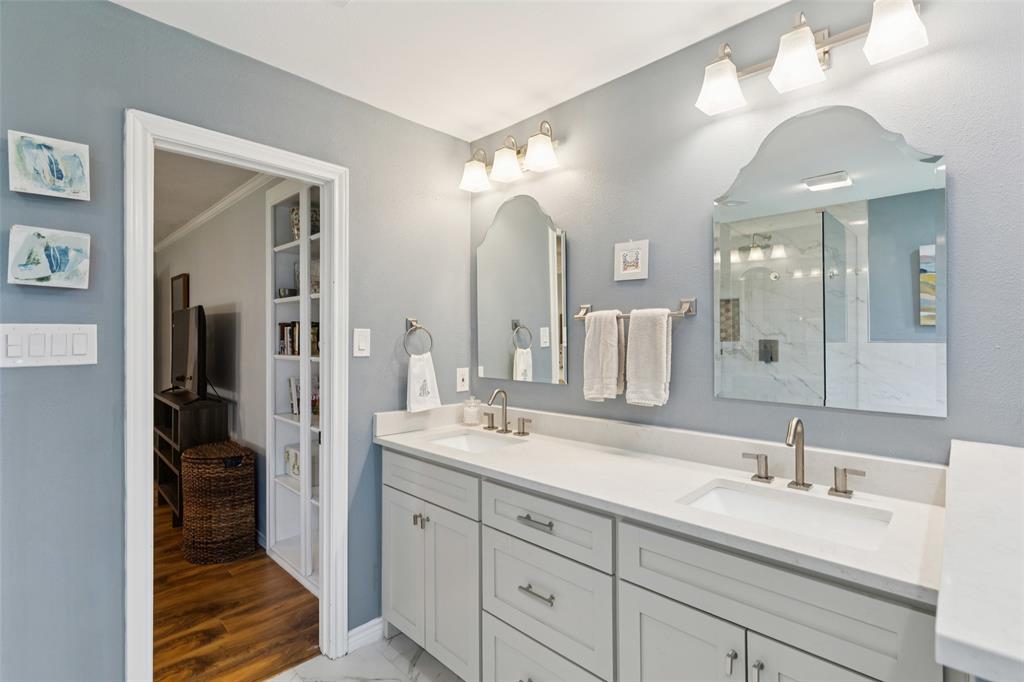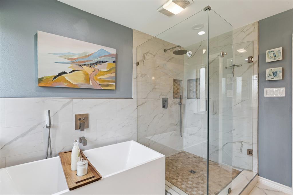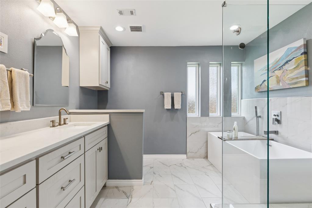 Welcome to this beautifully updated one-story ranch home, ideally situated on an interior lot located in desirable Richardson. This 3-bedroom, 2-bath gem features a flexible floor plan with two generous living areas — perfect for entertaining, relaxing, or converting one into a home office or 4th bedroom. Step inside to discover luxury vinyl plank flooring throughout — with no carpet anywhere — offering a clean, modern look that's both stylish and low-maintenance. The expansive primary suite is a true retreat, featuring a fully remodeled spa-like bathroom with dual vanities, a luxurious soaking tub, a separate glass-enclosed shower, and a custom walk-in closet. The secondary bathroom has also been thoughtfully updated with a dual-sink vanity and sleek glass shower doors. Outside, you’ll fall in love with the spacious, private backyard — large enough for a future pool — and ideal for outdoor entertaining. Enjoy a generous patio area, perfect for relaxing evenings, weekend BBQs, or gatherings with friends and family. This home comes with a long list of upgrades, including a newer roof with solar panels, energy-efficient Andersen windows, HVAC system replaced in 2025, ductwork replaced in 2024, fresh interior and exterior paint, a stained wood privacy fence, added crown molding, and so much more. You’ll also appreciate the dedicated laundry room, smart layout, and unbeatable location just minutes from major highways, shopping, dining, and top-rated schools. This move-in ready home offers the perfect combination of comfort, modern updates, and outdoor living — a rare find in today's market. Contact the listing agent for a full list of improvements and schedule your private tour today!