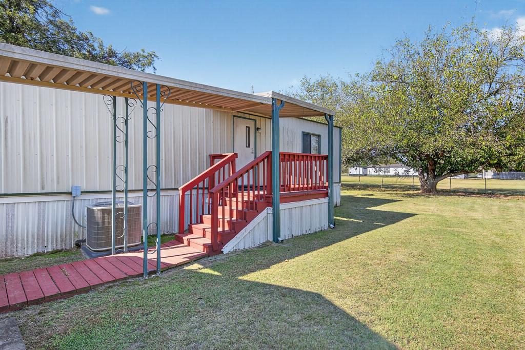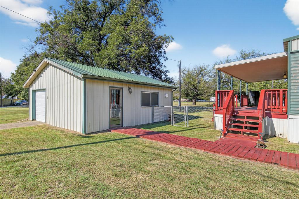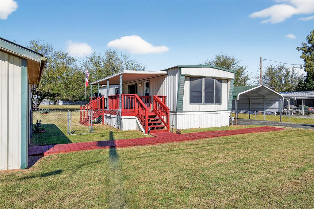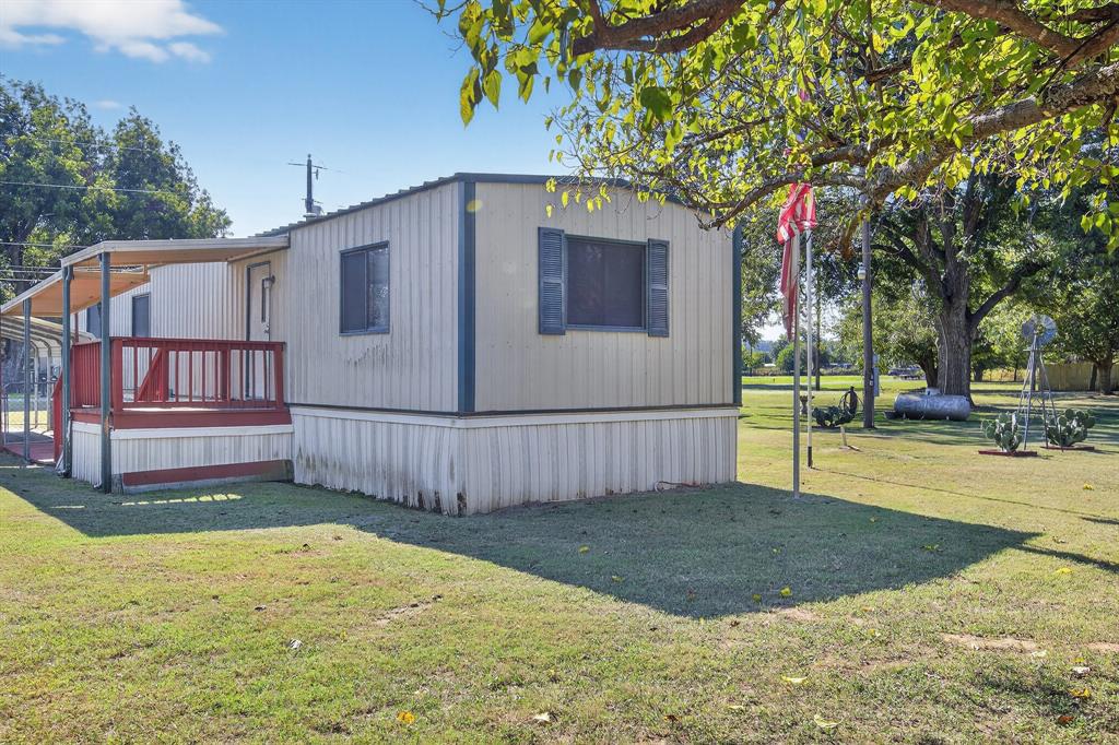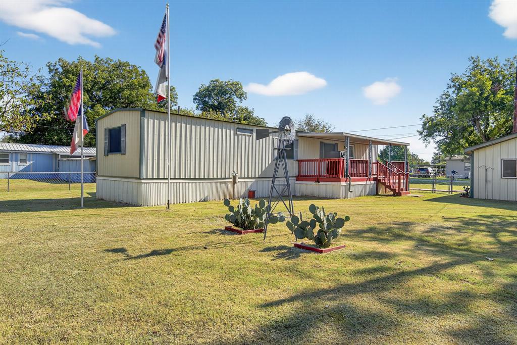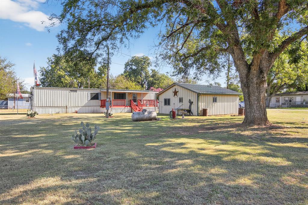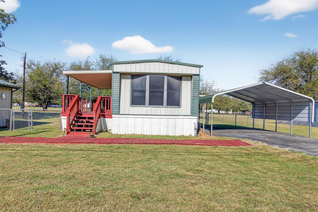 Video walk through available on YouTube! Singlewide on 3 lots for a total of .68 acres with a 20X20 shop and 2 car carport. Metal roof on both the home and shop, as well as all metal siding for low maintenance & longevity. Half of the shop is set up for hobbies, the other is a 1 car garage with garage door opener. Located on a beautiful street with great neighbors, this lot backs to the 4th Fairway of the golf course. Yard has been very well maintained. Large Pecan tree and large 30X12ft covered deck provide shade during the Texas summers. Inside, you'll find a cute kitchen with unique curved counter, dining space for 6, a double pantry and appliances included! Gas range is like new. No pets and no smoking, cute and clean! Come take a look!
