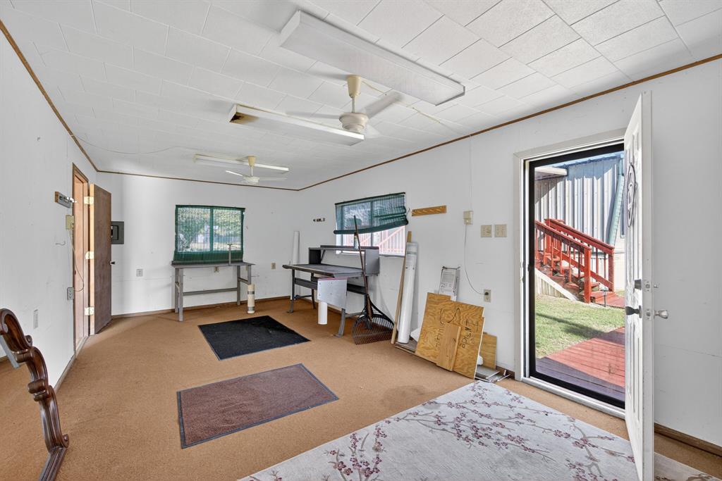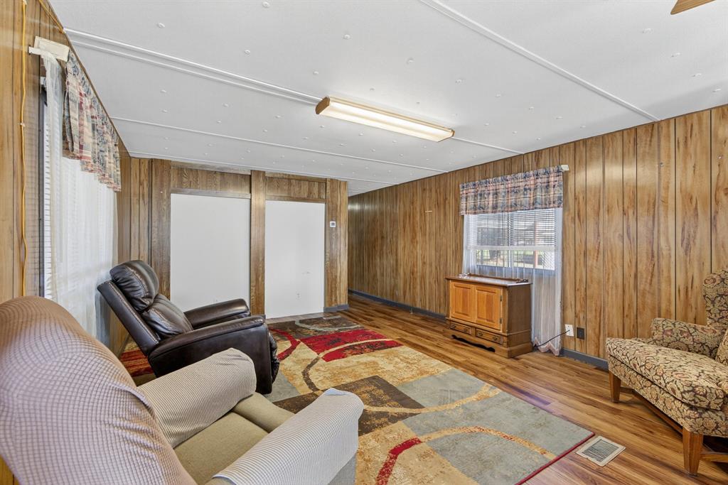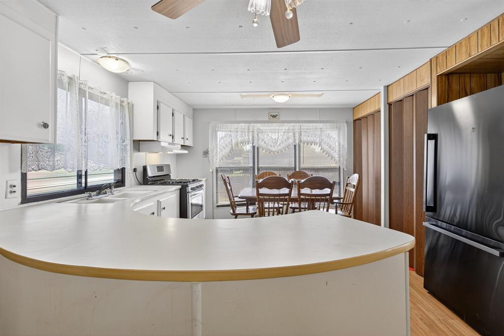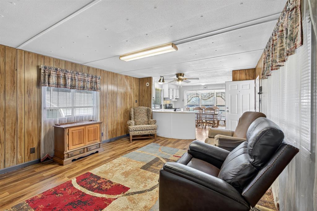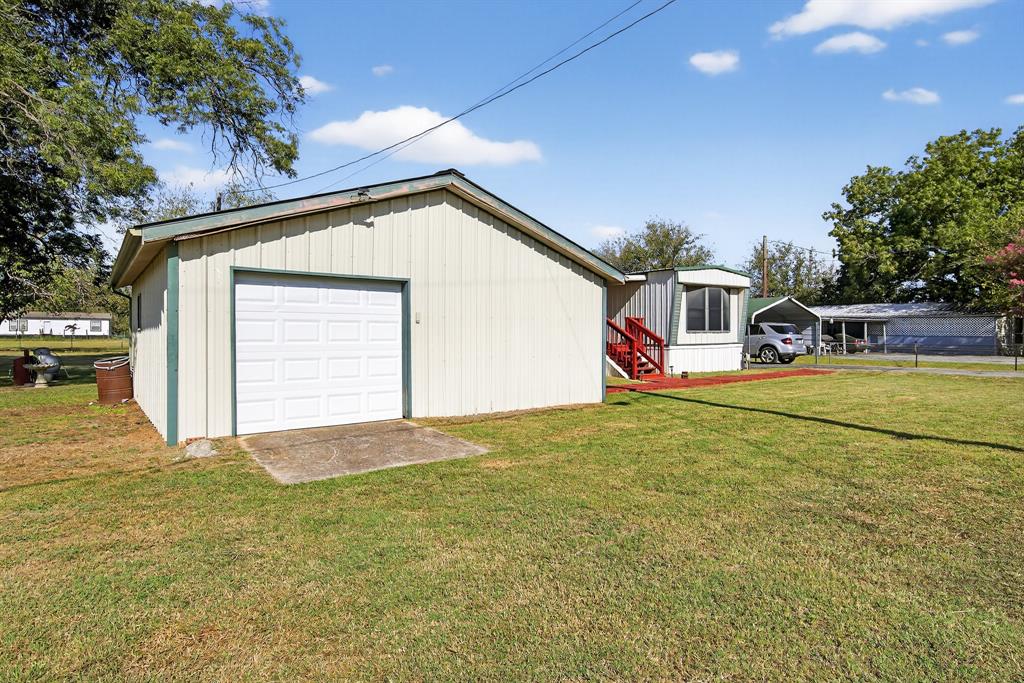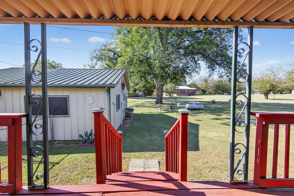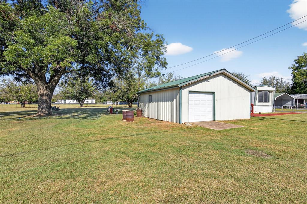 Video walk through available on YouTube! Singlewide on 3 lots for a total of .68 acres with a 20X20 shop and 2 car carport. Metal roof on both the home and shop, as well as all metal siding for low maintenance & longevity. Half of the shop is set up for hobbies, the other is a 1 car garage with garage door opener. Located on a beautiful street with great neighbors, this lot backs to the 4th Fairway of the golf course. Yard has been very well maintained. Large Pecan tree and large 30X12ft covered deck provide shade during the Texas summers. Inside, you'll find a cute kitchen with unique curved counter, dining space for 6, a double pantry and appliances included! Gas range is like new. No pets and no smoking, cute and clean! Come take a look!