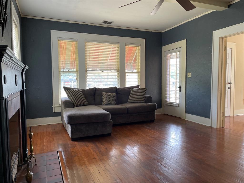Featuring built-ins, wood burning fireplace, hardwood floors, and plenty of windows for natural light.