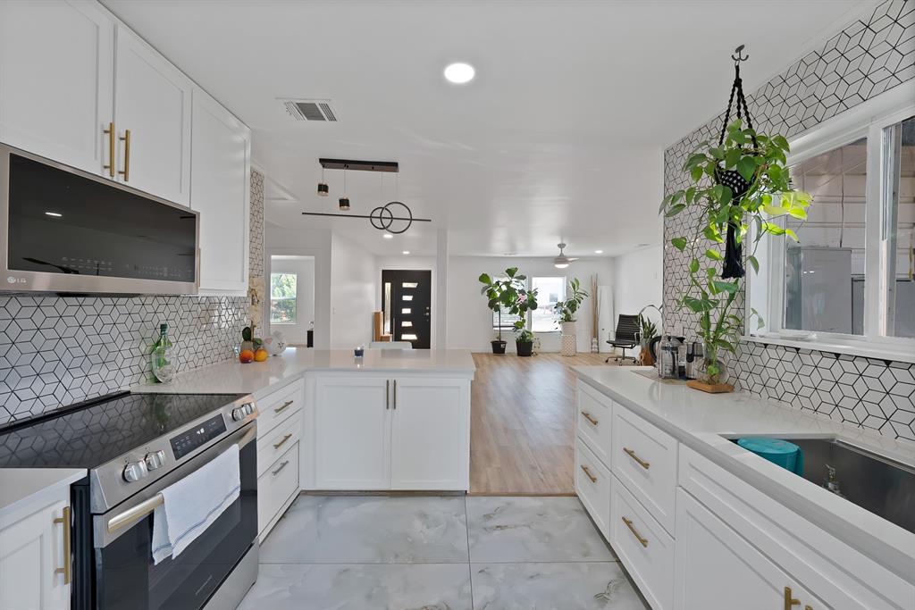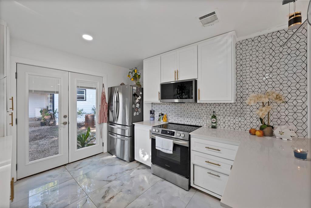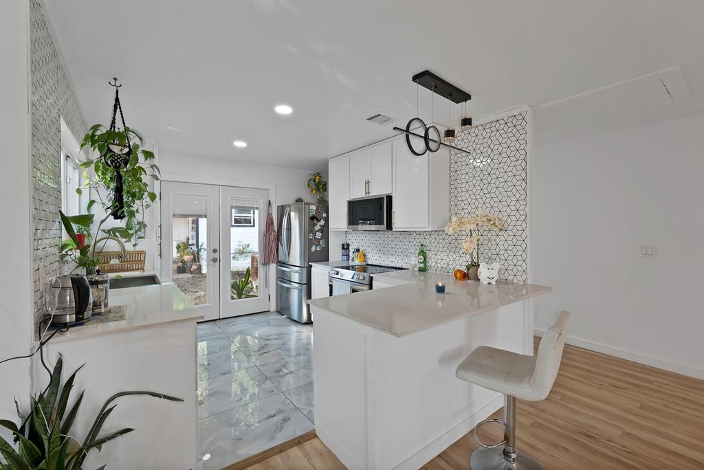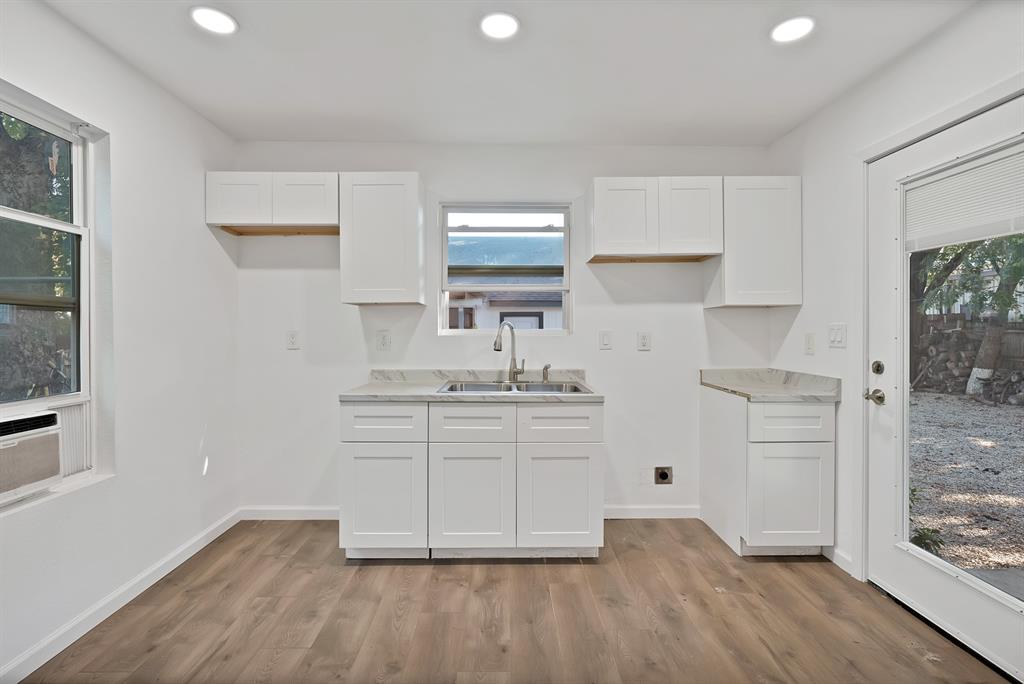 Need extra space for guests? The back In-Law suite provides private access, complete with its own kitchen, living area, new flooring, and a newly tiled walk-in shower.