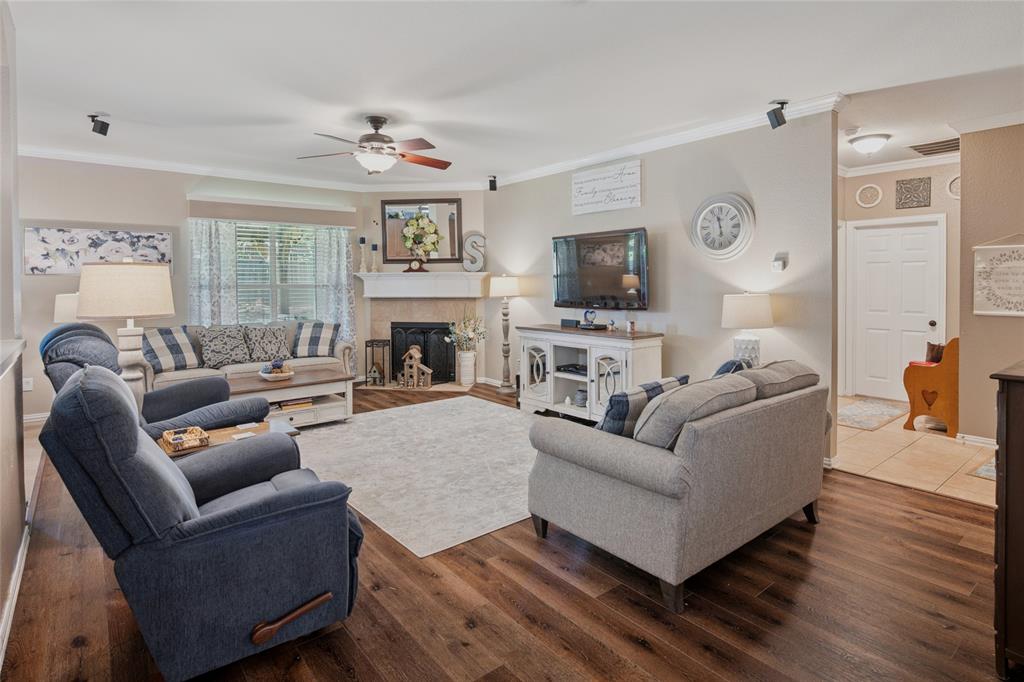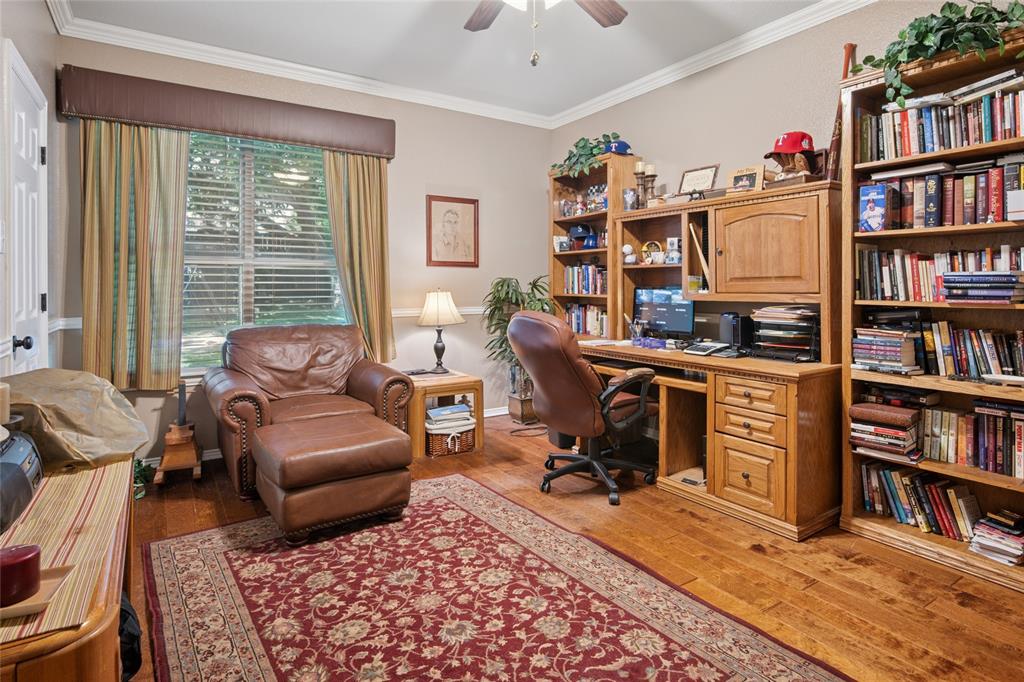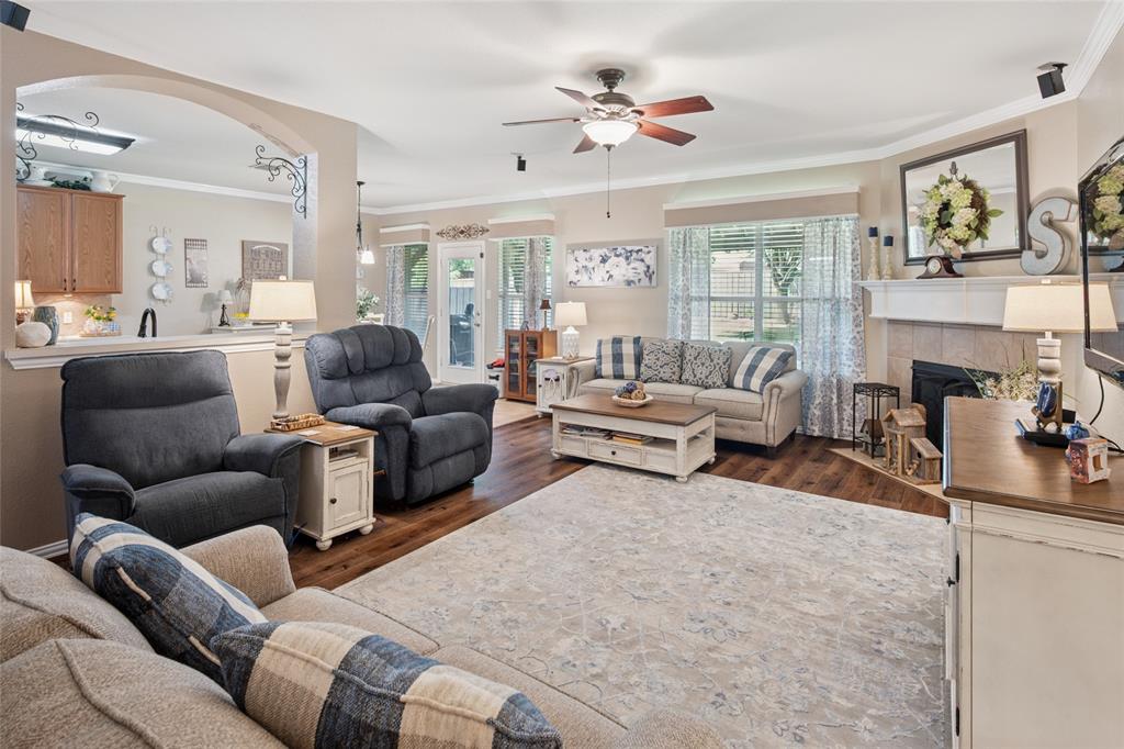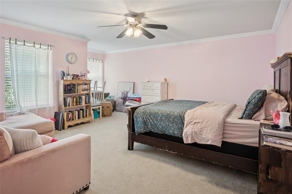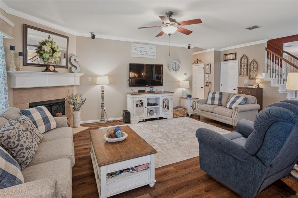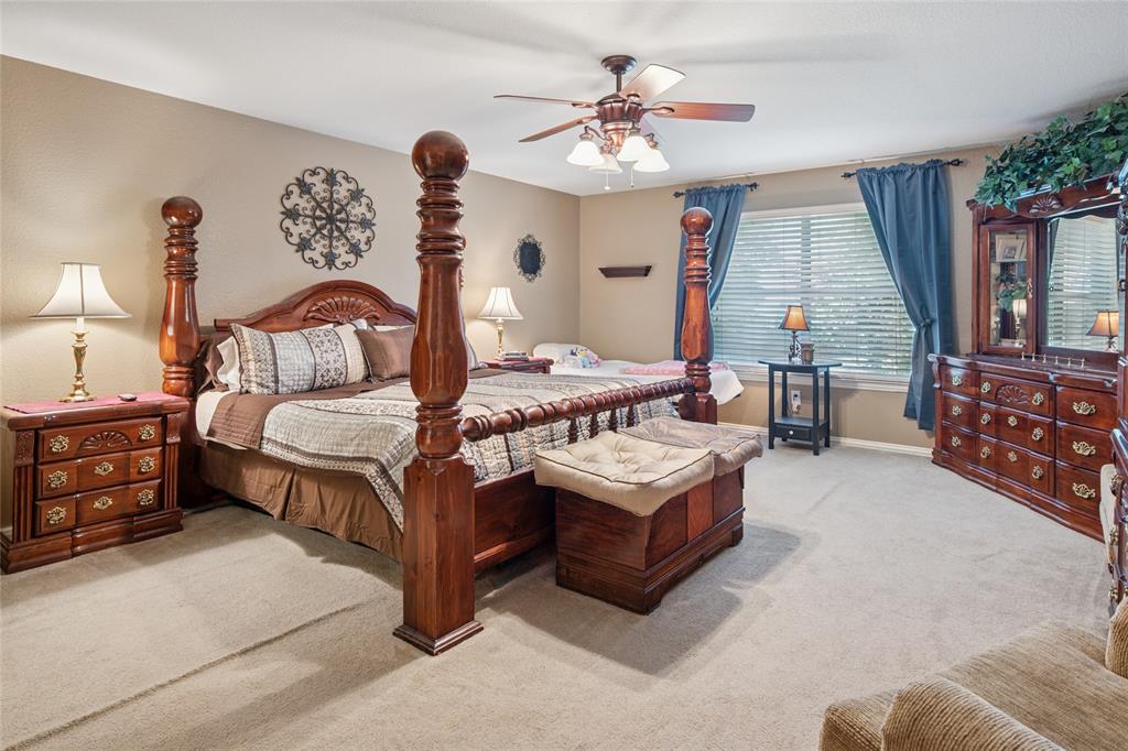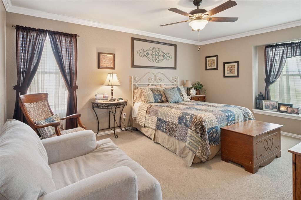 Welcome to this beautifully crafted Mercedes-built residence, designed with comfort, functionality, and room to grow. Every room in the home is generously sized and features walk-in closets, offering abundant storage throughout. The heart of the home is a well-appointed kitchen with an island, expansive walk-in pantry, and a large breakfast area perfect for family meals and gatherings. The kitchen flows seamlessly into the cozy den, complete with a welcoming fireplace. Downstairs includes a private bedroom ideal for guests or a mother-in-law suite. Upstairs, you'll find an oversized family room and four spacious bedrooms, providing plenty of space for everyone to spread out and relax. Outside the backyard has mature shade trees, a storage shed, and a covered patio ideal for outdoor entertaining. Dishwasher new last year and microwave replaced this year. Hot water heater is 2 years old. Seller is offering a $5000 allowance for upstairs carpet with acceptable offer.