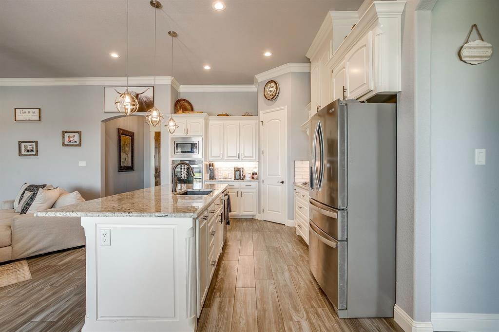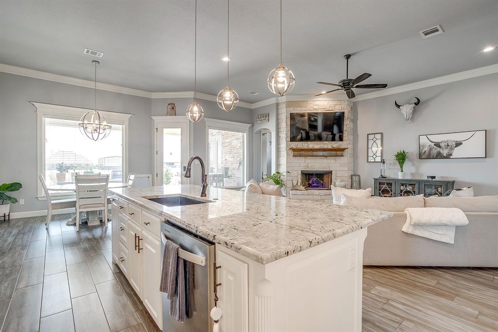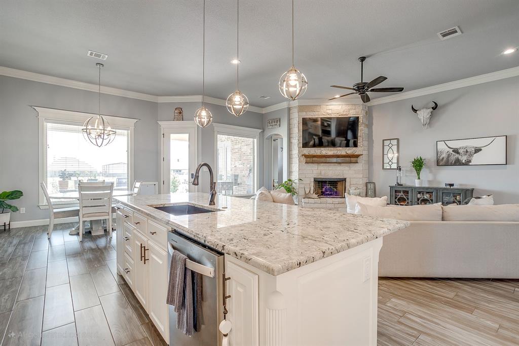 Upon entering, a grand foyer leads you into a bright and open floor plan, where elegant wood-look flooring and oversized windows create a warm, inviting atmosphere. The gourmet kitchen is a chef's dream, featuring stainless steel appliances, premium granite countertops, and a large central island perfect for gathering with family and friends.