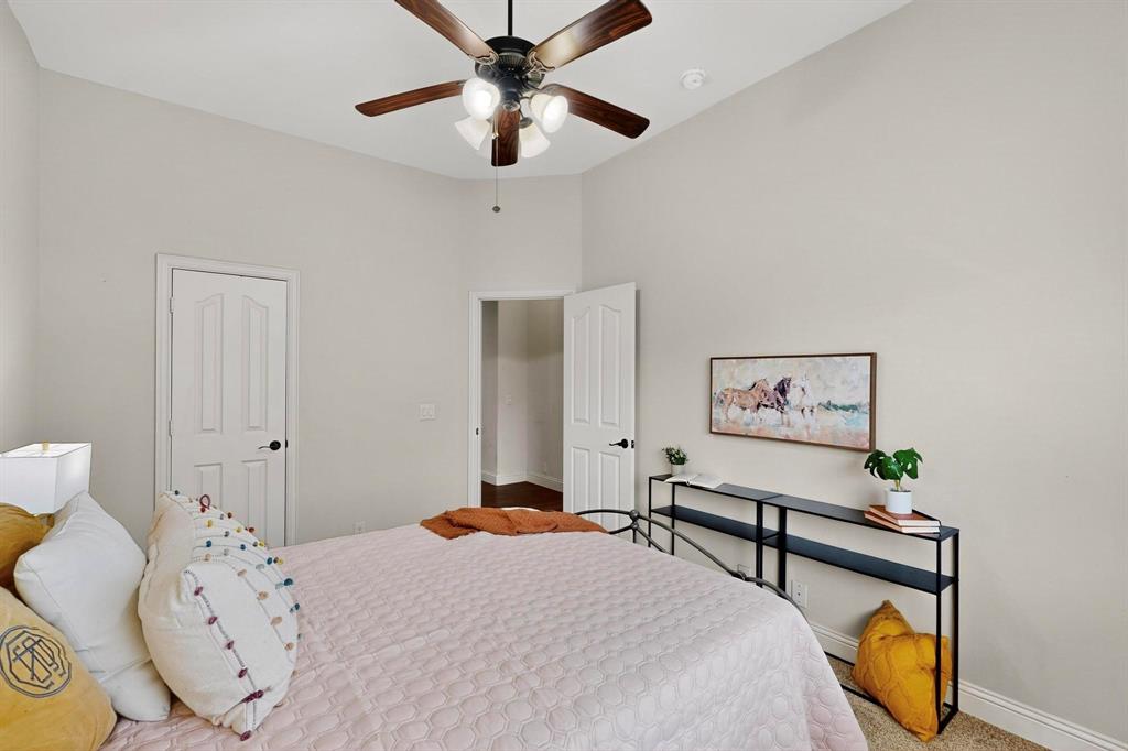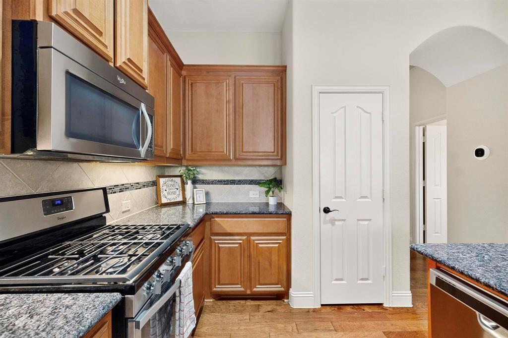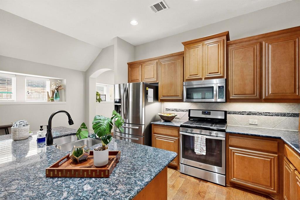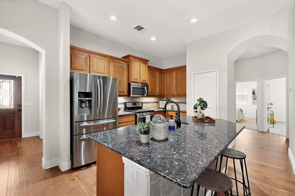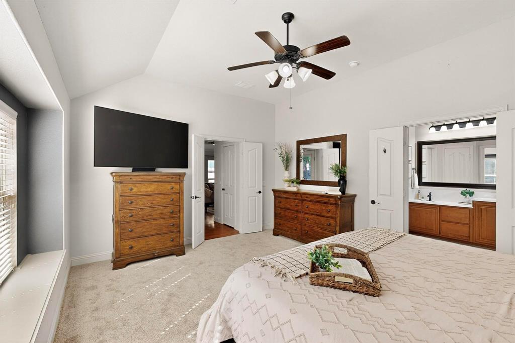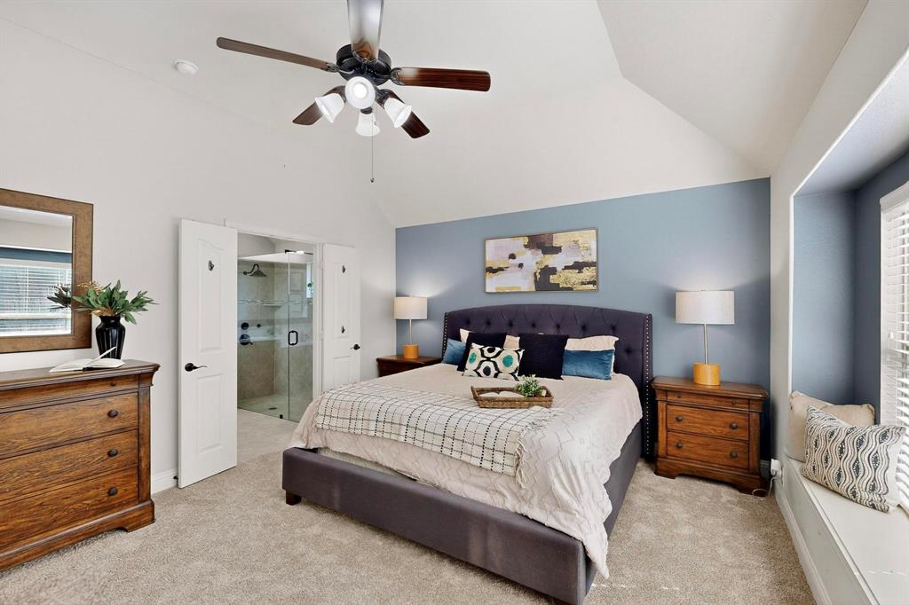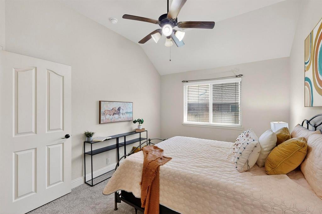 Welcome to 9204 Benbrook Lane, a gorgeous 3-bedroom, 2-bathroom home in the highly sought-after Country Lakes community of Argyle! This move-in ready East-facing home features an inviting open-concept design with brand new carpet, a spacious kitchen, dining, and living area perfect for entertaining. The kitchen is highlighted by stainless steel appliances and a gas cooktop, while large windows fill the living spaces with natural light. The primary suite offers a relaxing retreat with a cozy bay window sitting area, oversized shower, and generous walk-in closet. Secondary bedrooms are roomy and versatile, and the third-car garage provides extra space for storage, hobbies, or a workshop. Step outside to enjoy evenings on the extended front porch, or host weekend barbecues under the covered back patio overlooking a large backyard paradise with no rear neighbors—just wide-open fields for privacy. Recent updates include a brand-new roof replaced in 2024, upgraded outdoor wiring for holiday lights, and fully paid-off solar panels at closing—combining peace of mind with long-term energy savings. With its perfect blend of style, comfort, and modern upgrades, this Argyle treasure is priced to sell—and it won’t last long!
